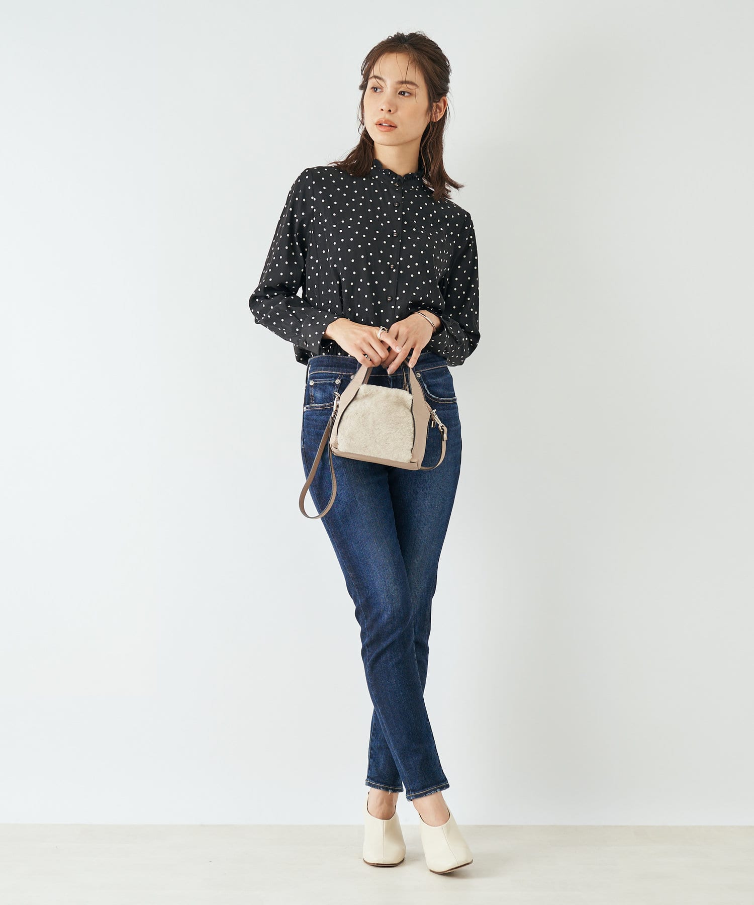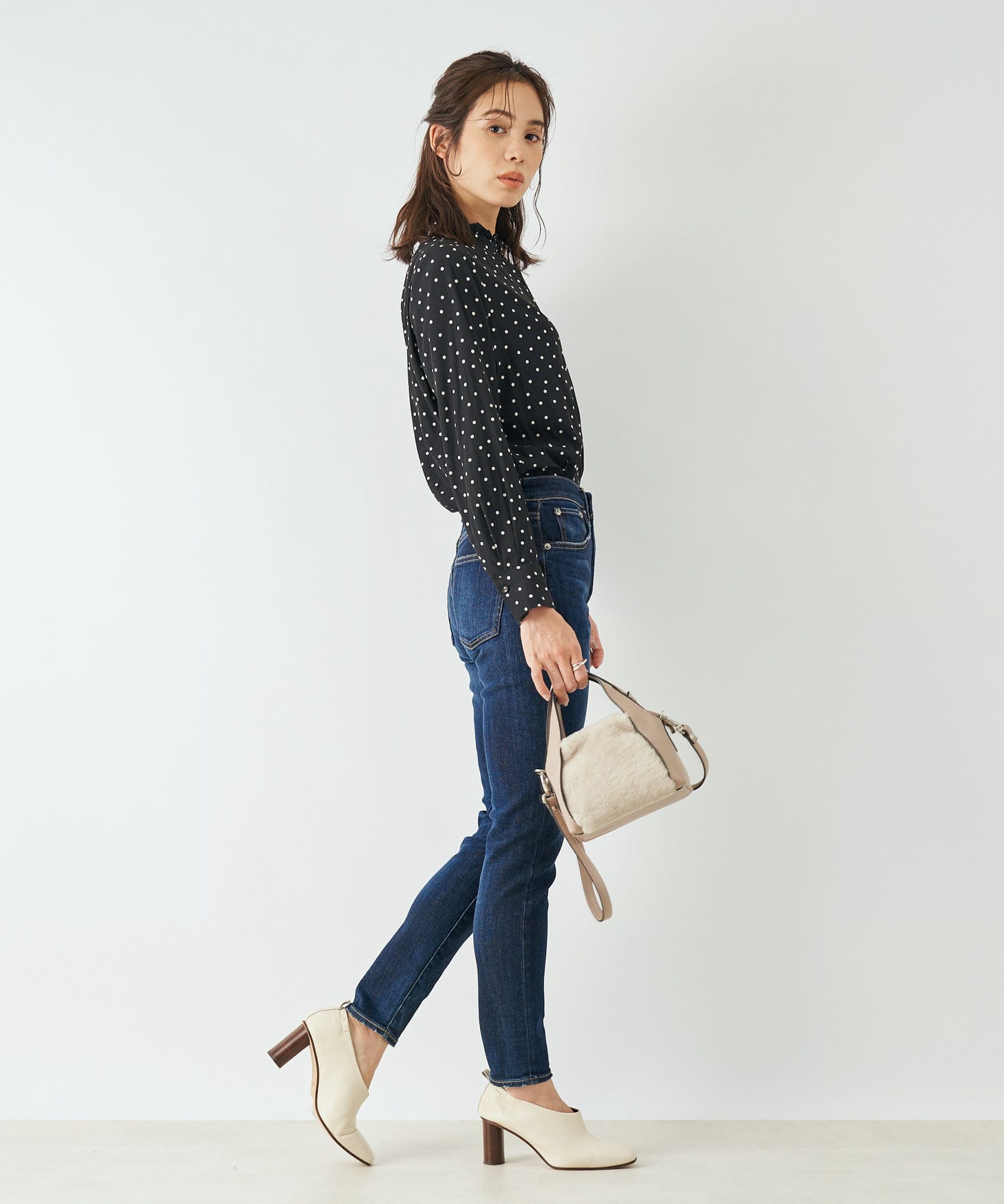 ハイライズでスタイルアップ効果が期待できるスキニーデニム。