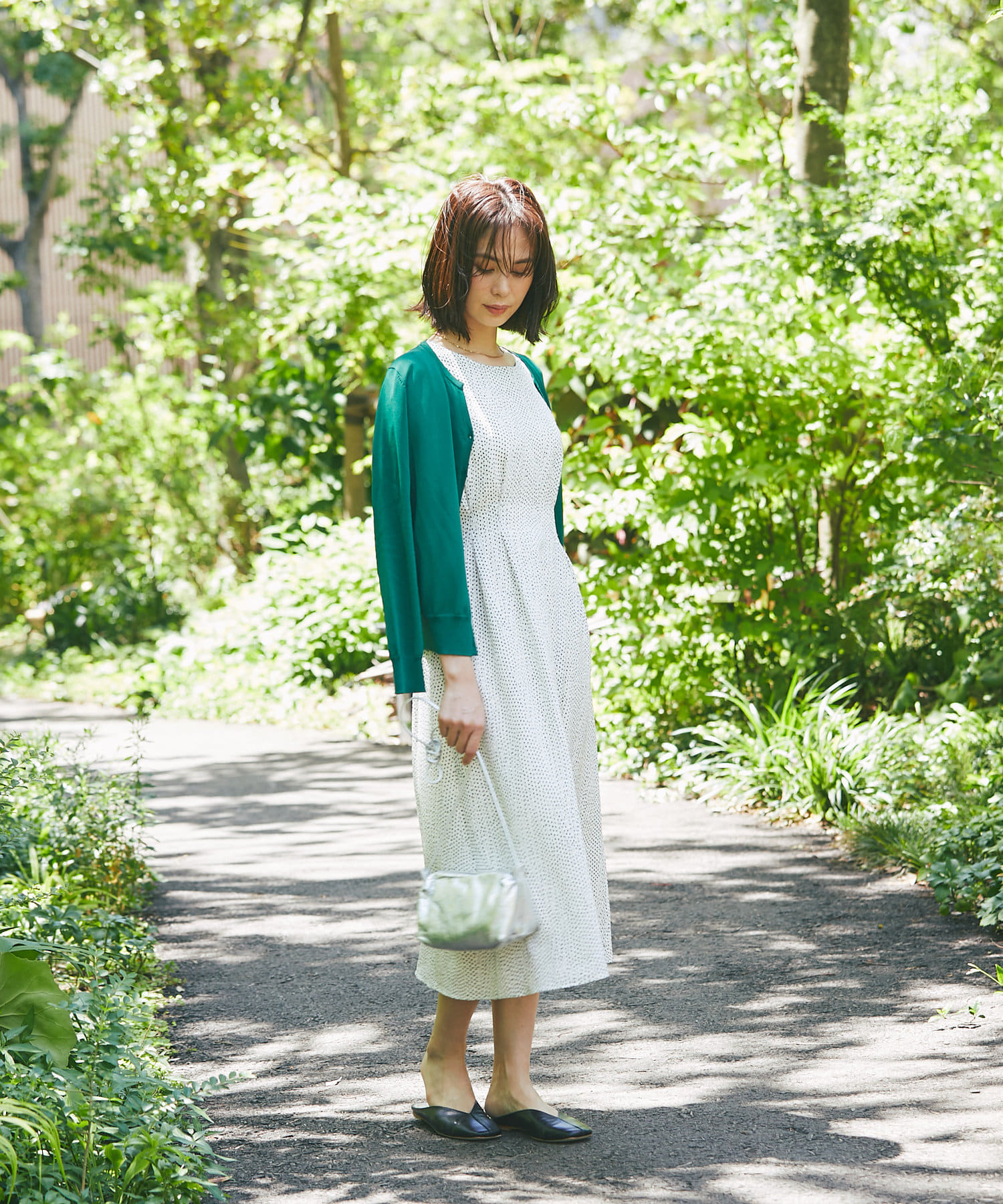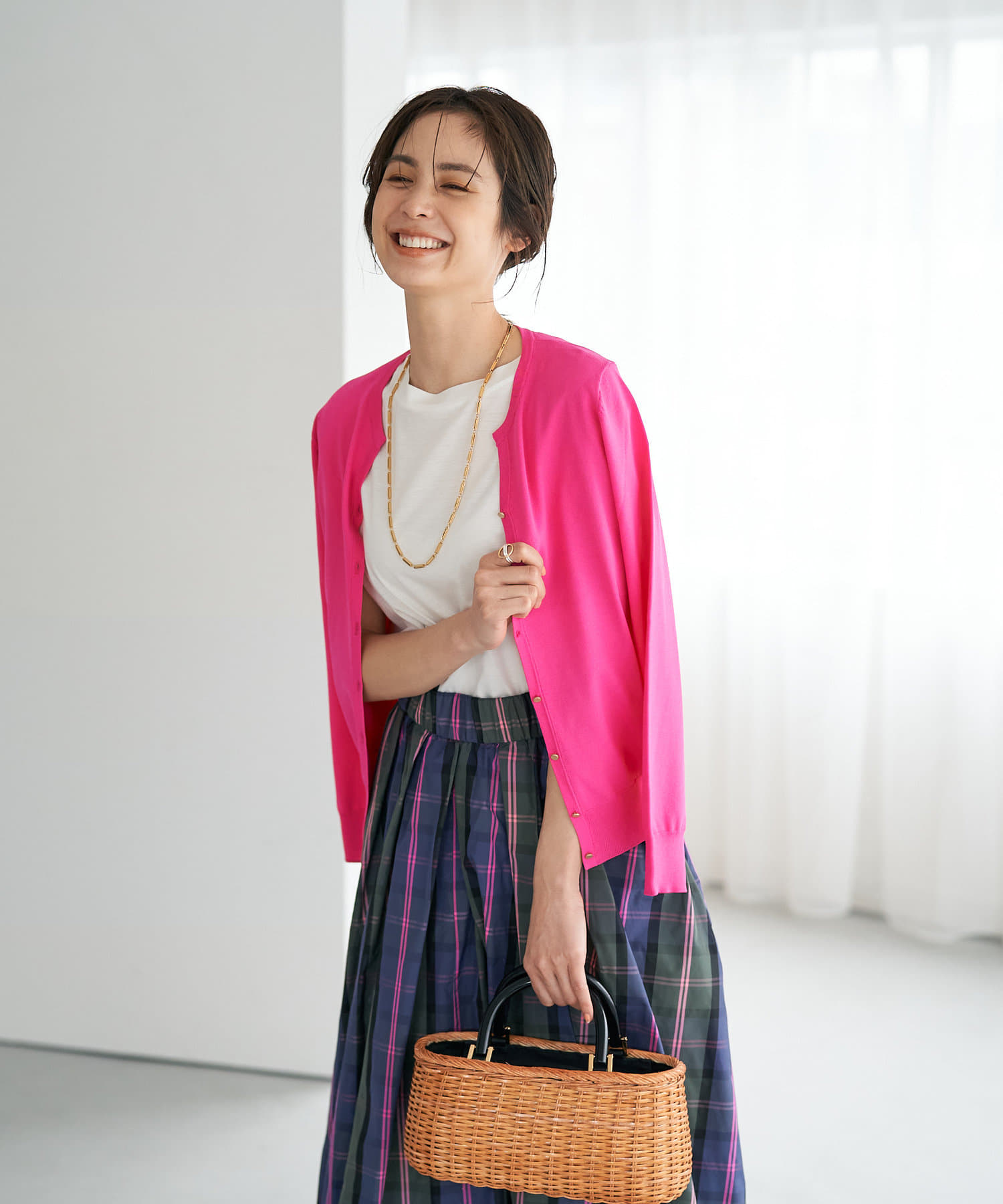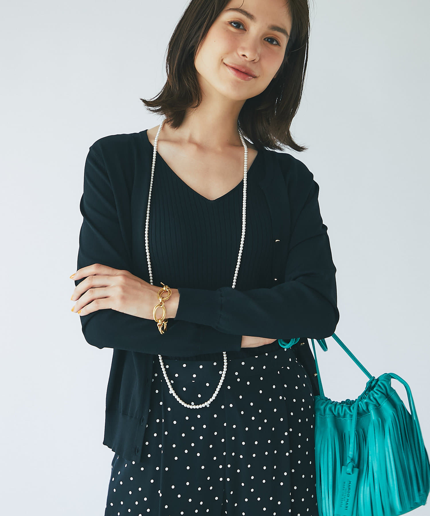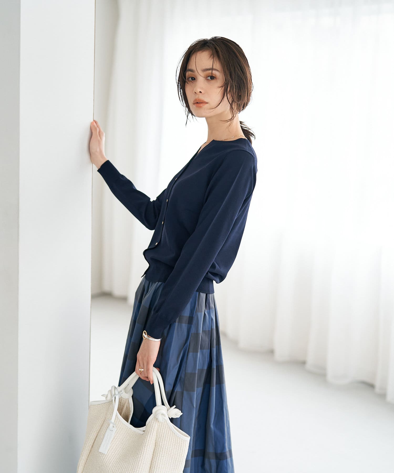さらりとしたタッチなのでブラウスやカットソー・ワンピースやノースリーブなどの羽織にも最適。