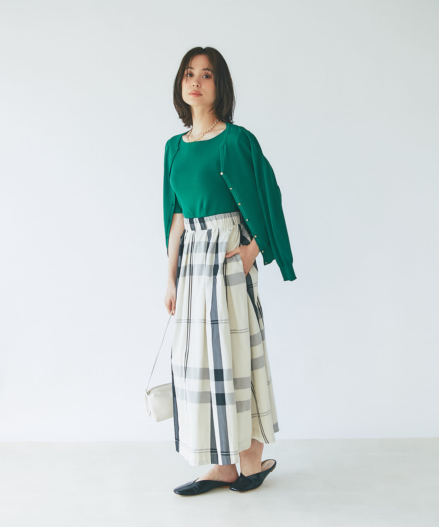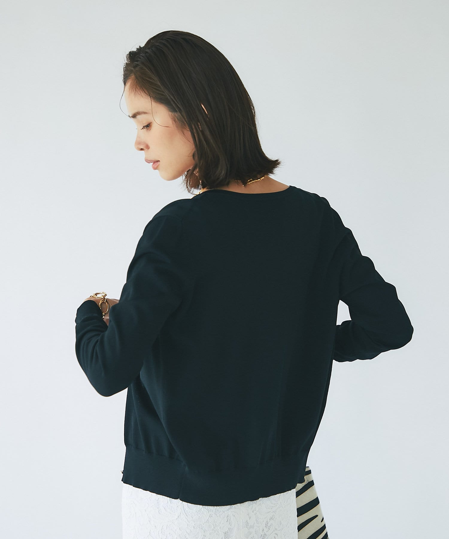 また、程よい肉感で身体のラインを拾わないため、一枚で着て頂いてもきれいです。