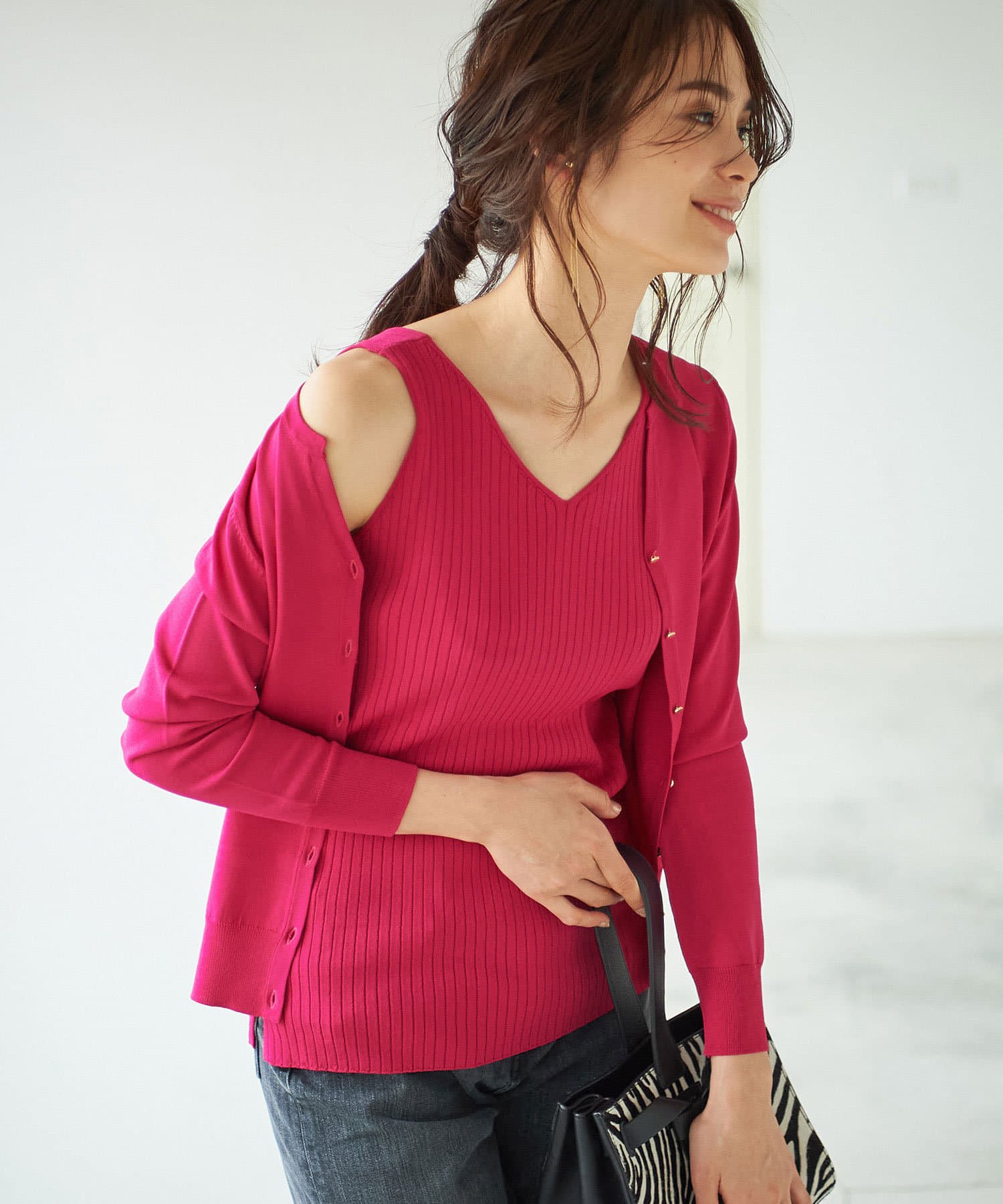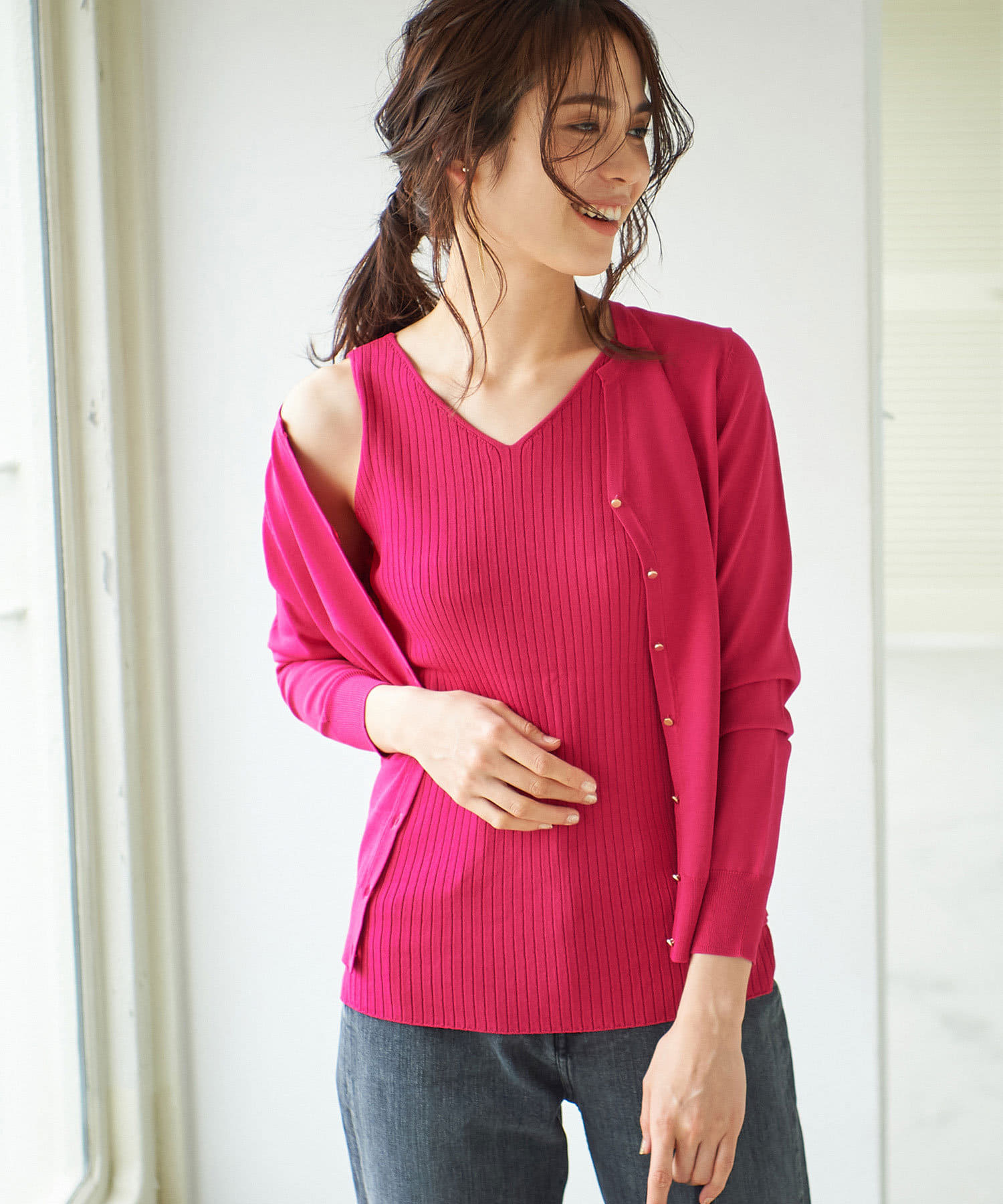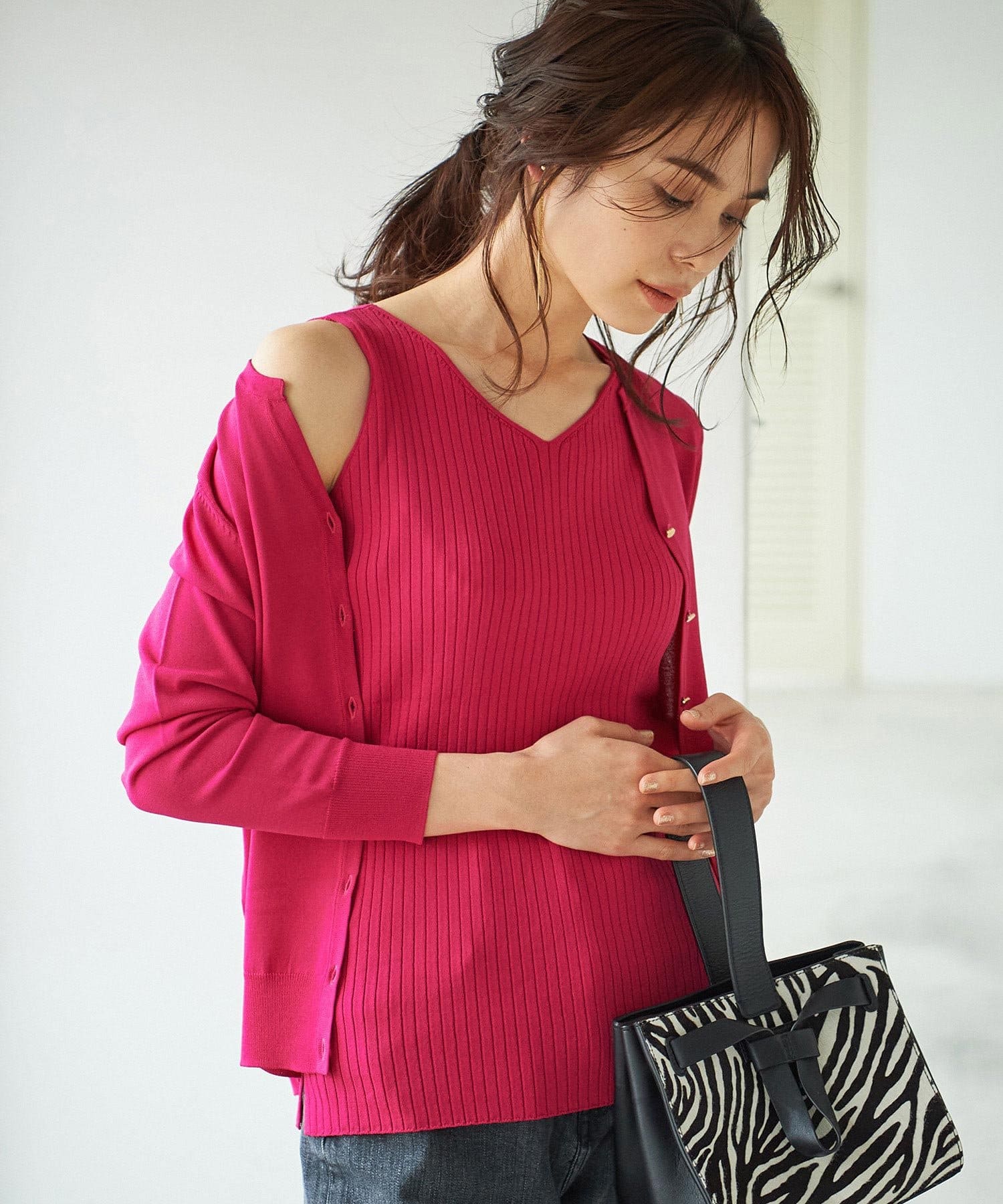 一枚で着て頂くのはもちろん、同素材のカーディガンと合わせてアンサンブルニットとしても使えるので、コーディネートの幅が広がるアイテム。