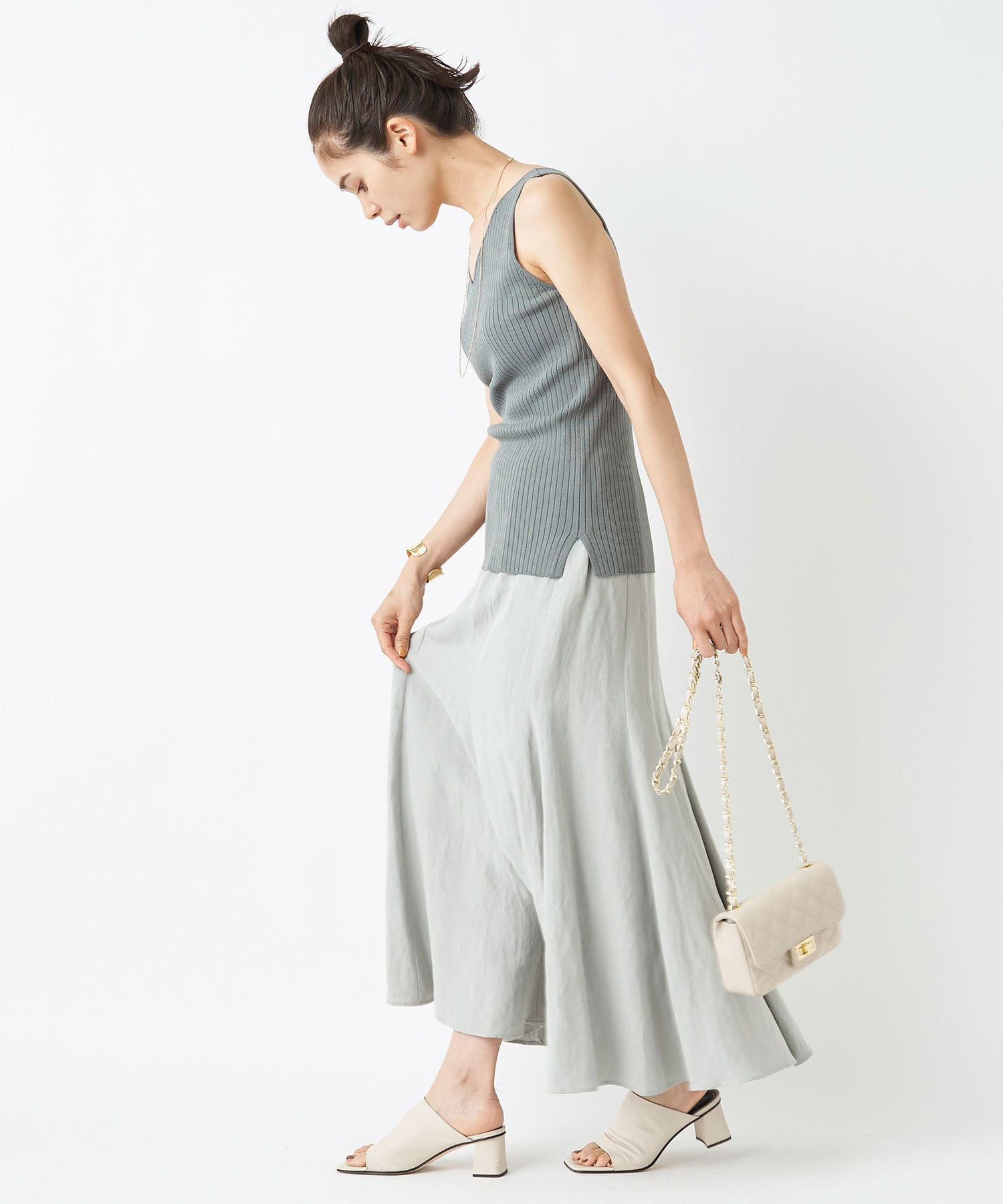 《予約》【手洗い可・接触冷感・UVカット】ワイドリブタンクニット