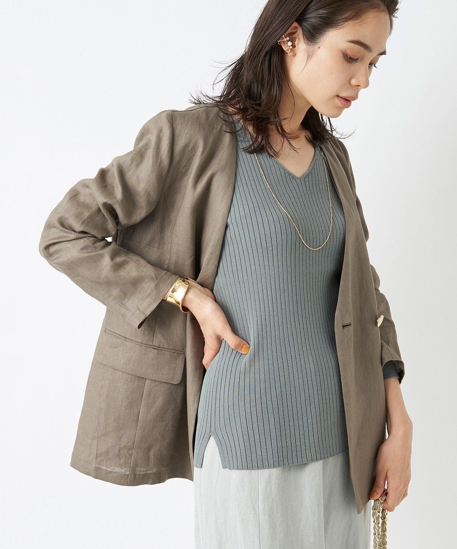 今期はきれいめカラーのアンサンブルニットに注目が集まっているので、トレンド感も抜群です。