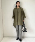 トレンドのビッグカラーのブラウスと合わせてクラシカルな雰囲気をカジュアルに着こなすのもおすすめ。