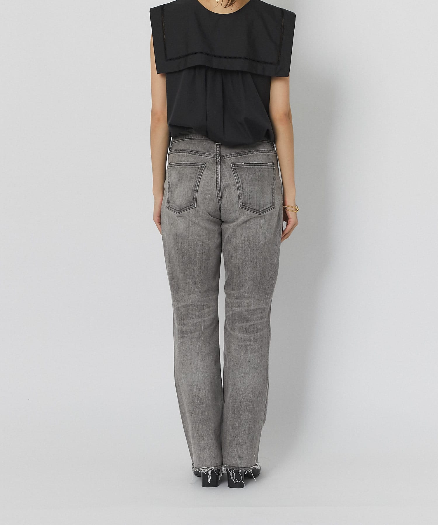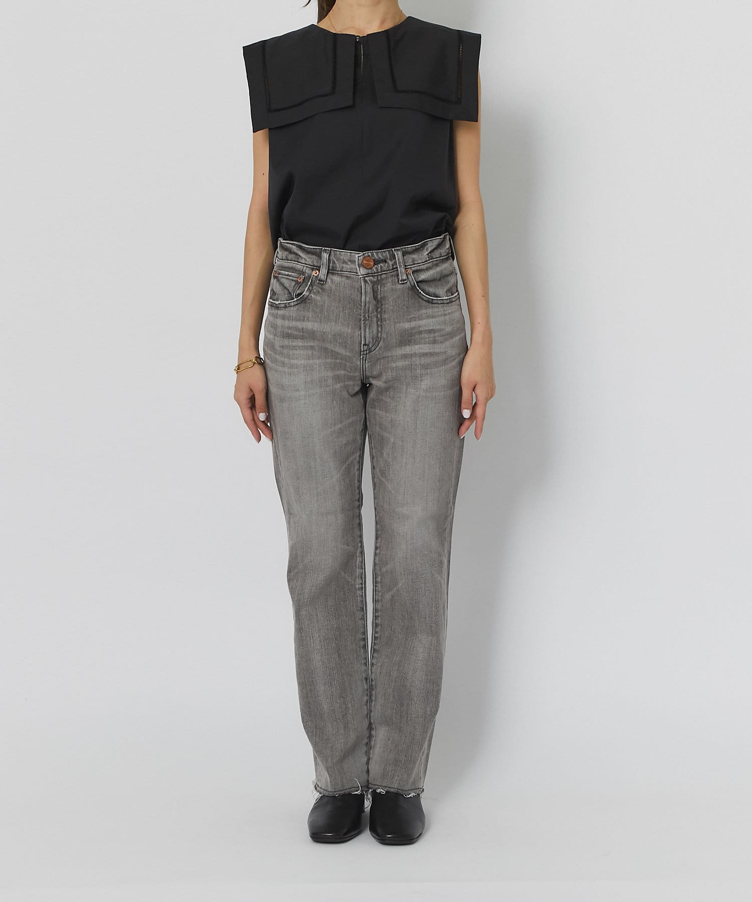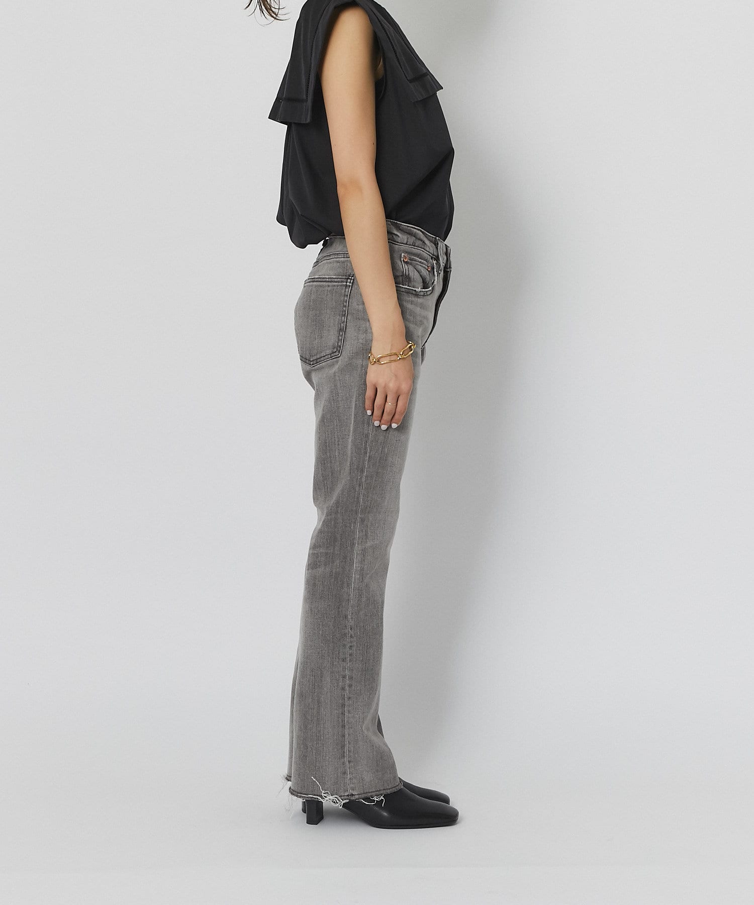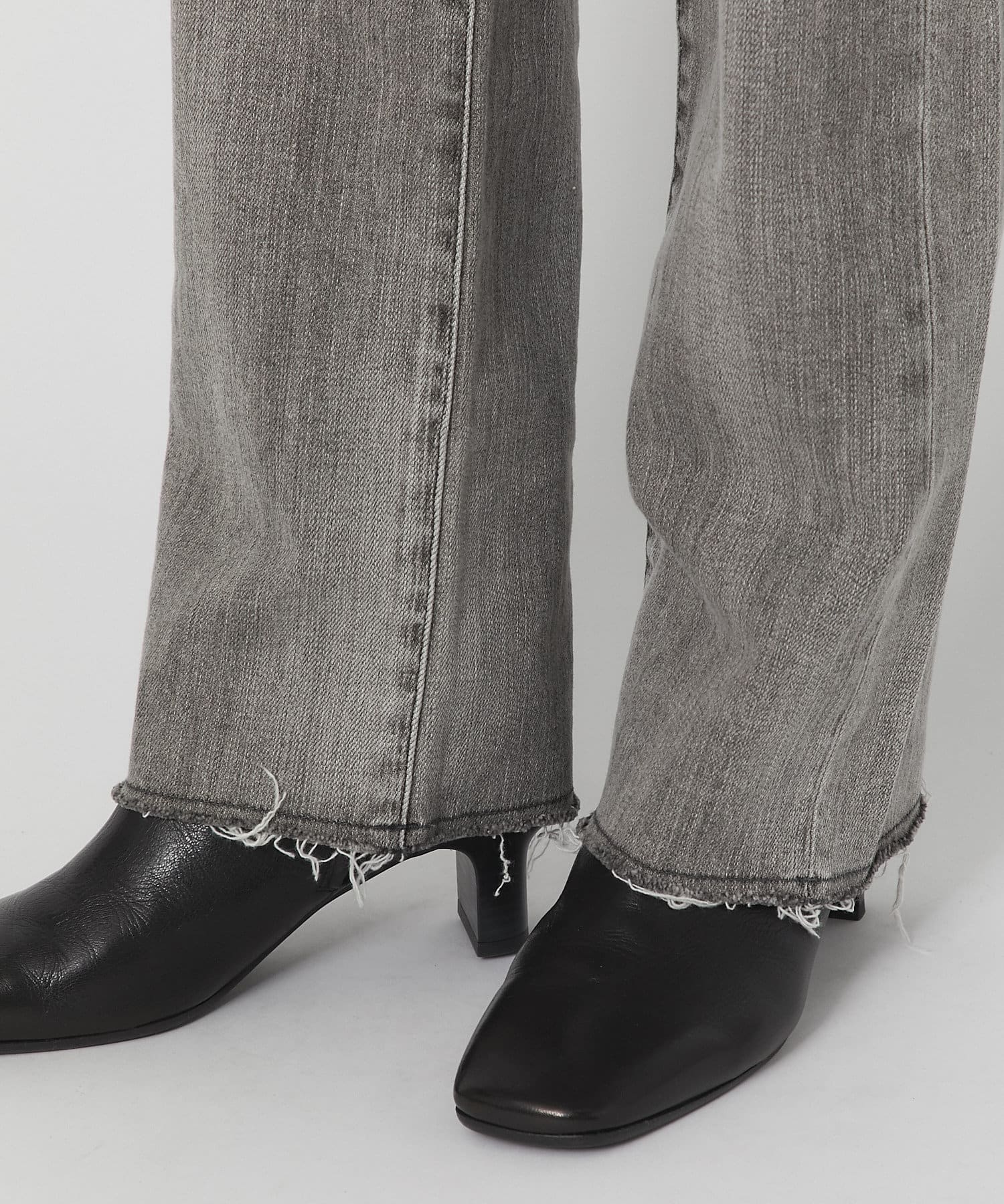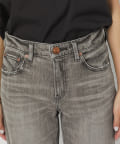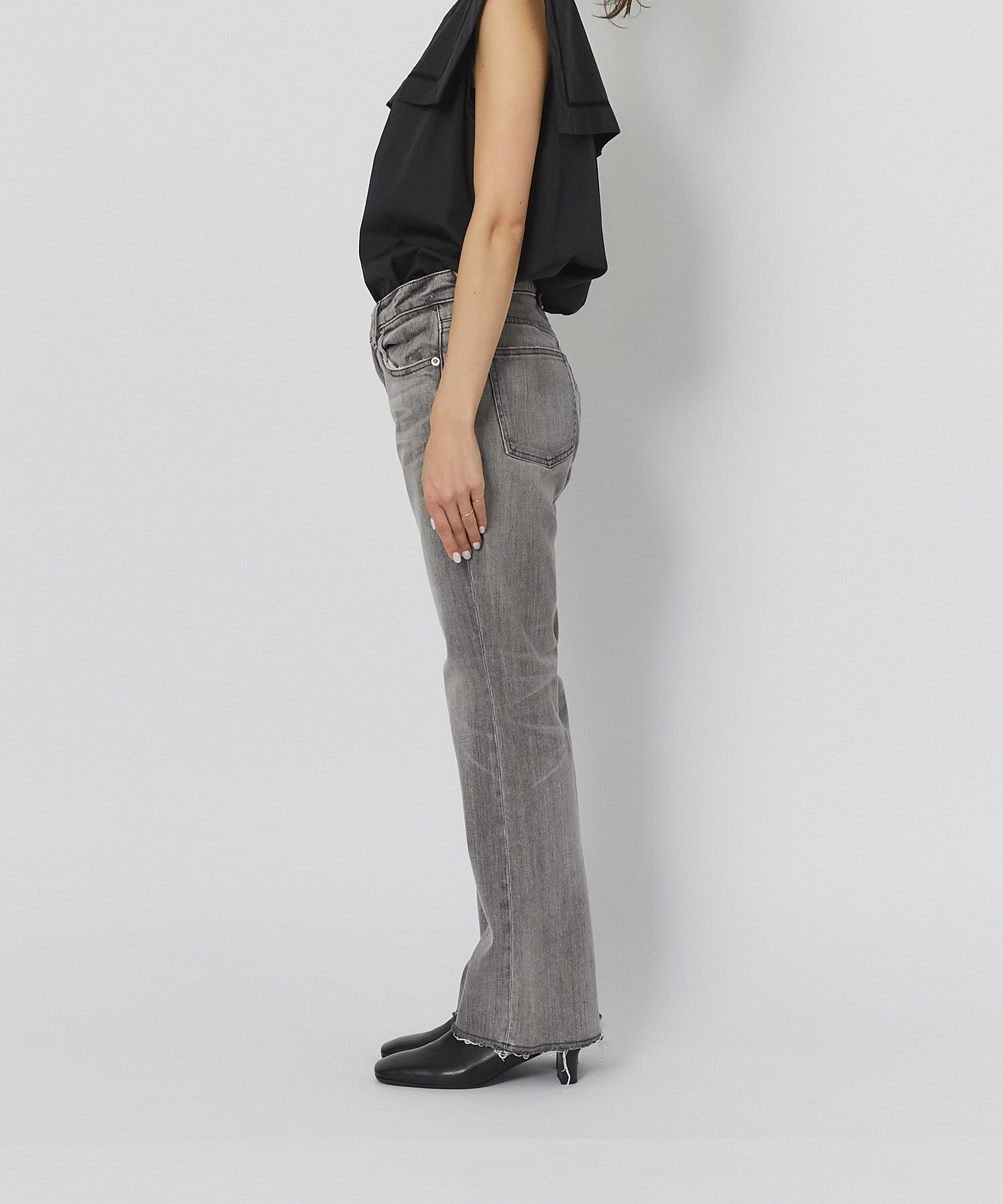 控えめなフレアなので、初めてのフレアシルエットとしても、フレアシルエットが苦手だった方にも取り入れやすく、ストレートデニムに近い感覚で穿いていただけます。