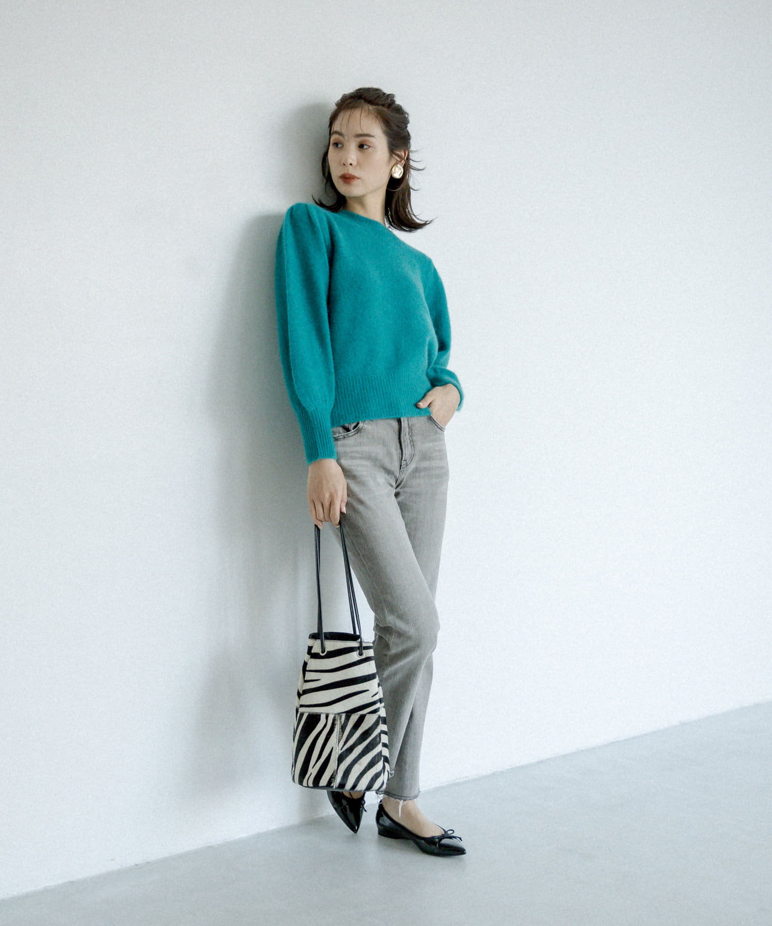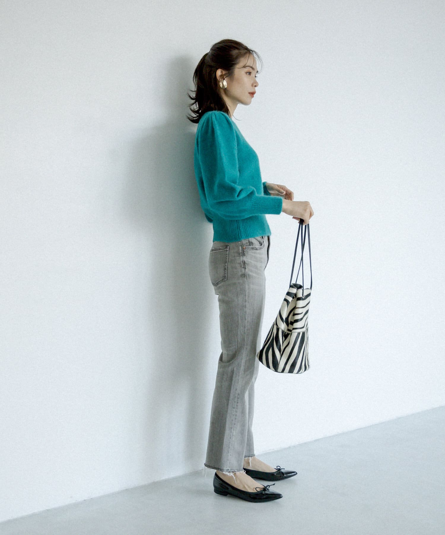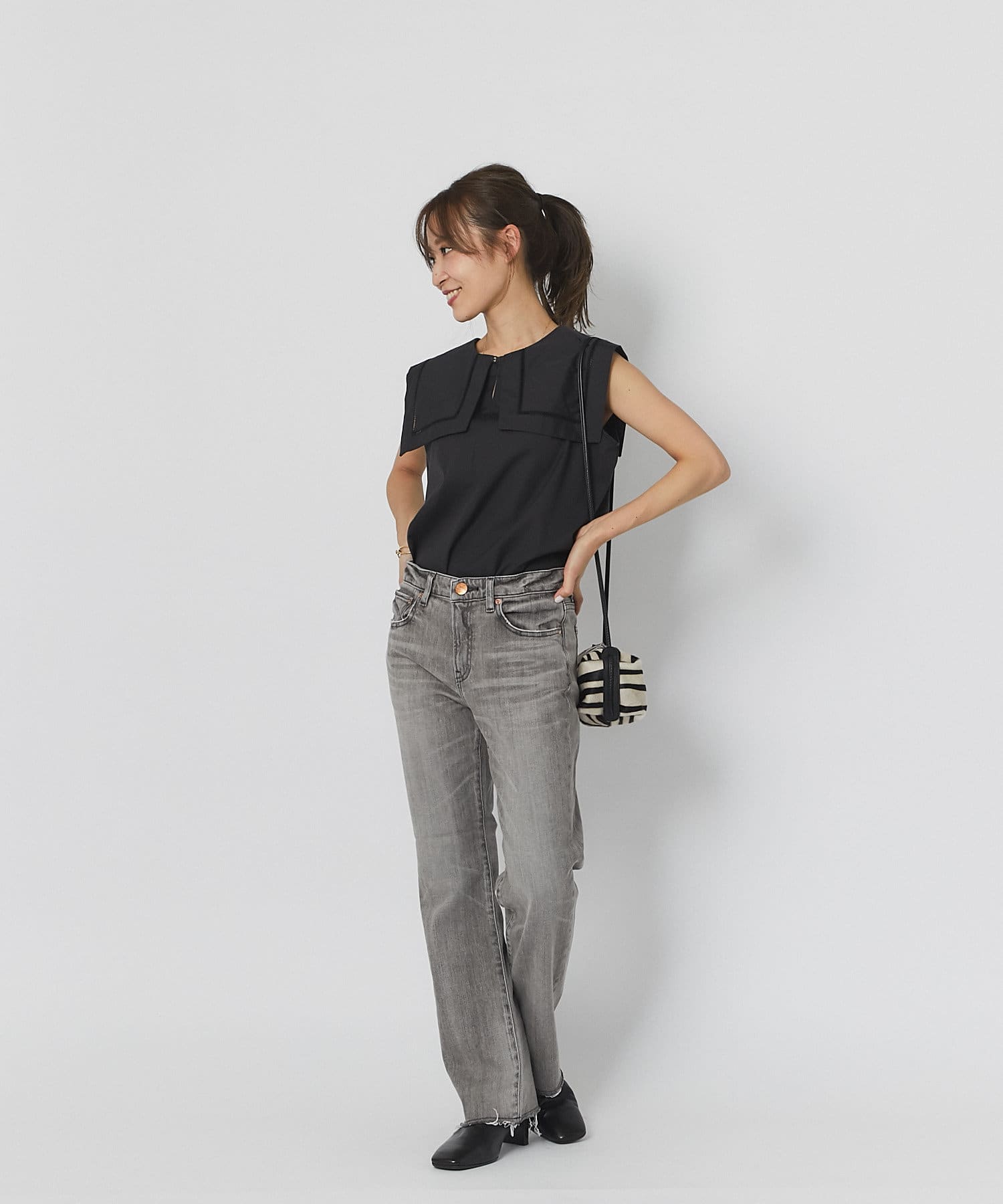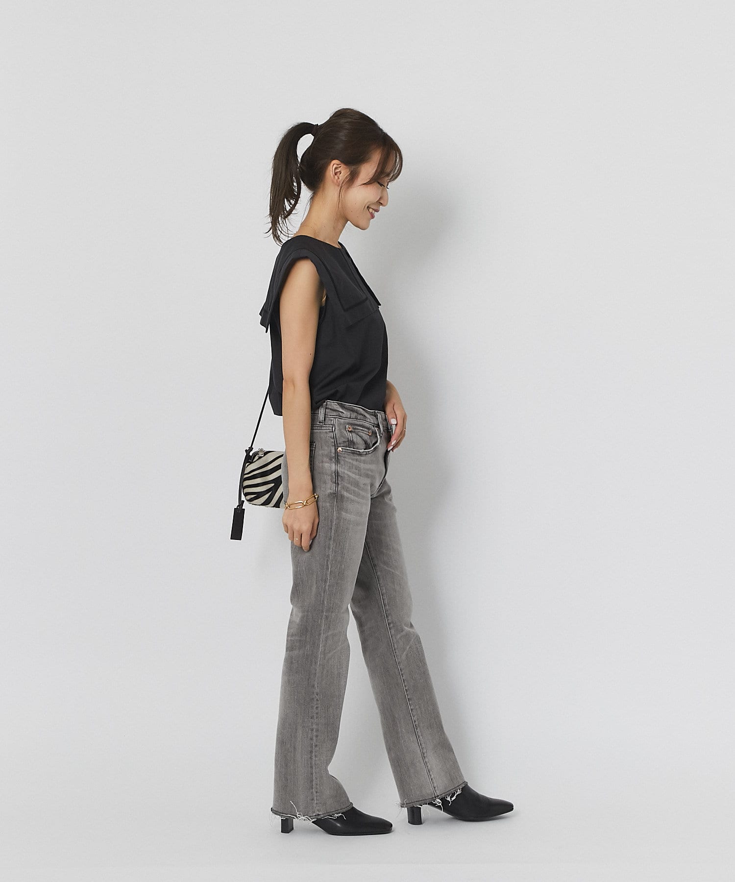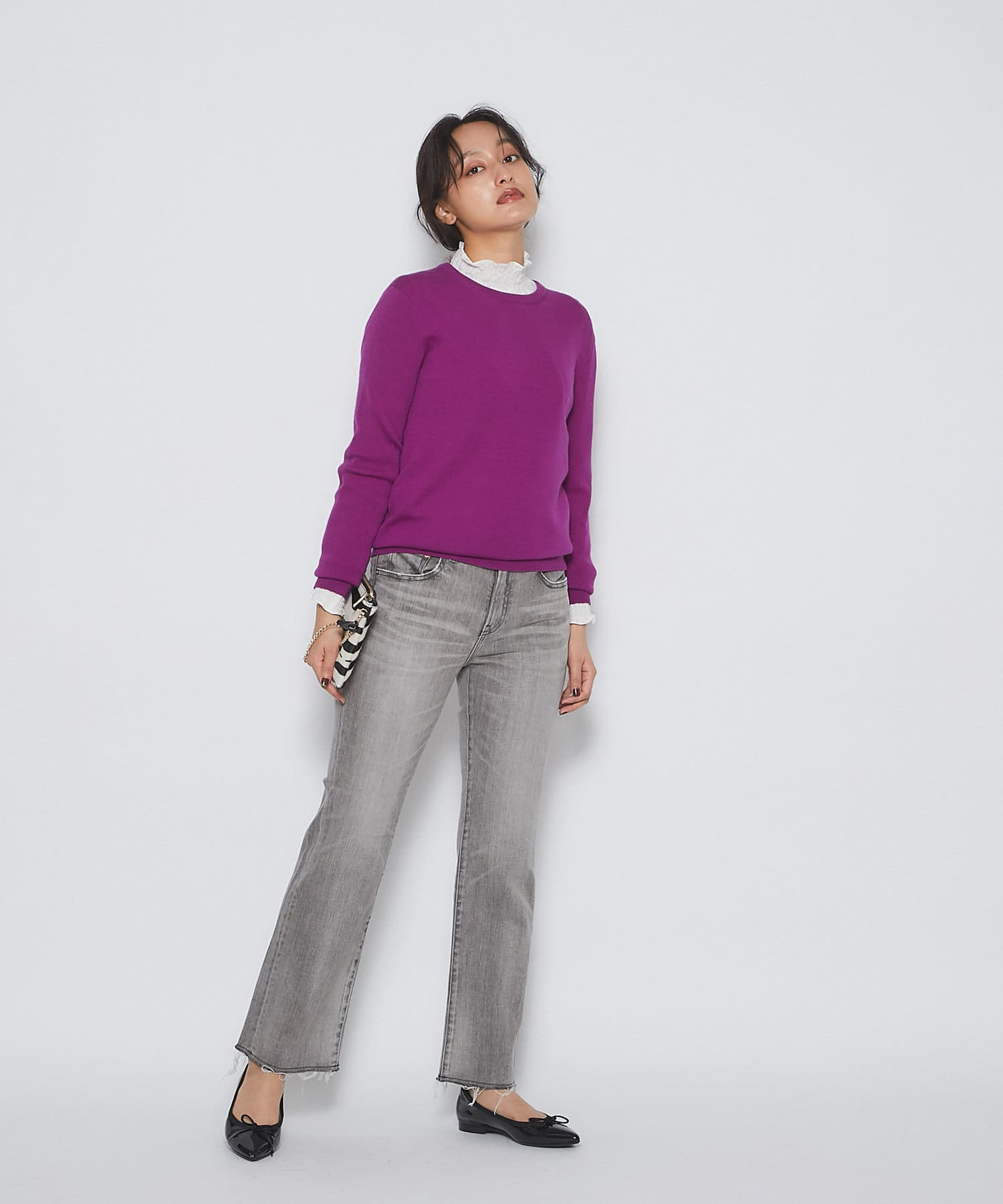 控えめなフレアなので、初めてのフレアシルエットとしても、フレアシルエットが苦手だった方にも取り入れやすく、ストレートデニムに近い感覚で穿いていただけます。
