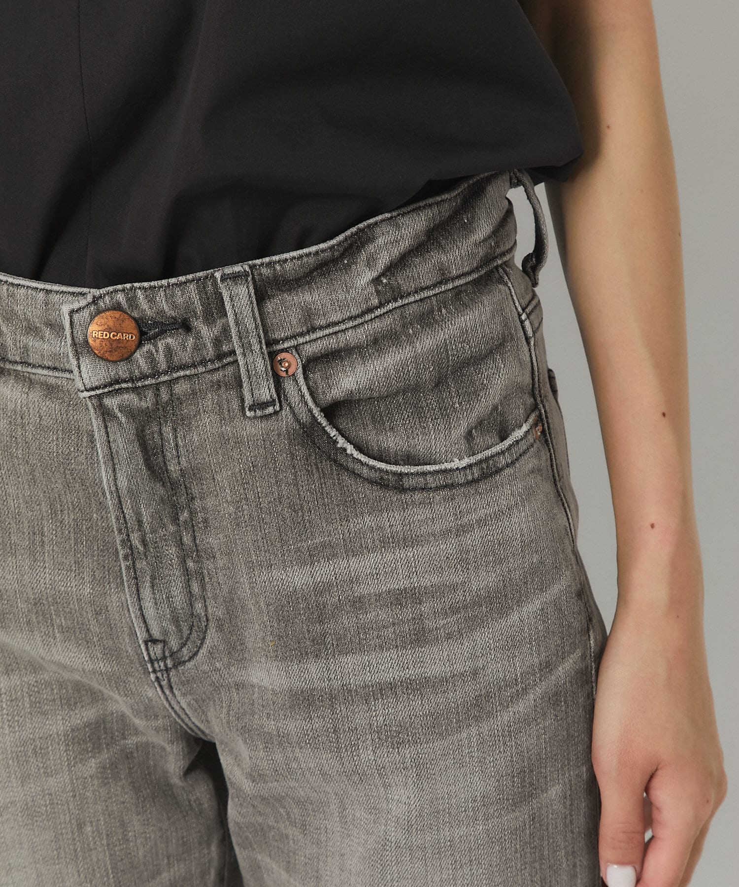 控えめフレアが美脚を作るレッドカードのデニムパンツ
