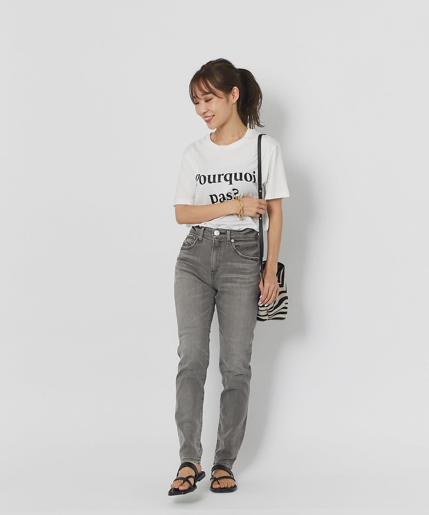 ハイライズなので大人っぽくきれいに穿けるのが嬉しいデニムパンツです。