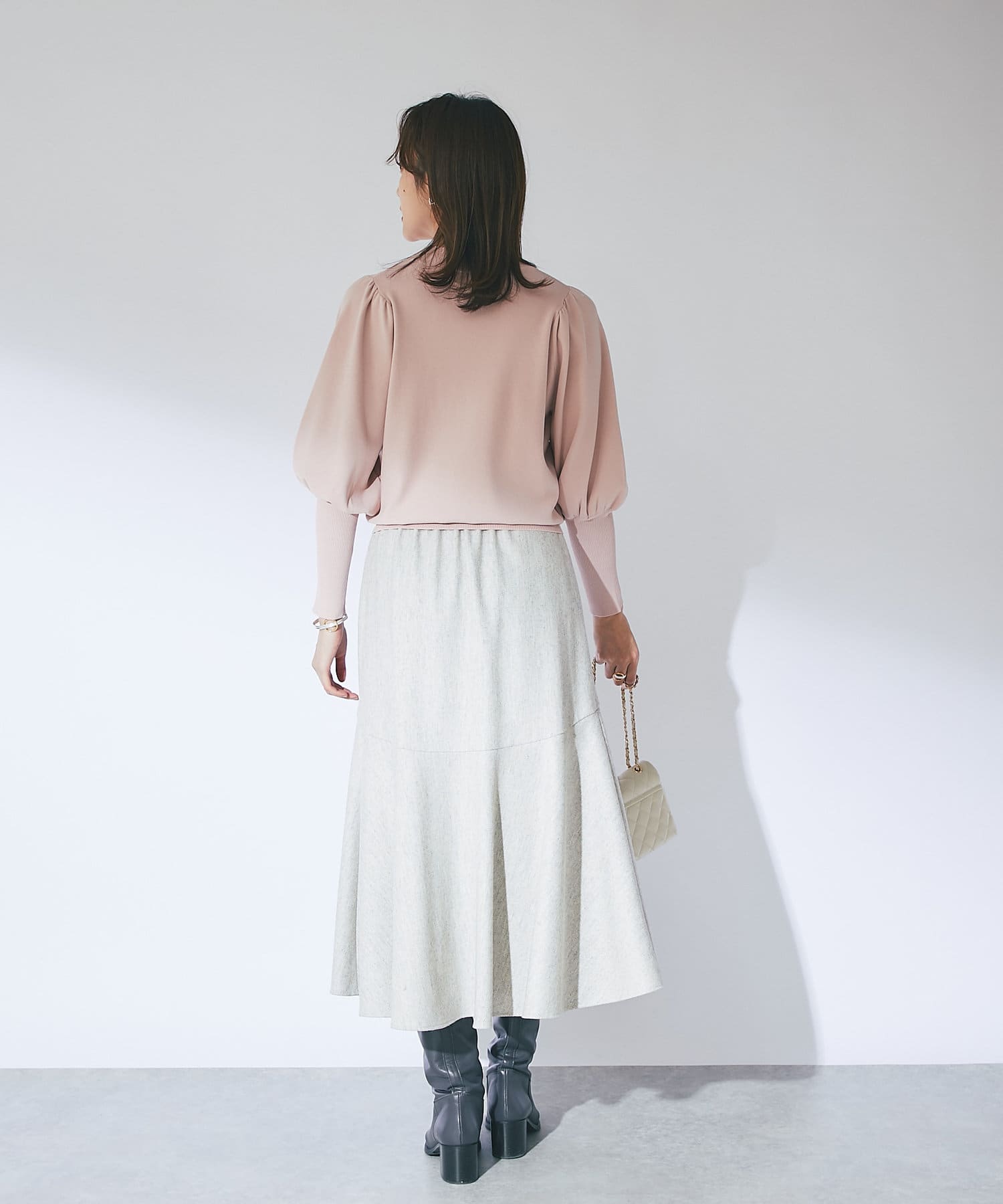 大人可愛いを引き立てるボリュームスリーブニット