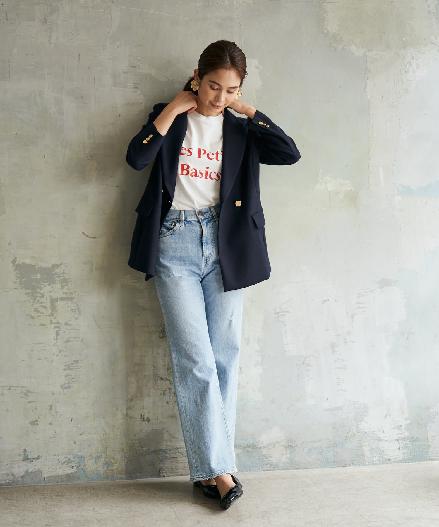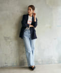 デニムやTシャツなどのカジュアルなアイテムと合わせると抜け感が出て大人のカジュアルスタイルに。