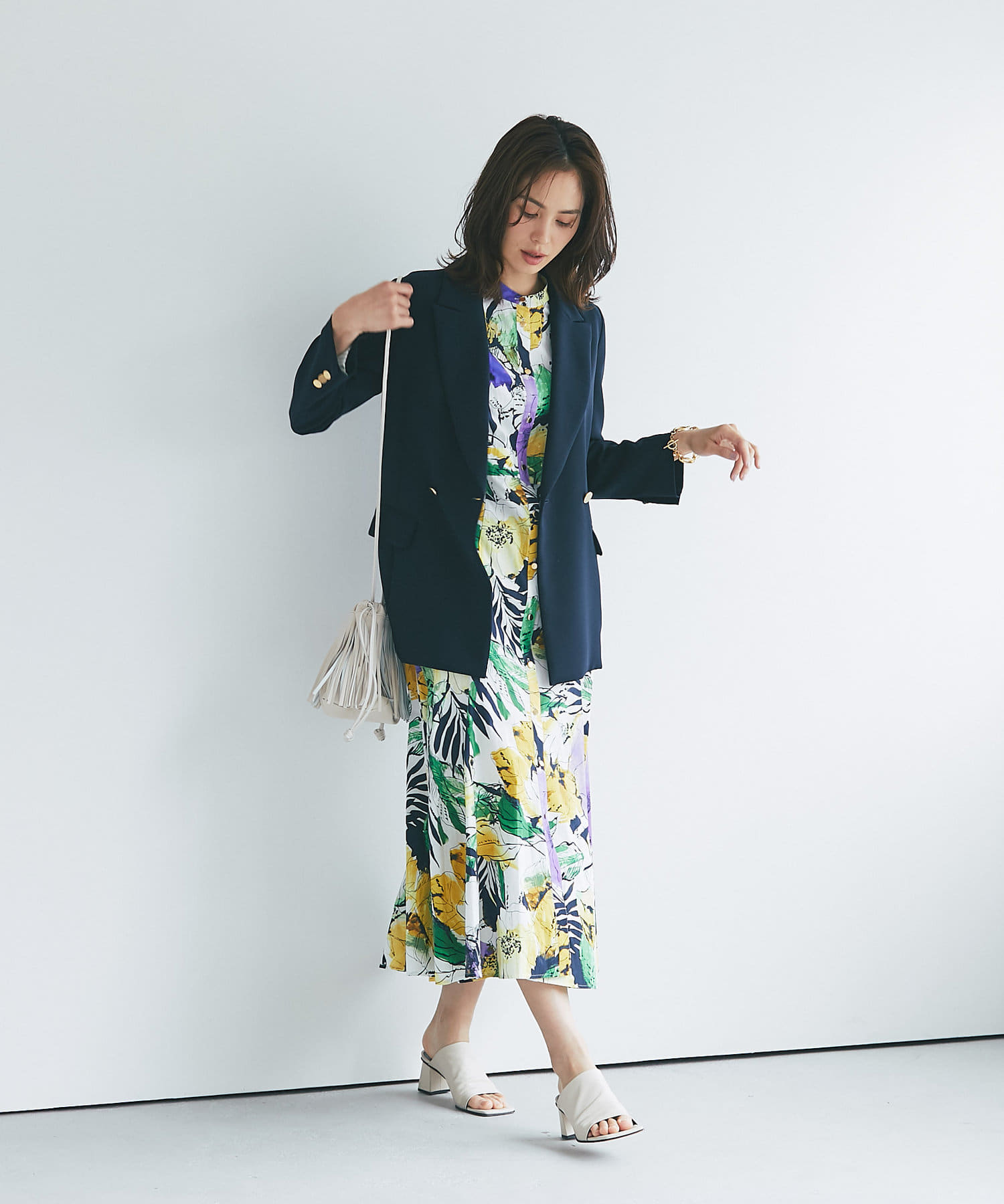 すっきりとしたシルエットで女性らしく着られるのもポイントで、シンプルながらその存在感と品の良さを引き立てています。