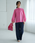 トレンドのデザインブラウスなども相性が良いのでおすすめのコーディネートです。