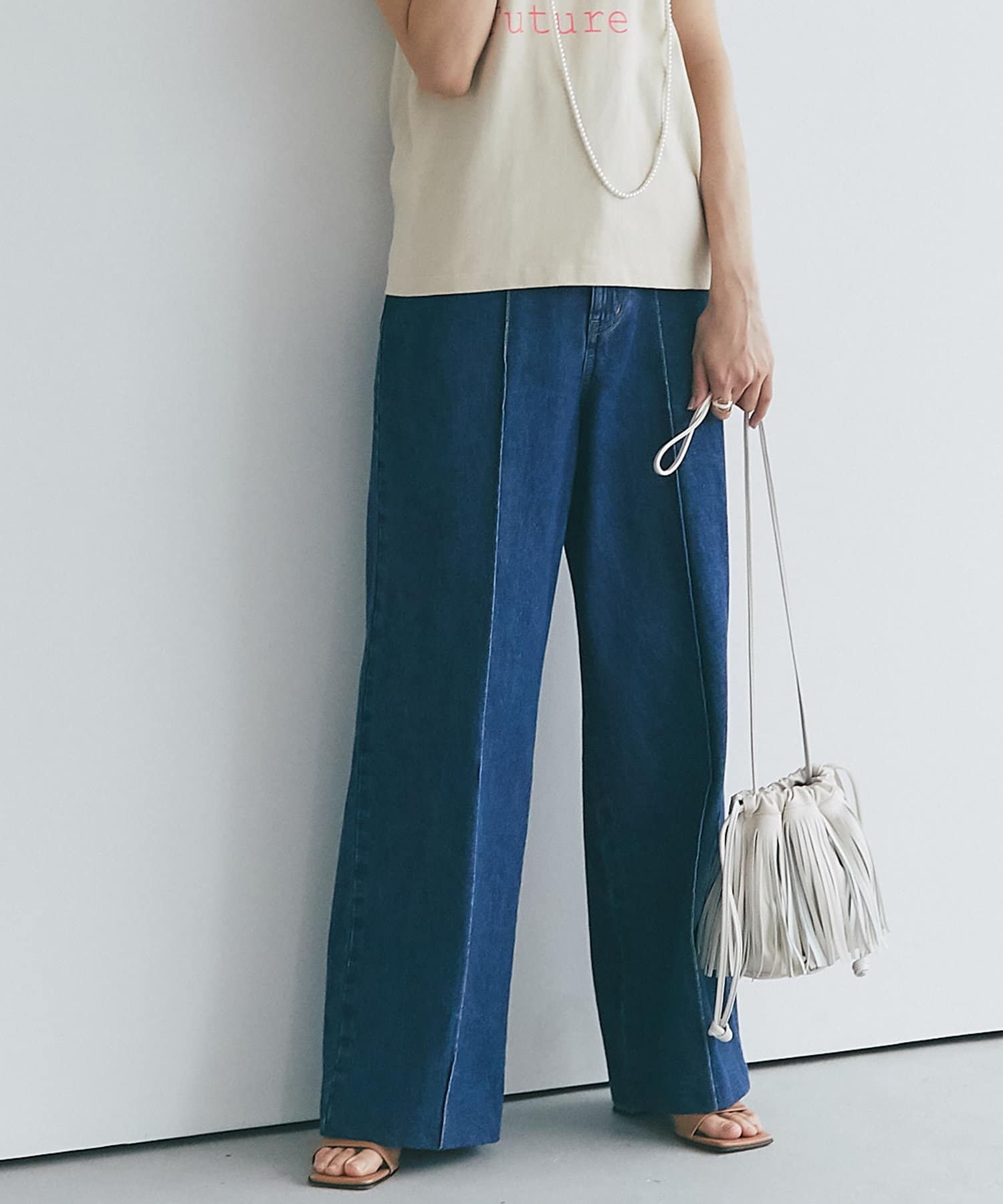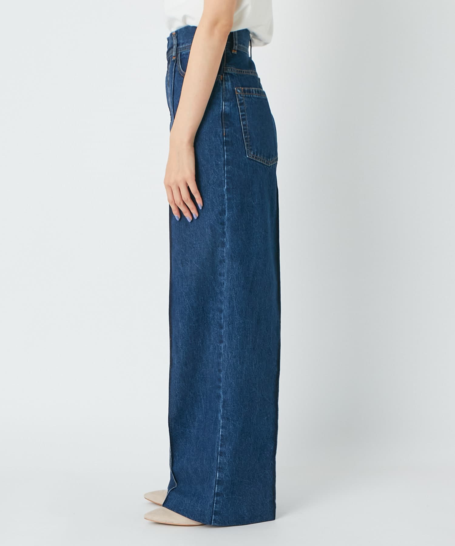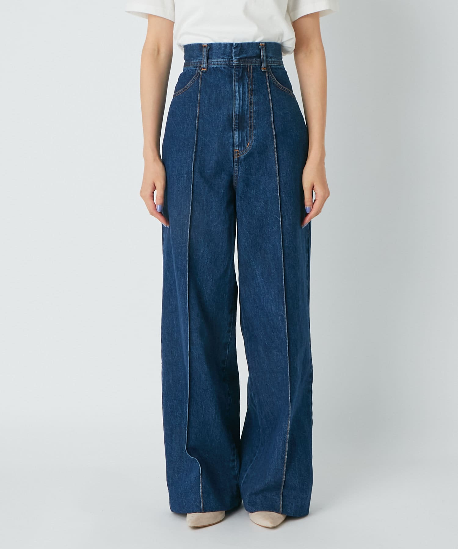 ワイドなシルエットとハイウエストで女性らしい着こなしが叶うデニムパンツです。