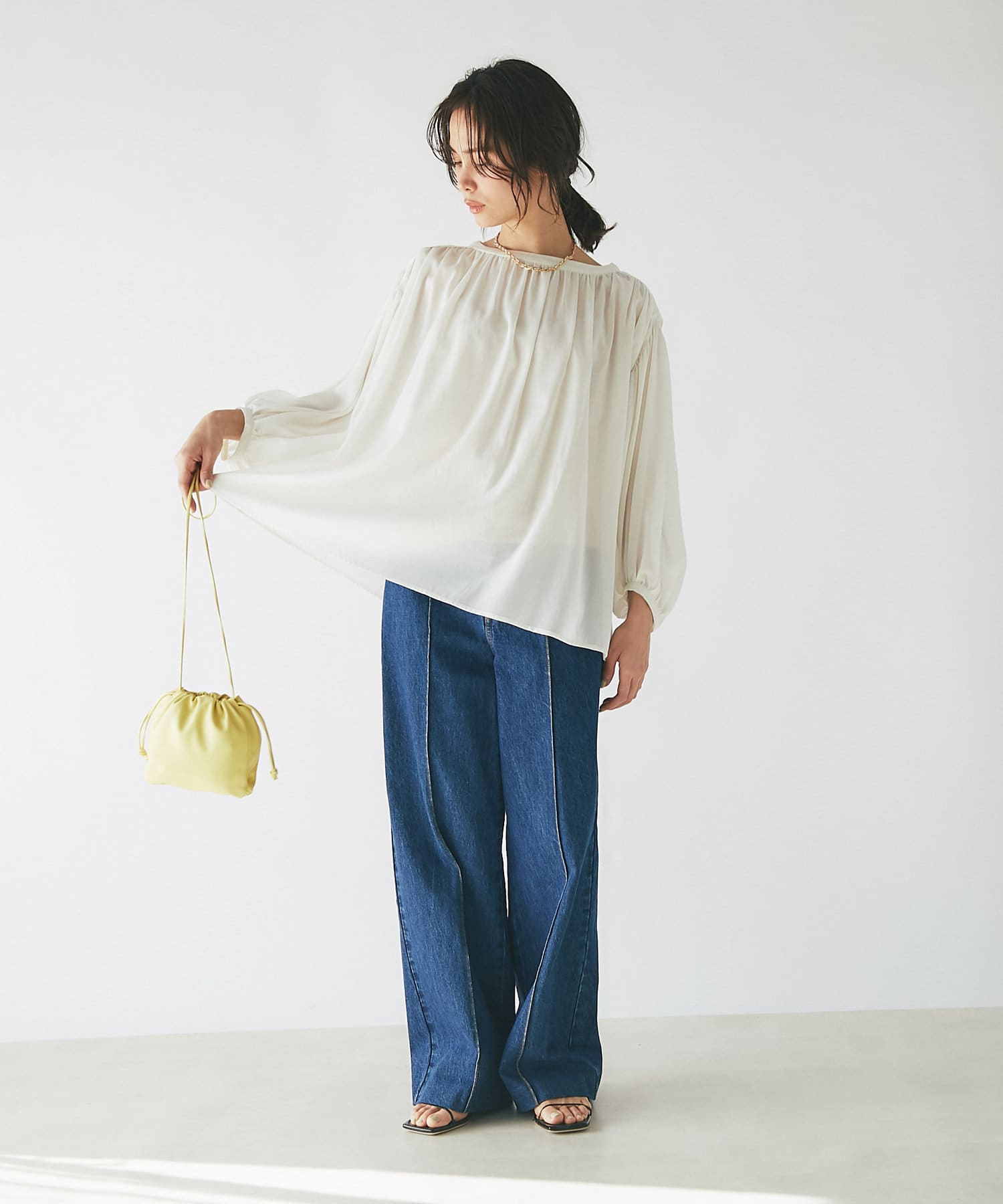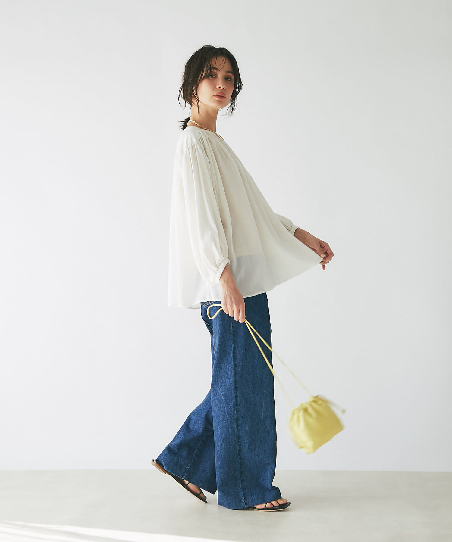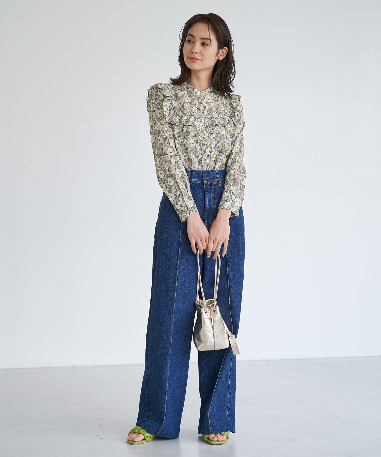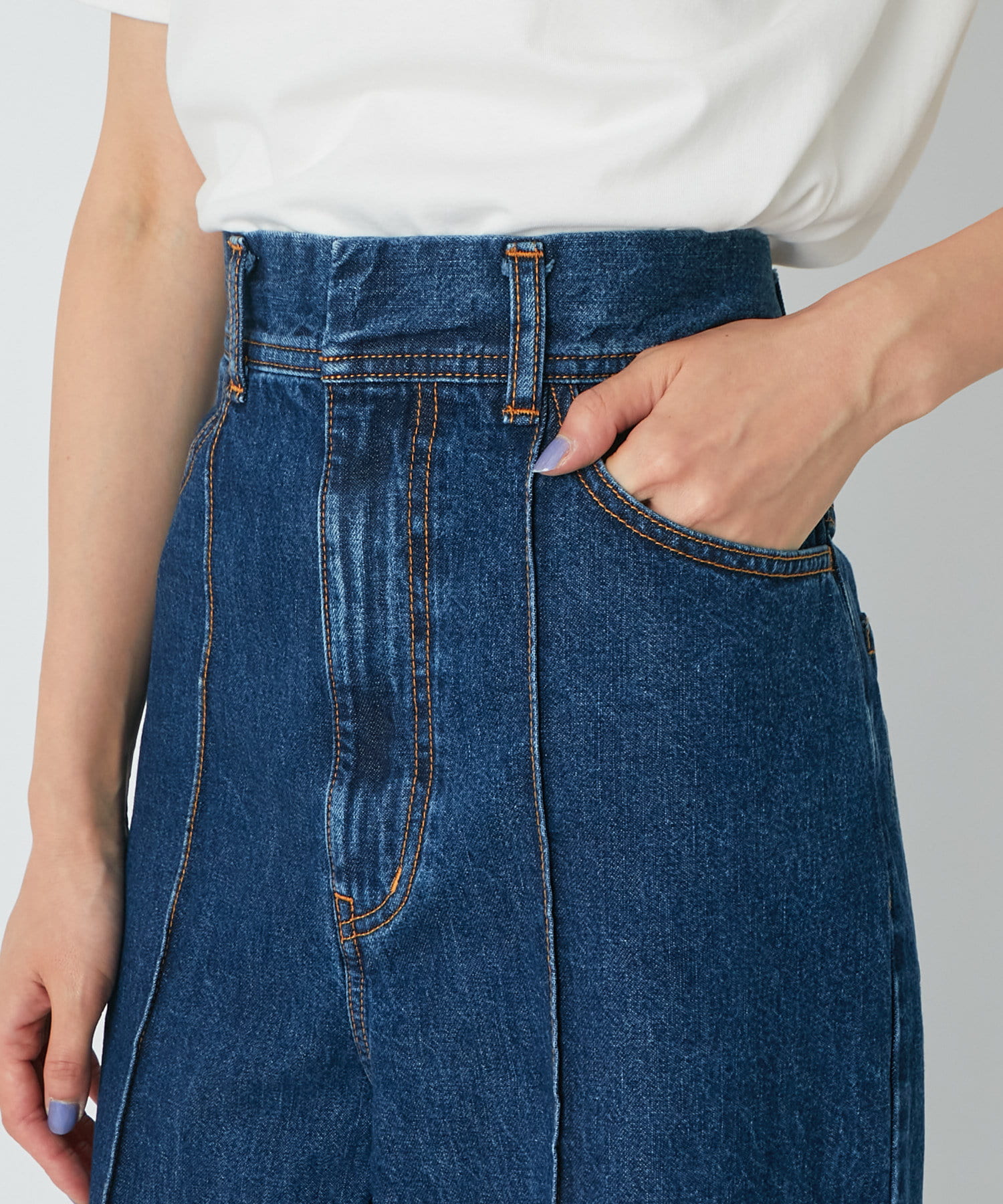 ワイドなシルエットとハイウエストで女性らしい着こなしが叶うデニムパンツです。
