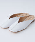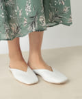 ぺたんこのリラクシーな履き心地のシューズですが、Vカットのアッパーが女性らしさを引き立たせるアイテムです。