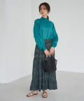 同素材のブラウスとのセットアップで着て頂くのはもちろん、レディライクなブラウスやシャツなどと合わせても甘くなり過ぎないのでおすすめです。