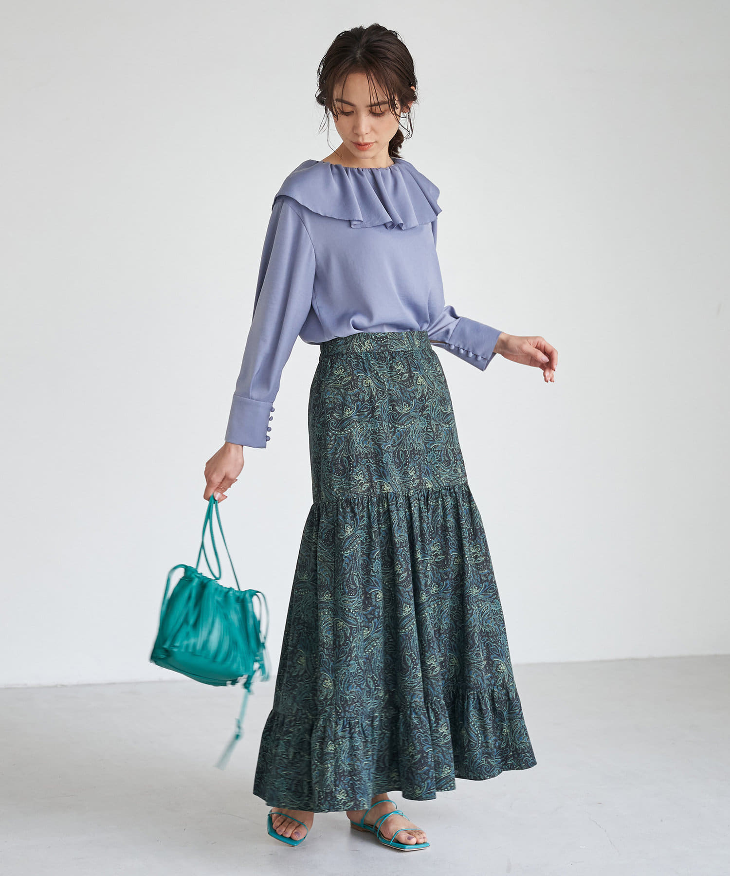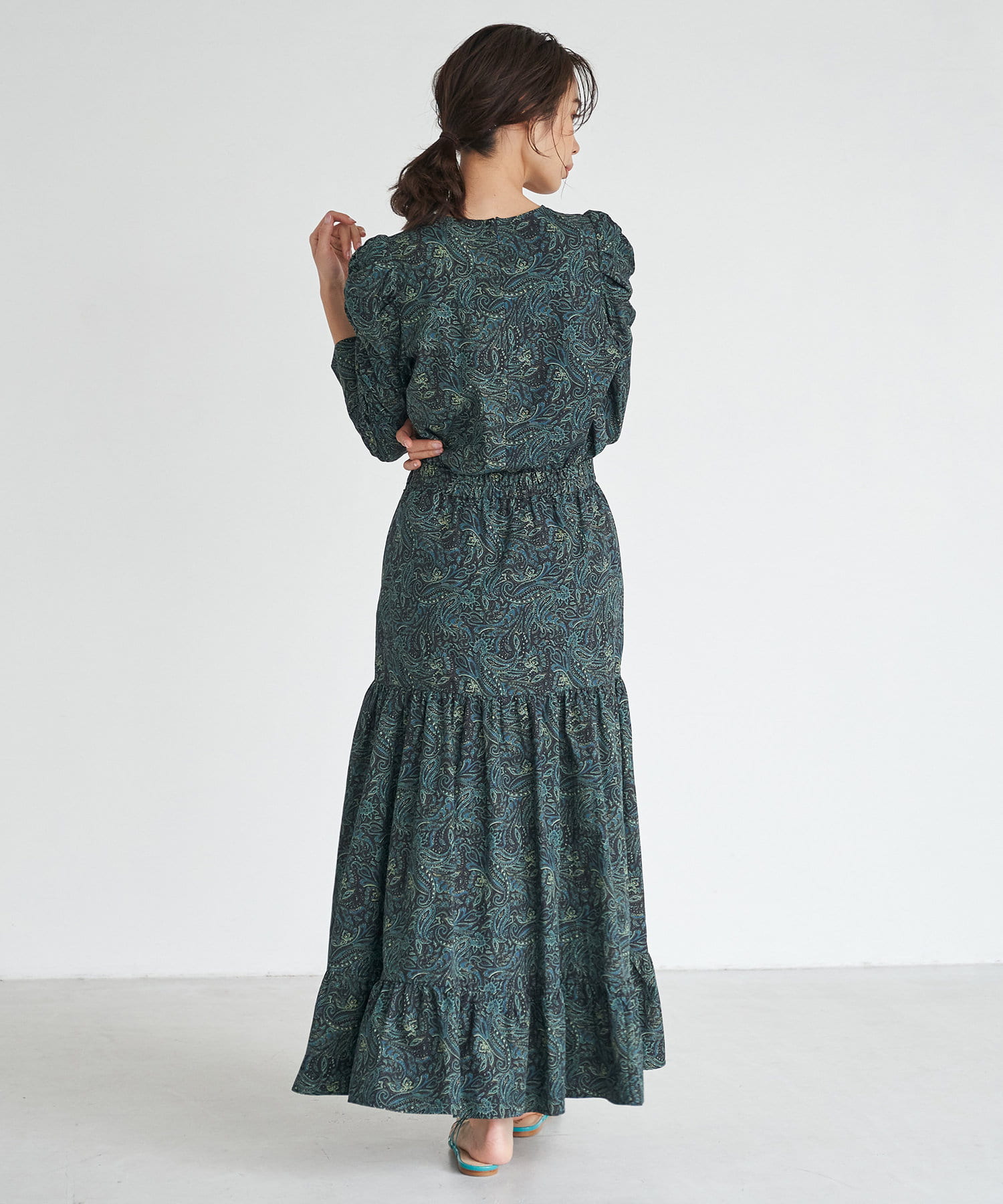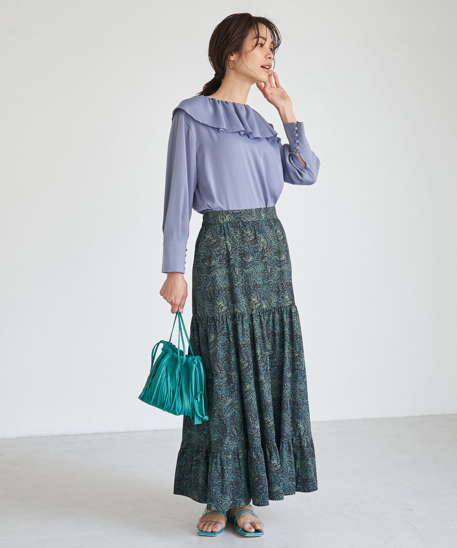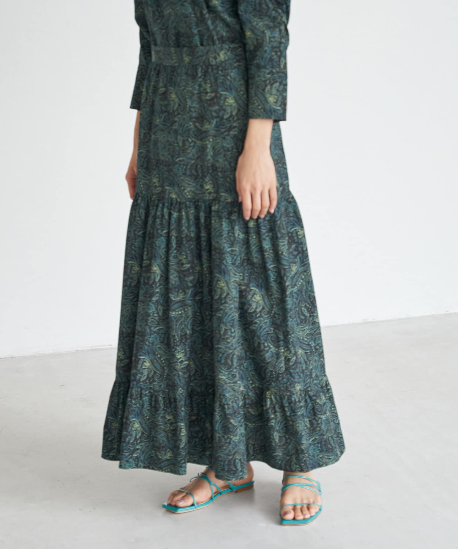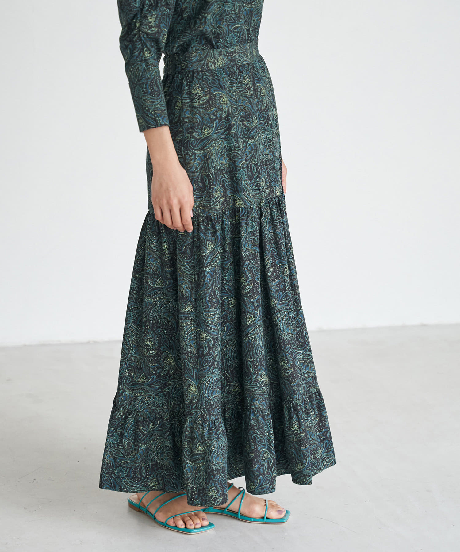 【セットアップ可・しっとりと大人】ペイズリーティアードマキシスカート