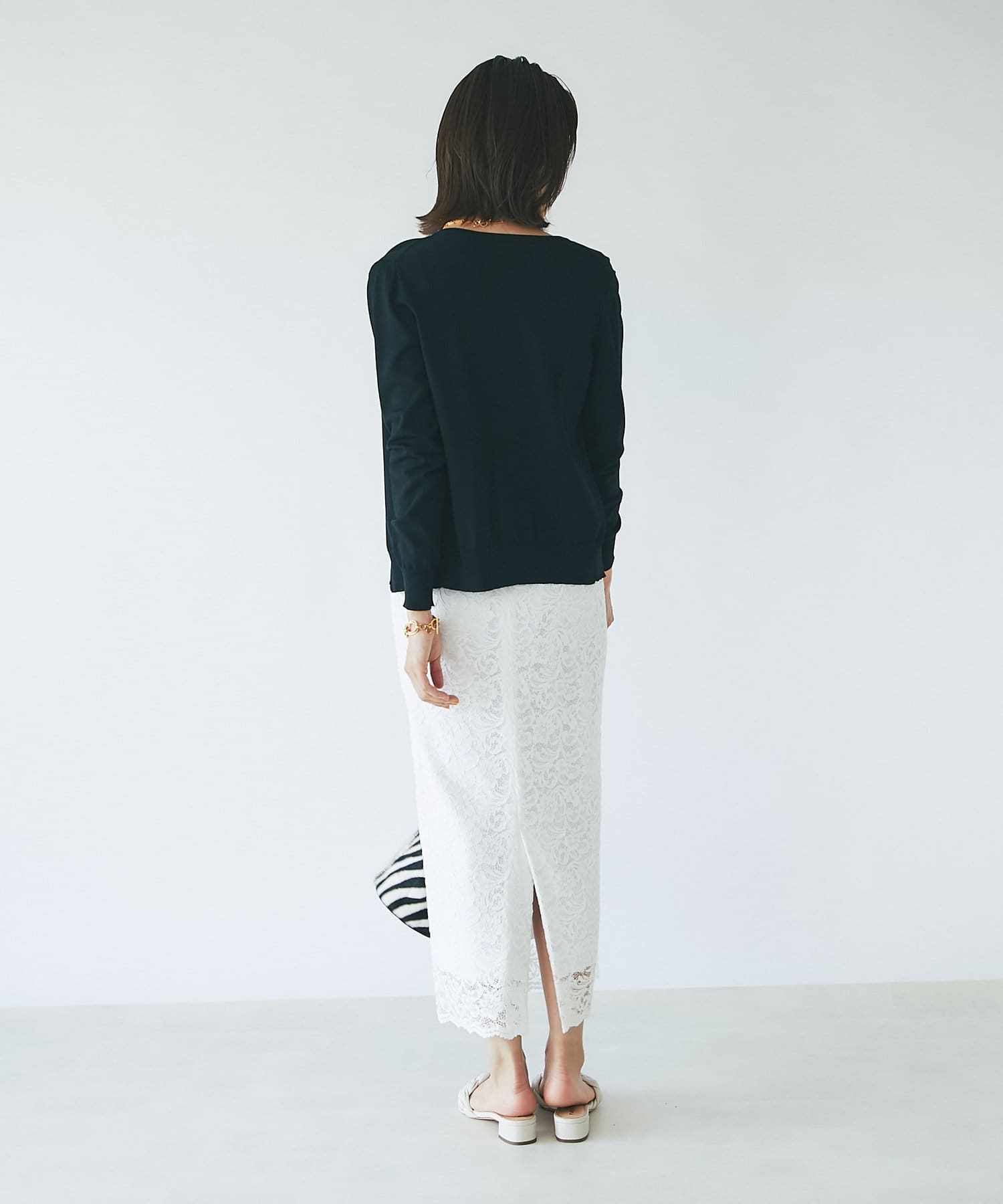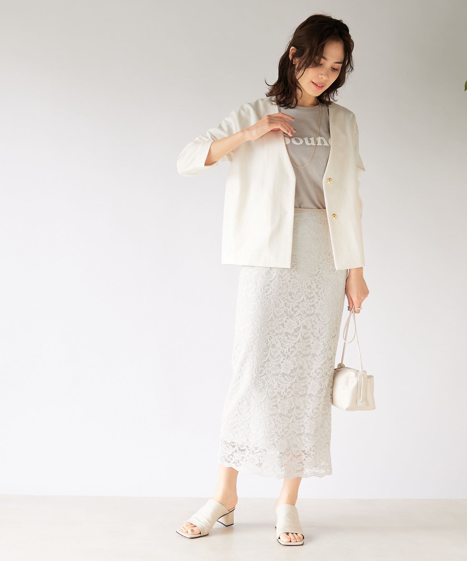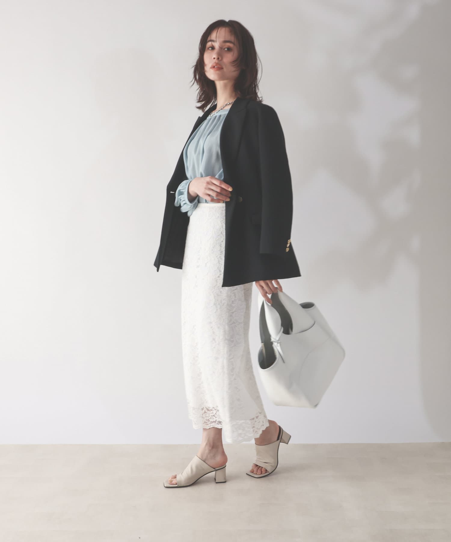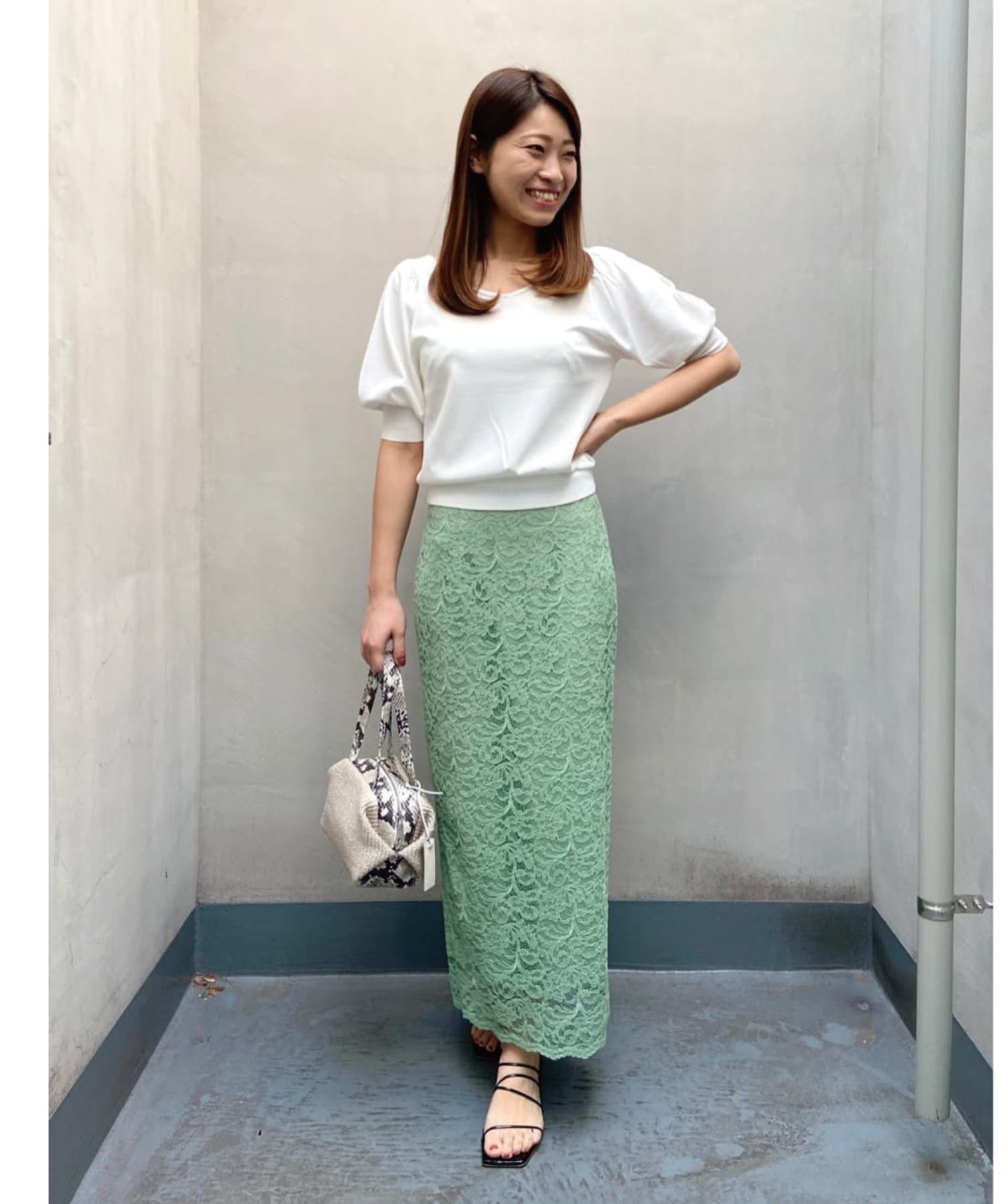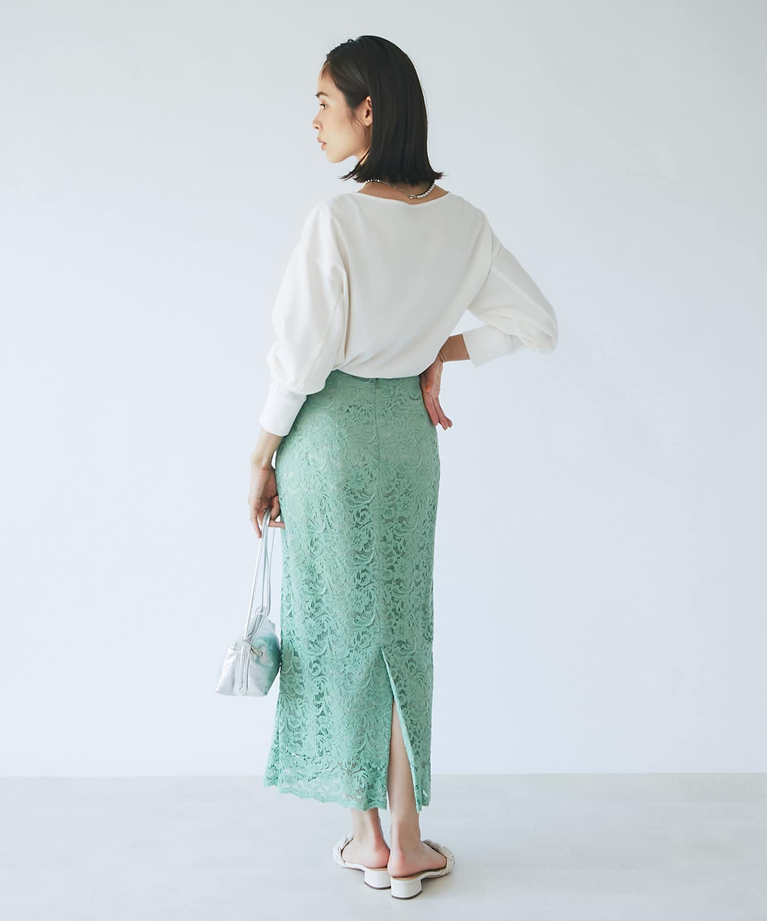 レースのナロースカートと合わせてお仕事にも使えるきれいめコーデに。