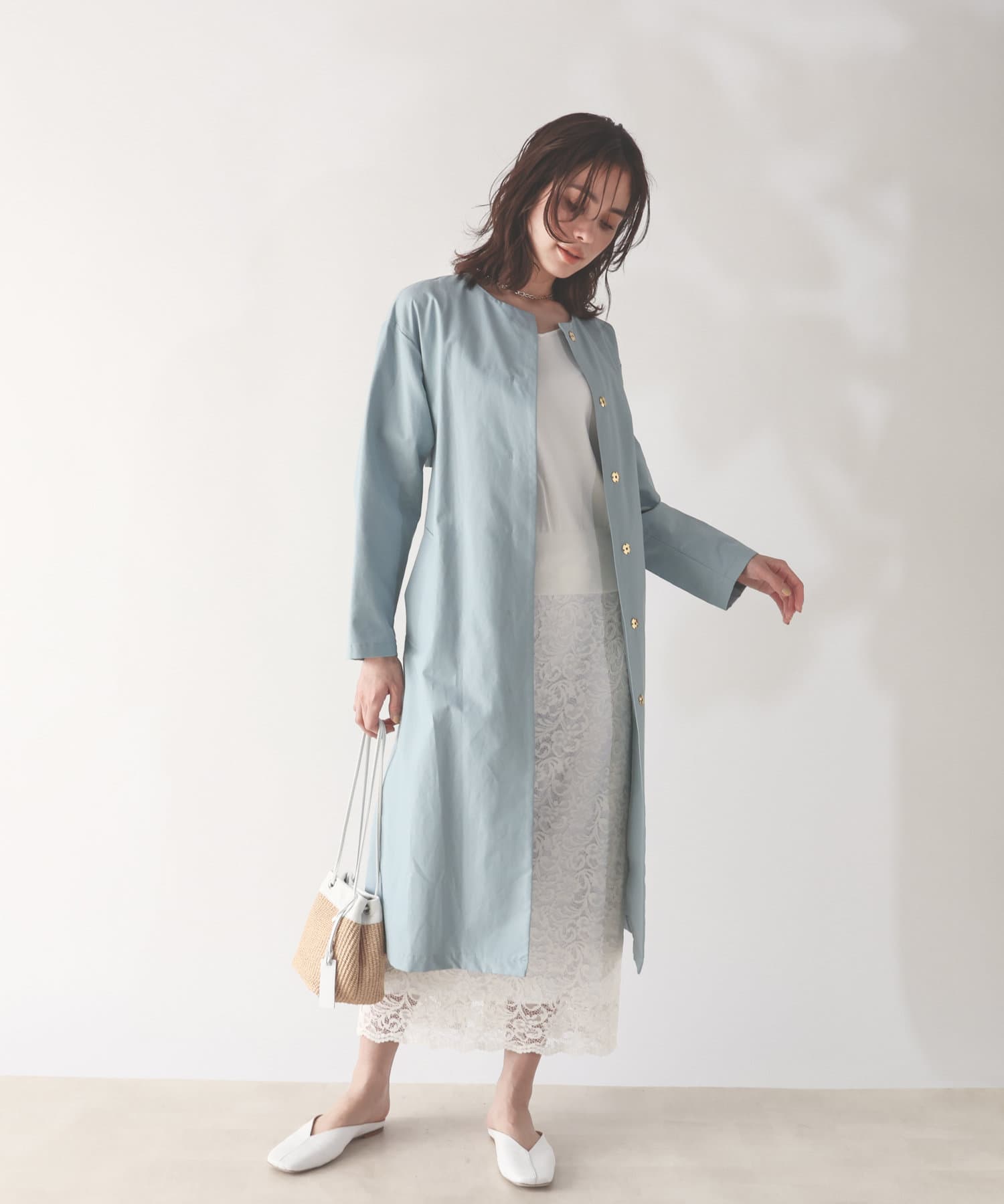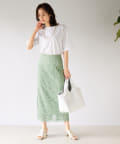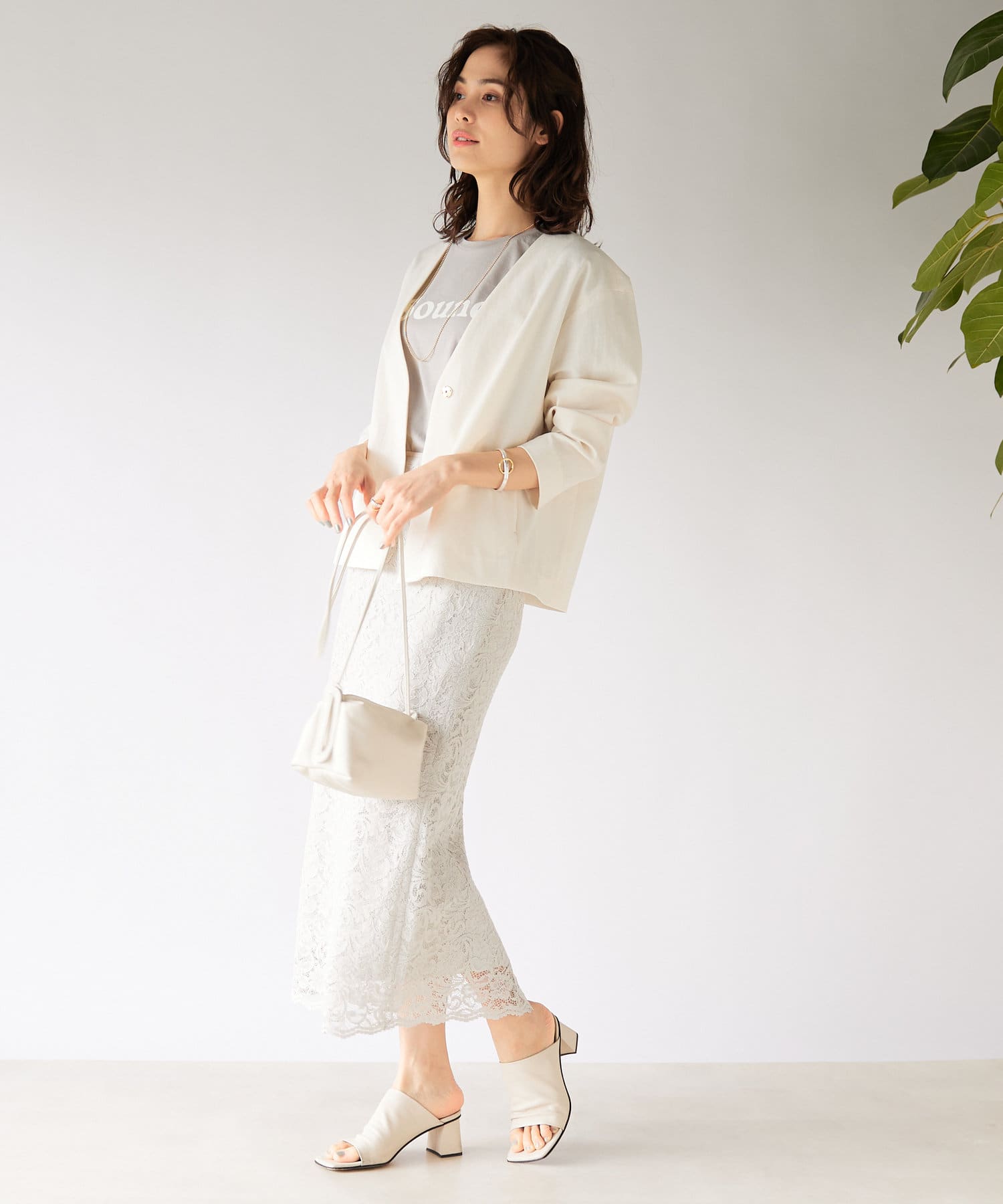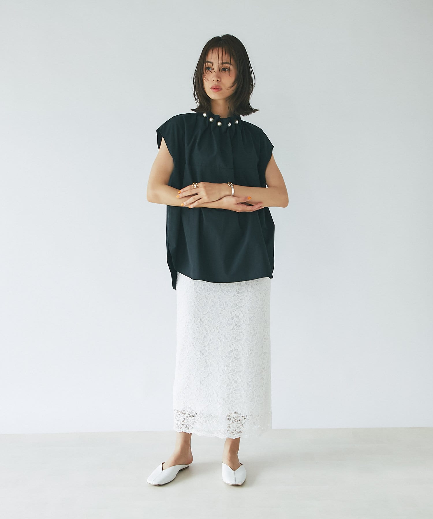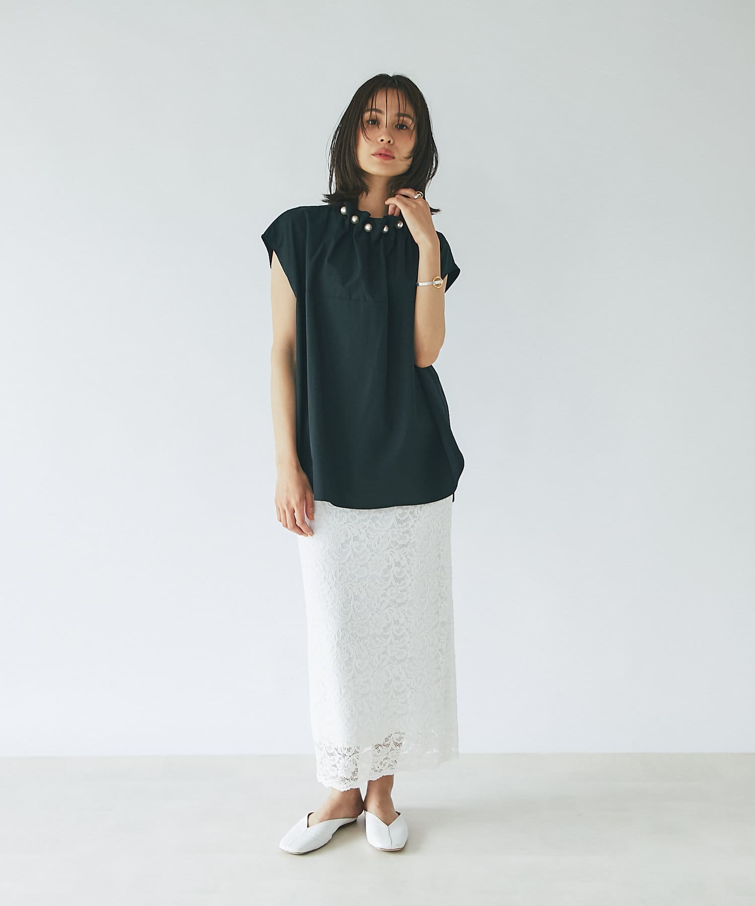 レースのナロースカートと合わせてお仕事にも使えるきれいめコーデに。