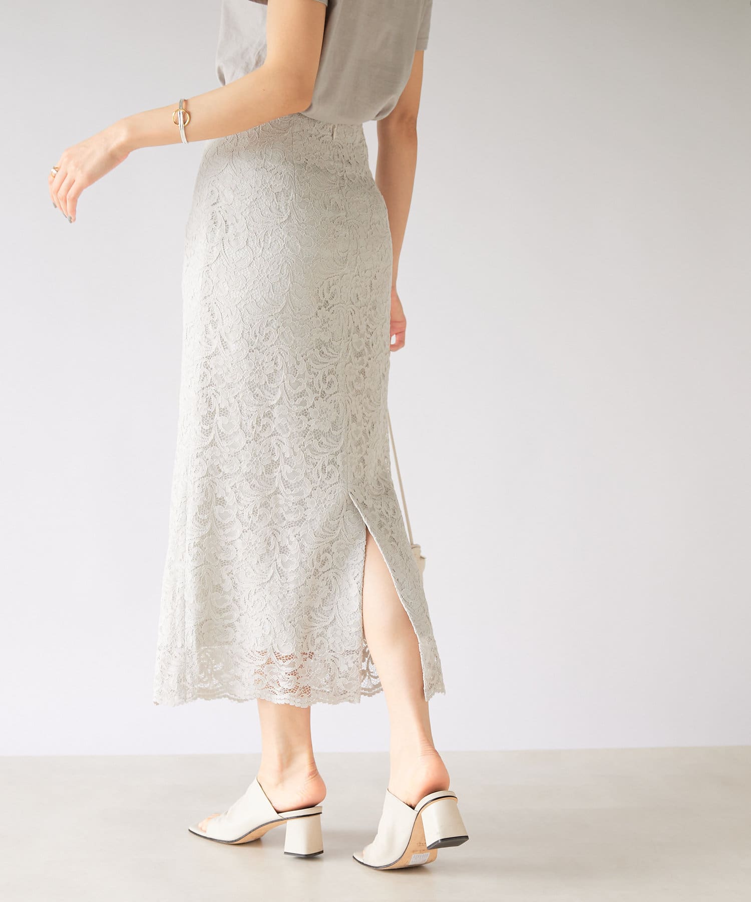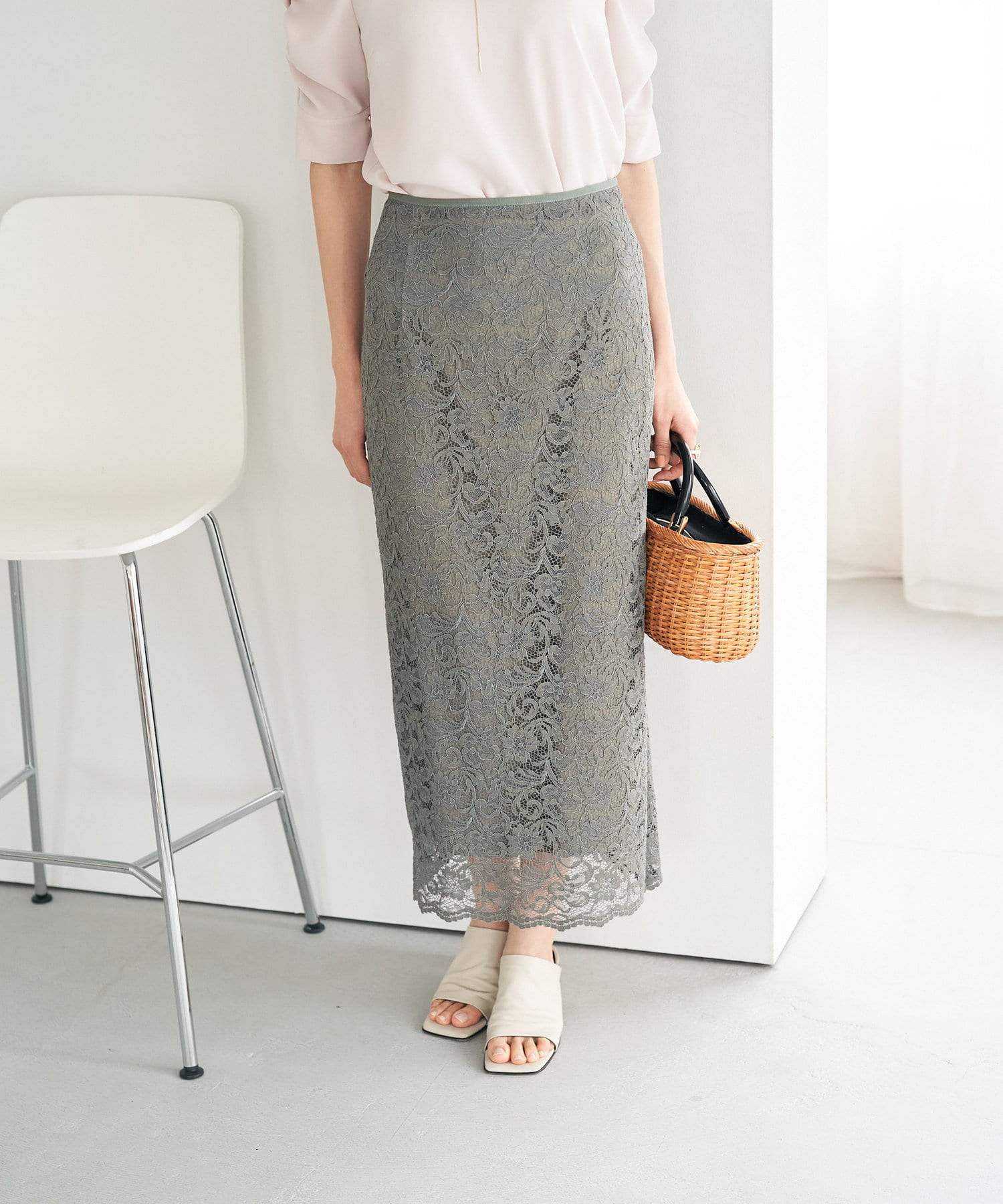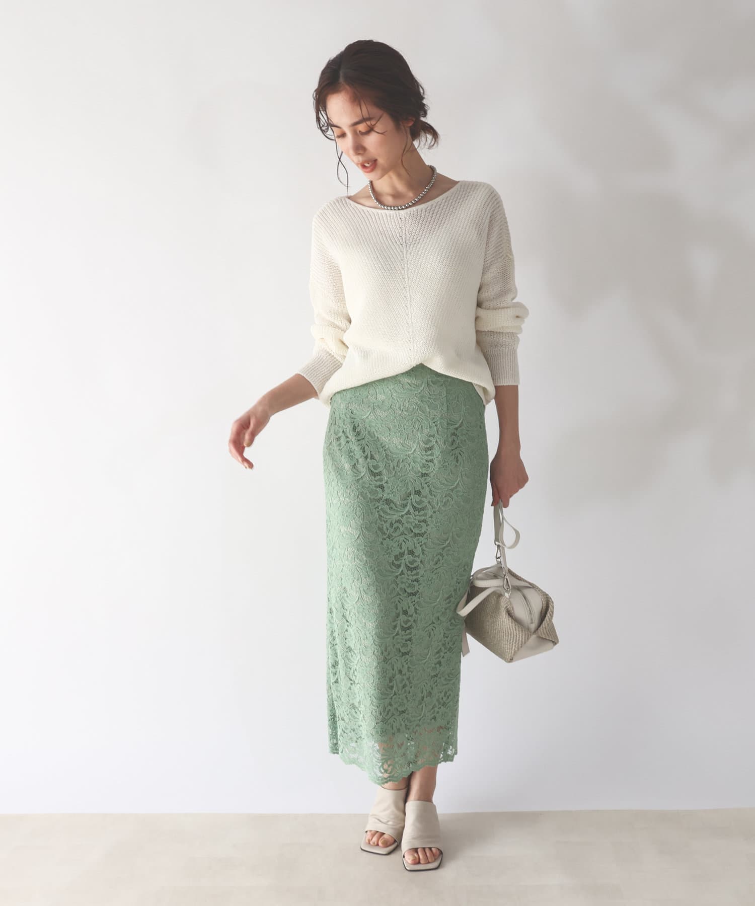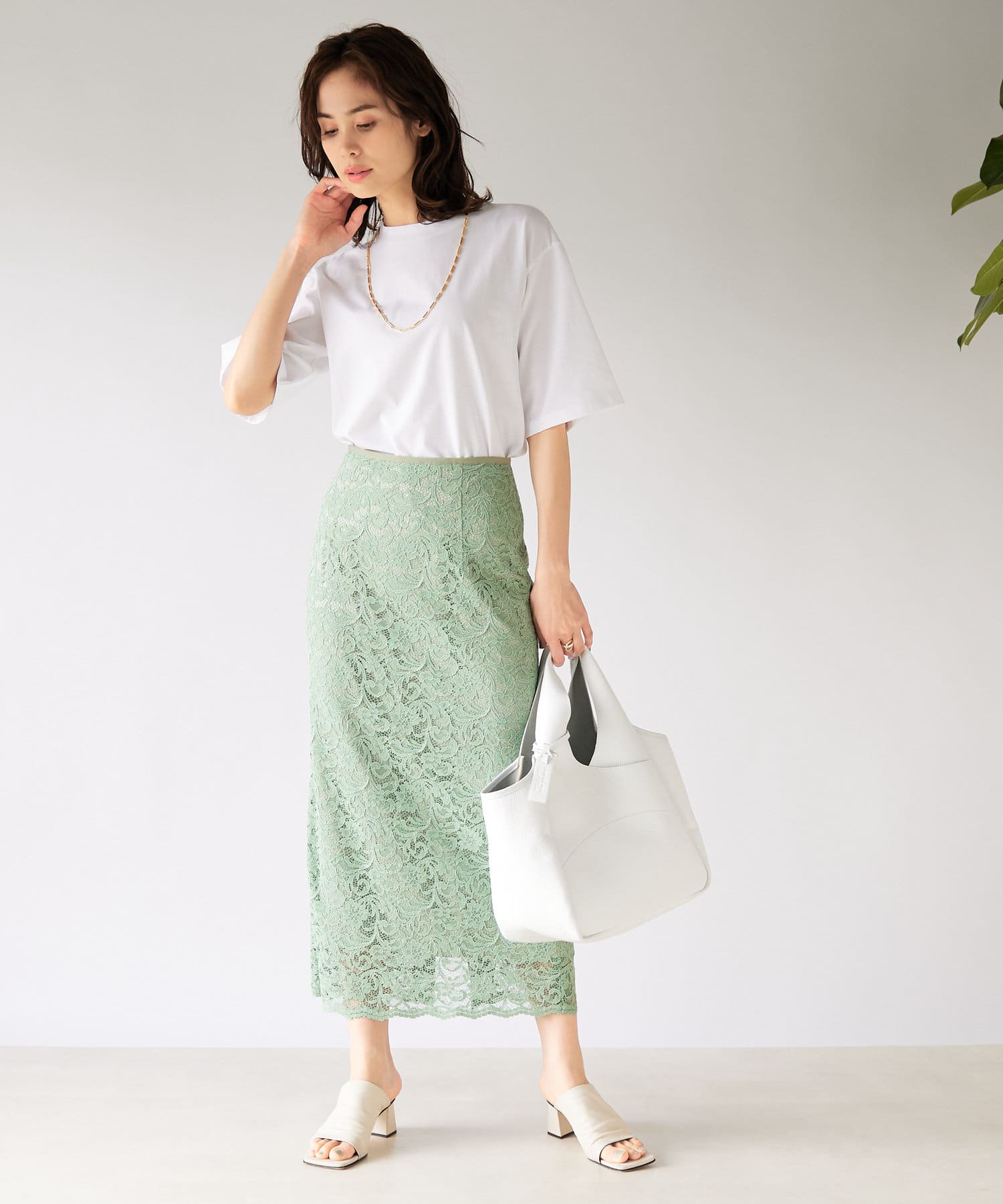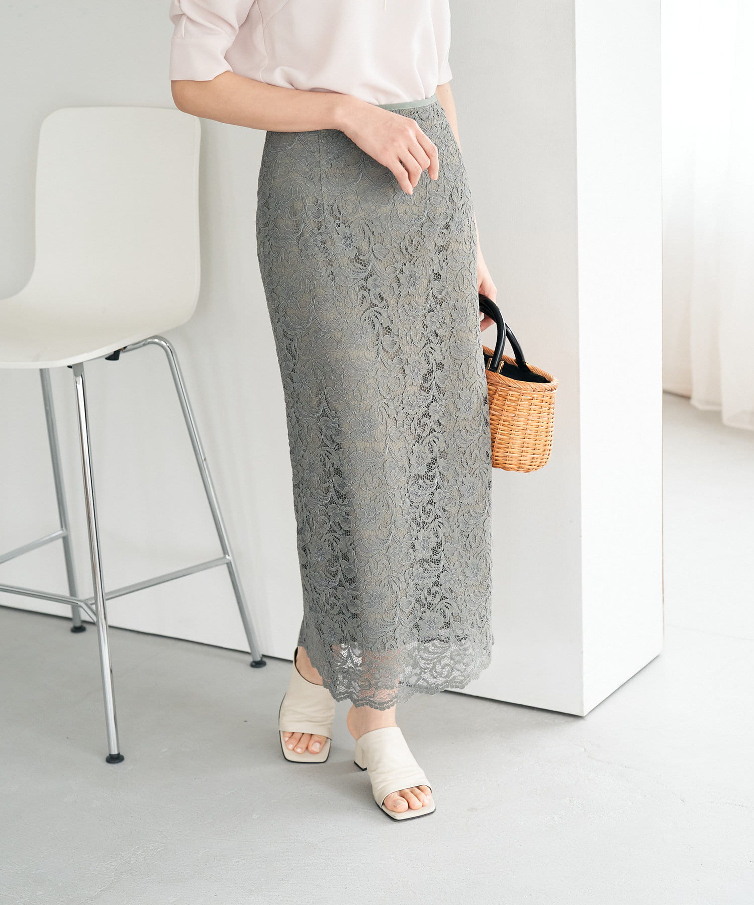 女らしいラインの縦長シルエットがスタイルアップ見えするレーススカートは着回し力抜群な一枚。