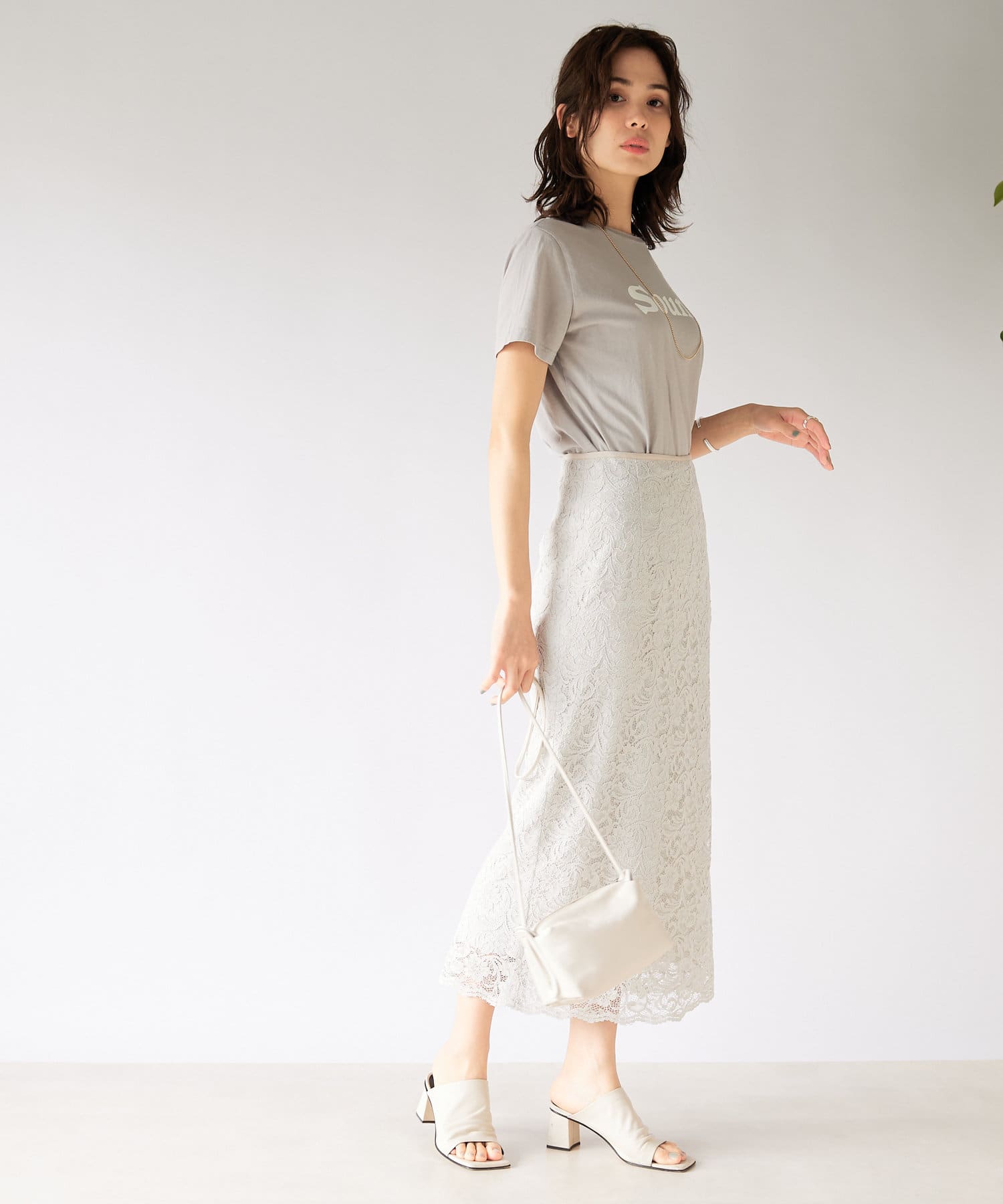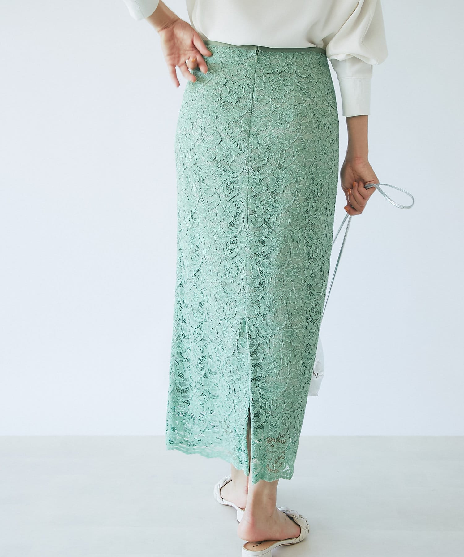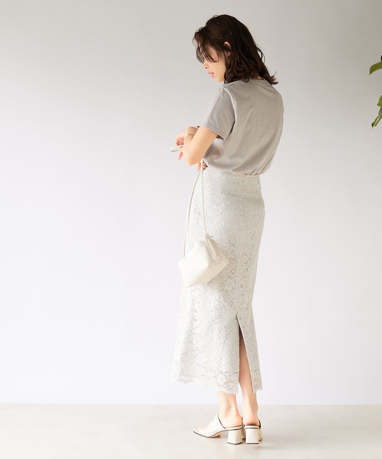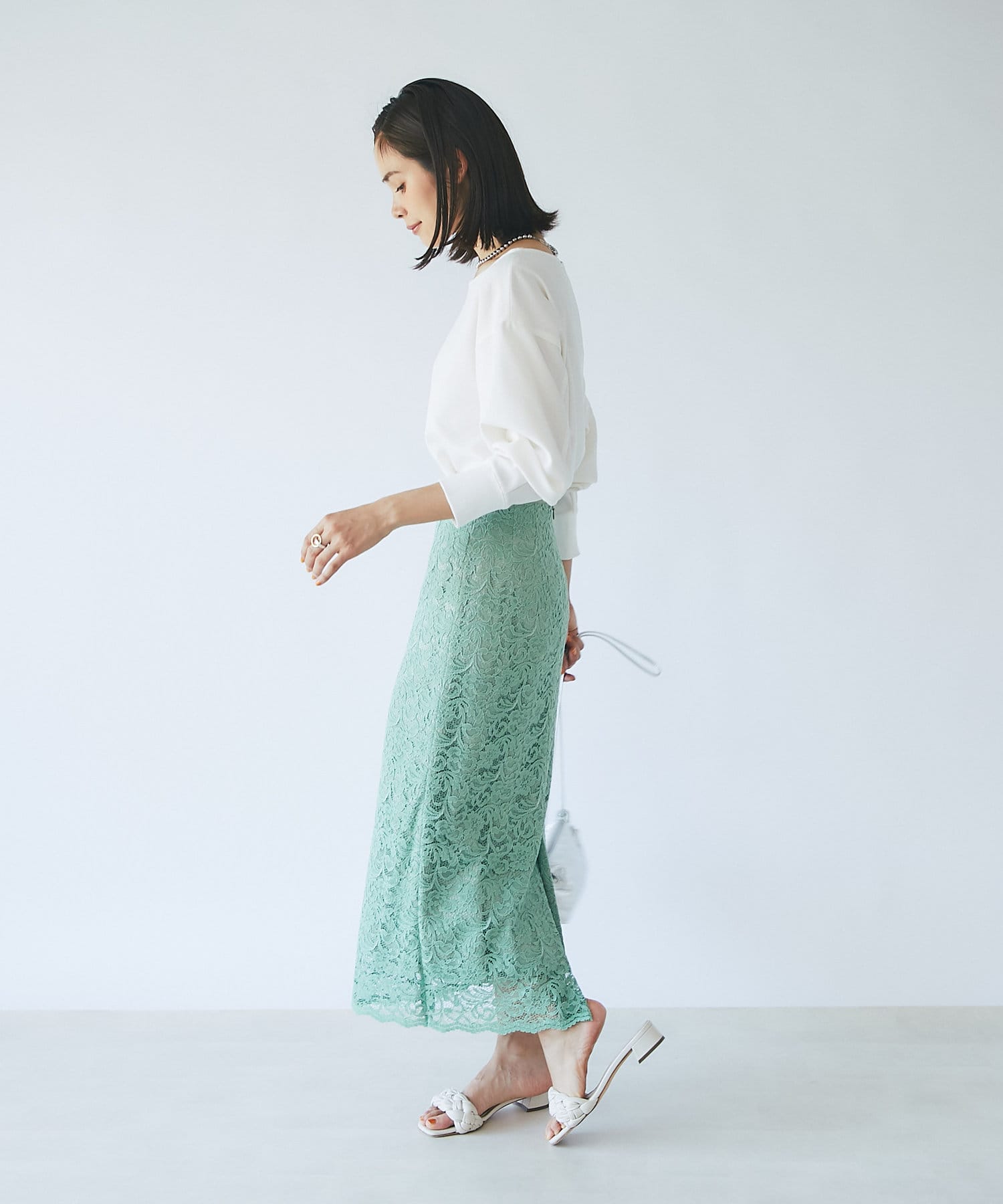 女らしいラインの縦長シルエットがスタイルアップ見えするレーススカートは着回し力抜群な一枚。