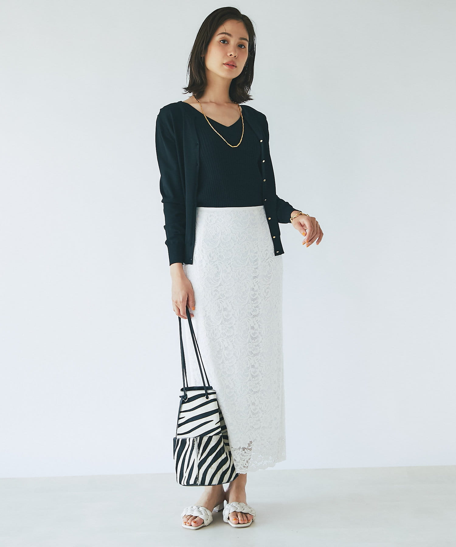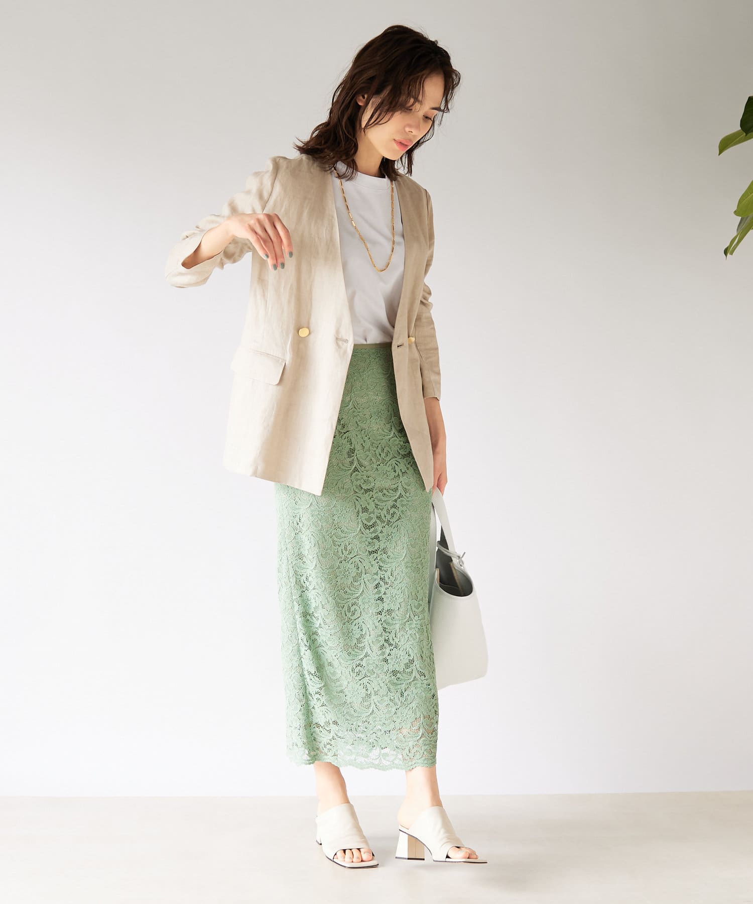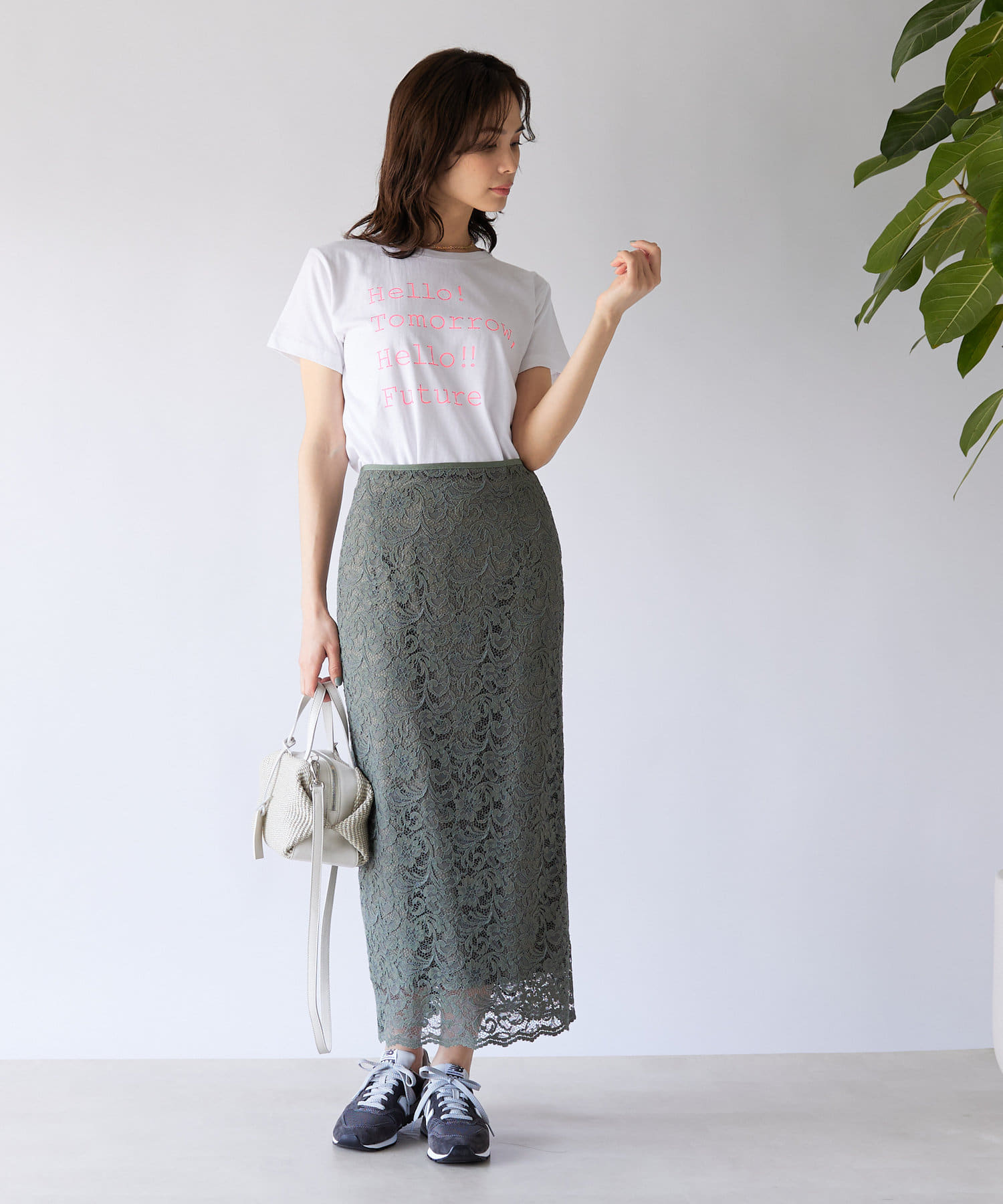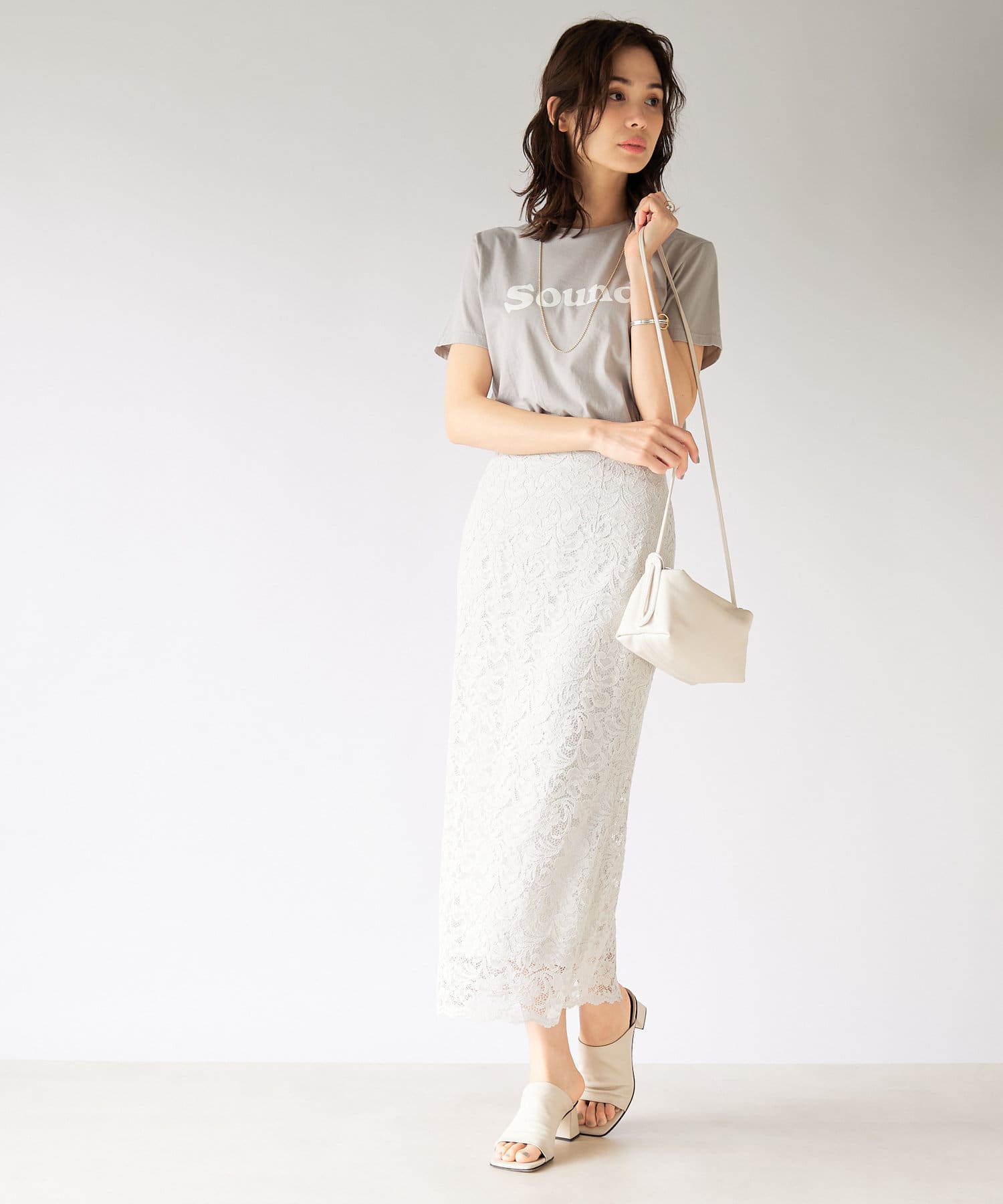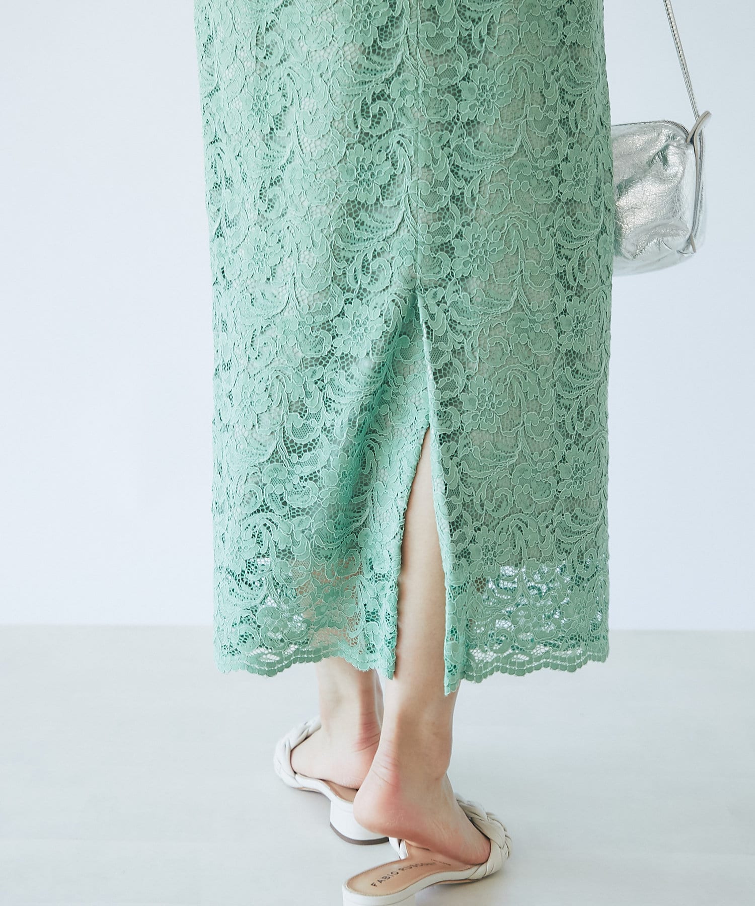 女らしいラインの縦長シルエットがスタイルアップ見えするレーススカートは着回し力抜群な一枚。