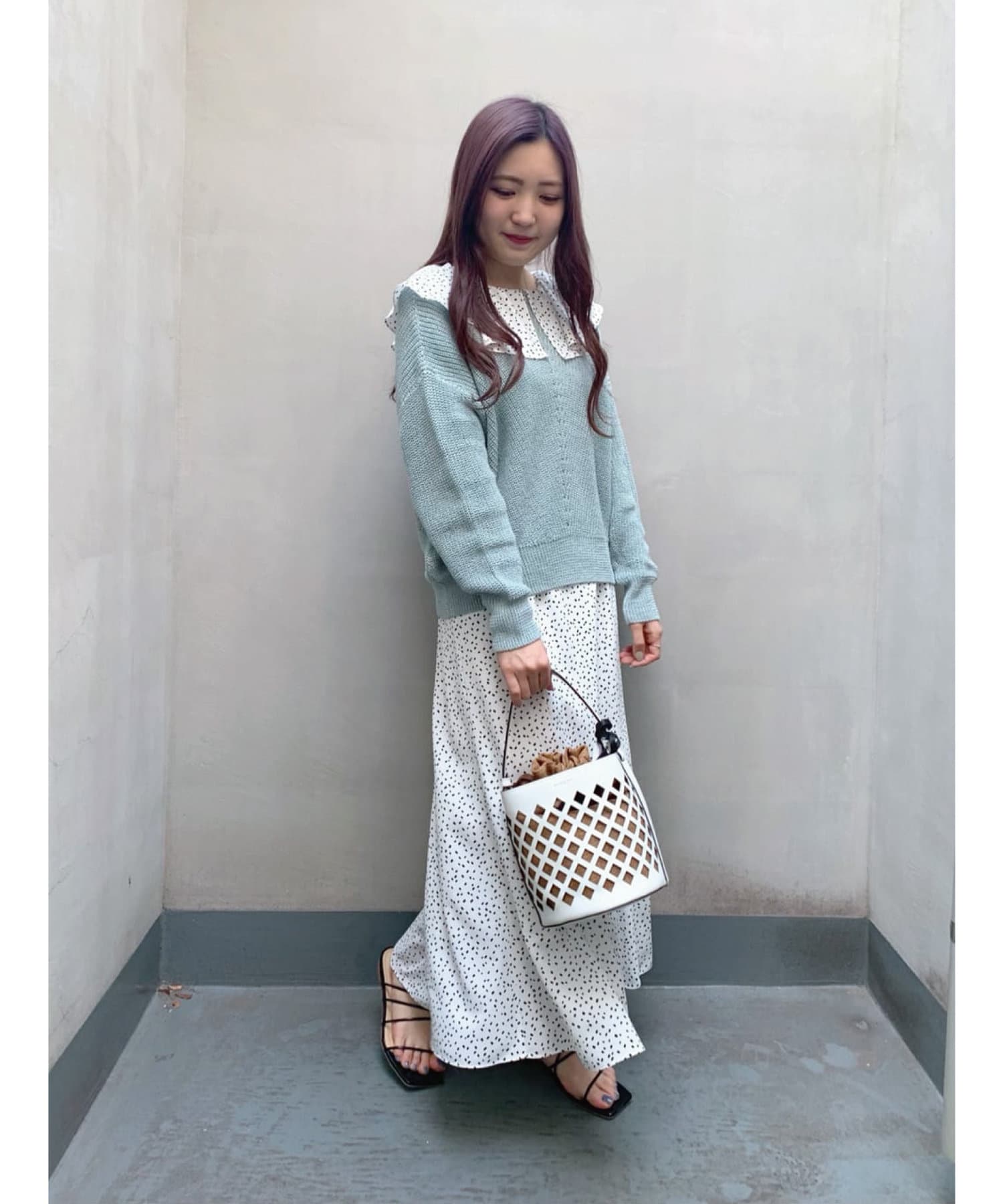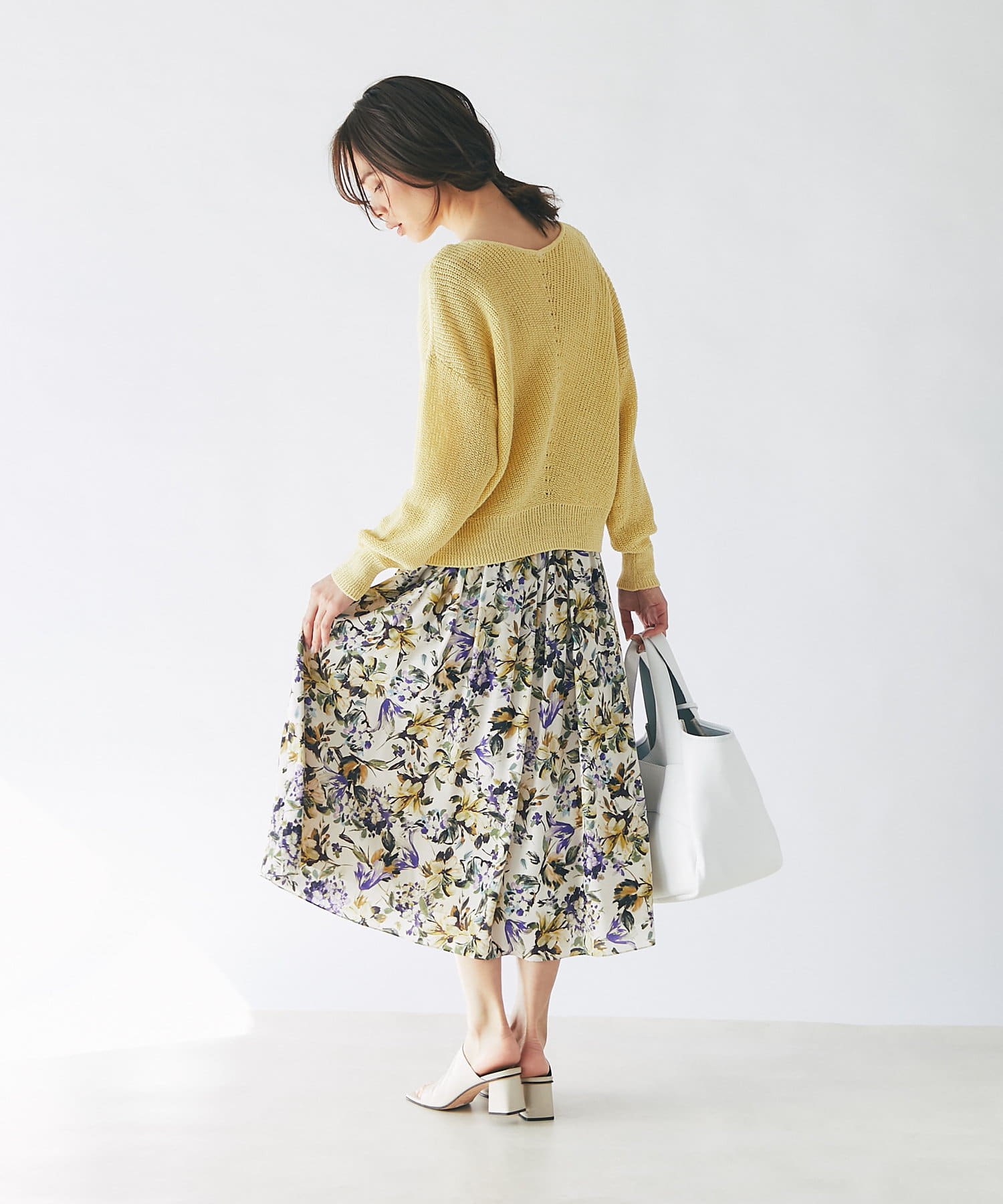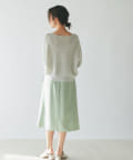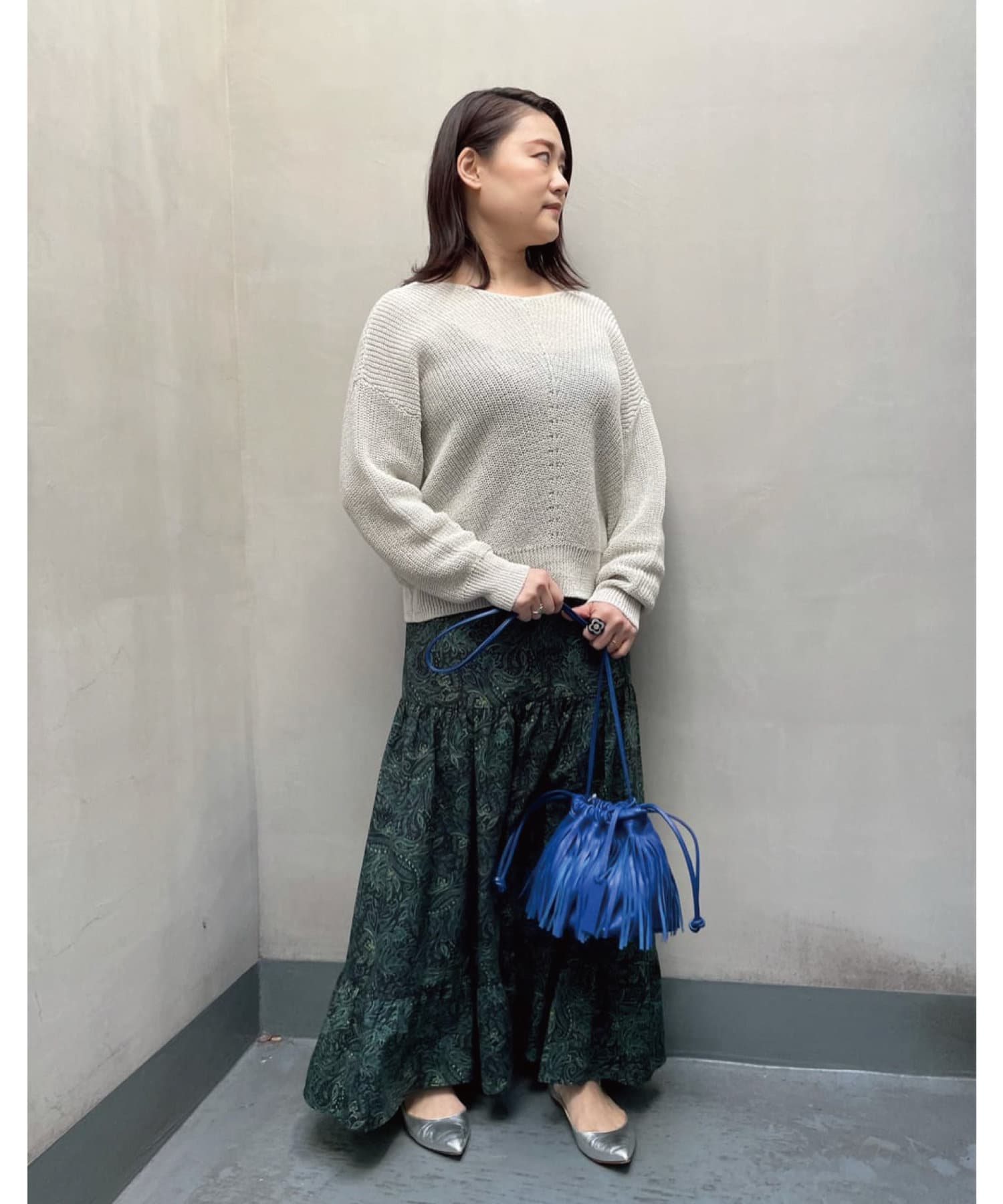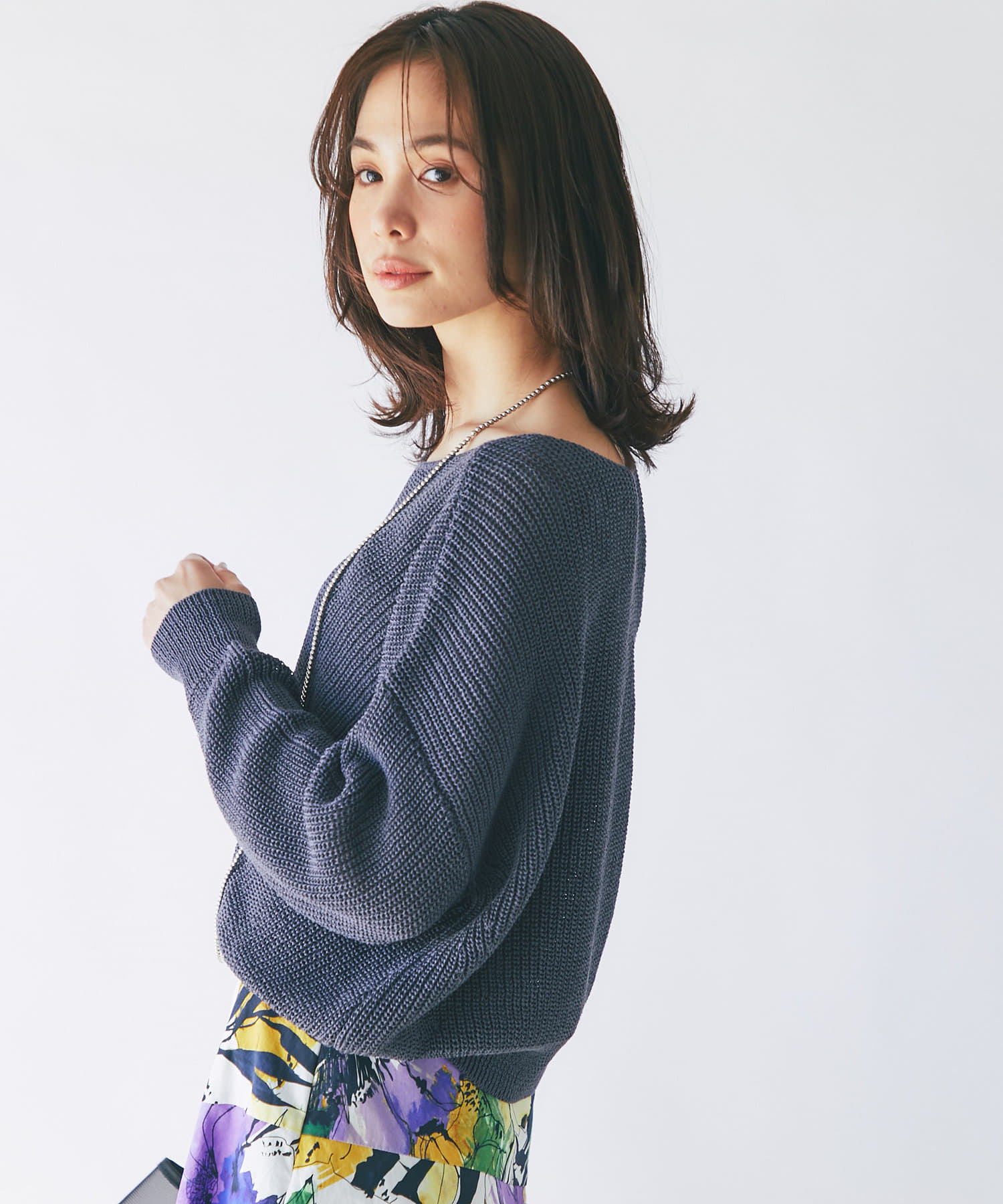 リリヤーンという軽さのある糸で作られたニットです。ゆったりとしたサイズ感で身体のラインを拾いにくいのが特長です。