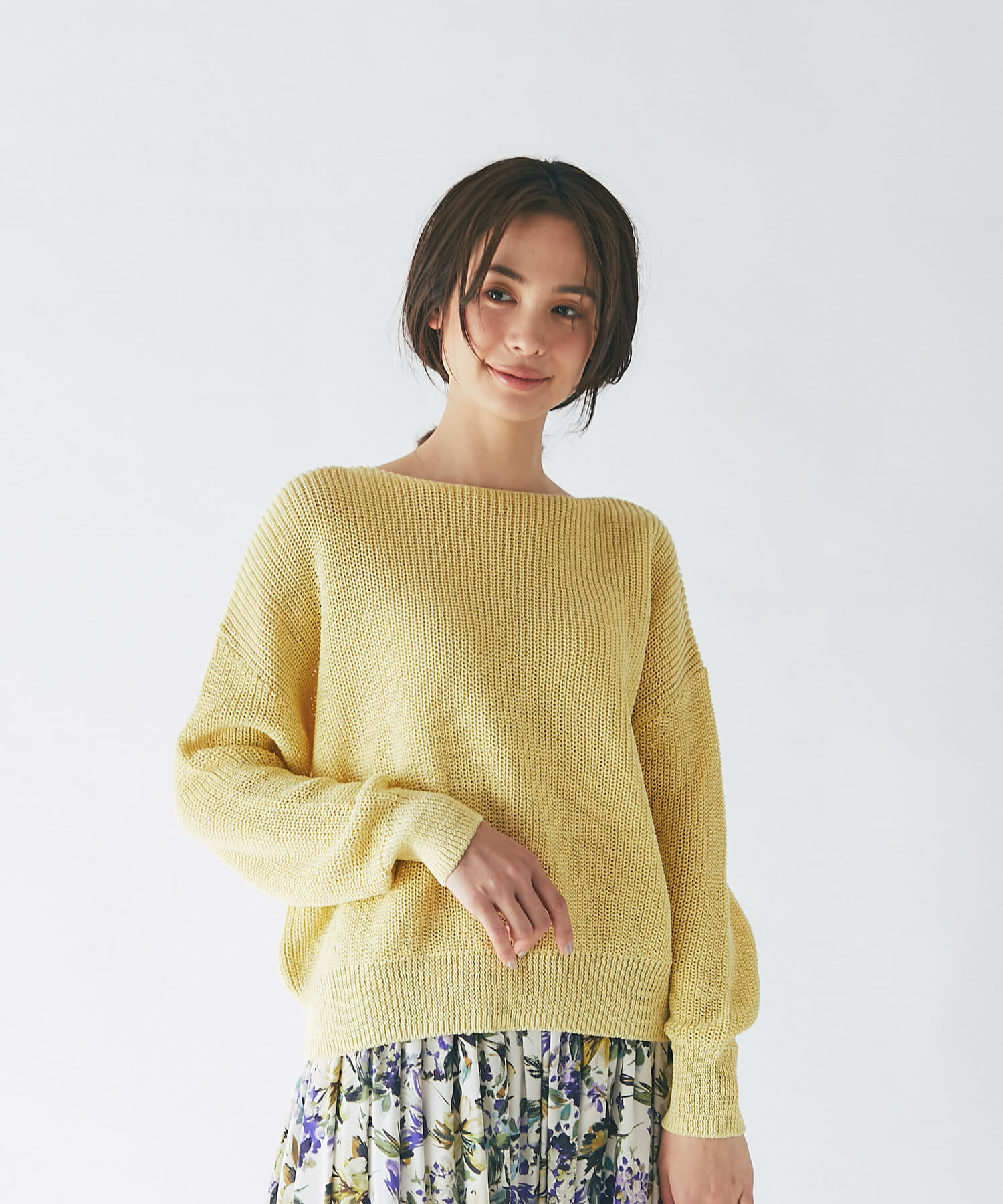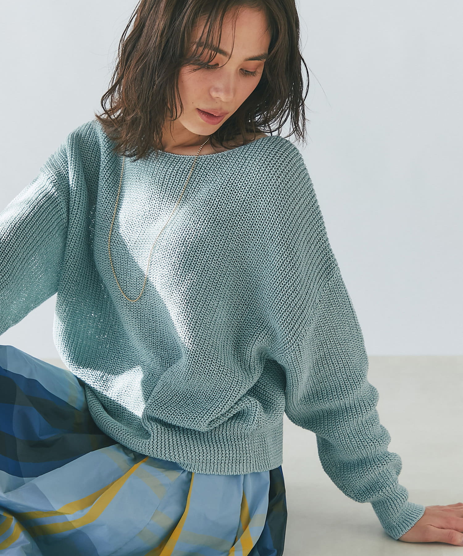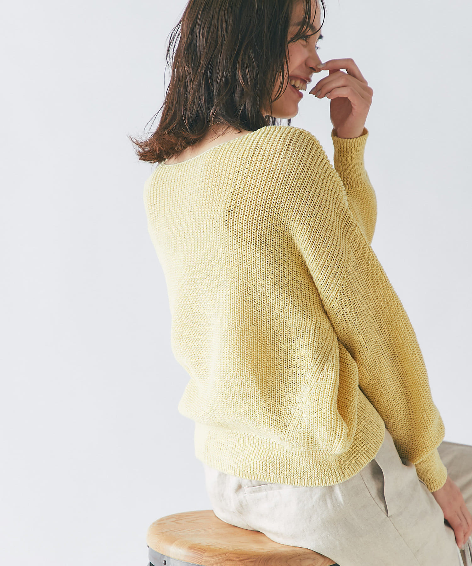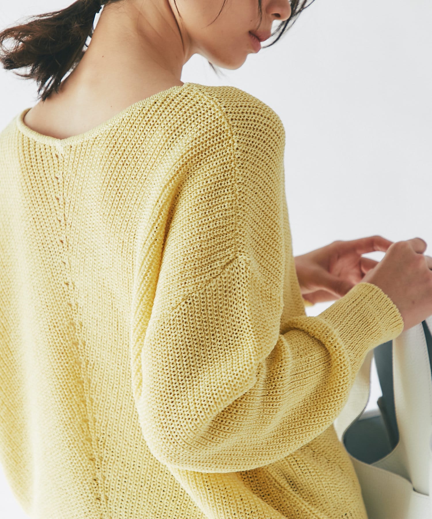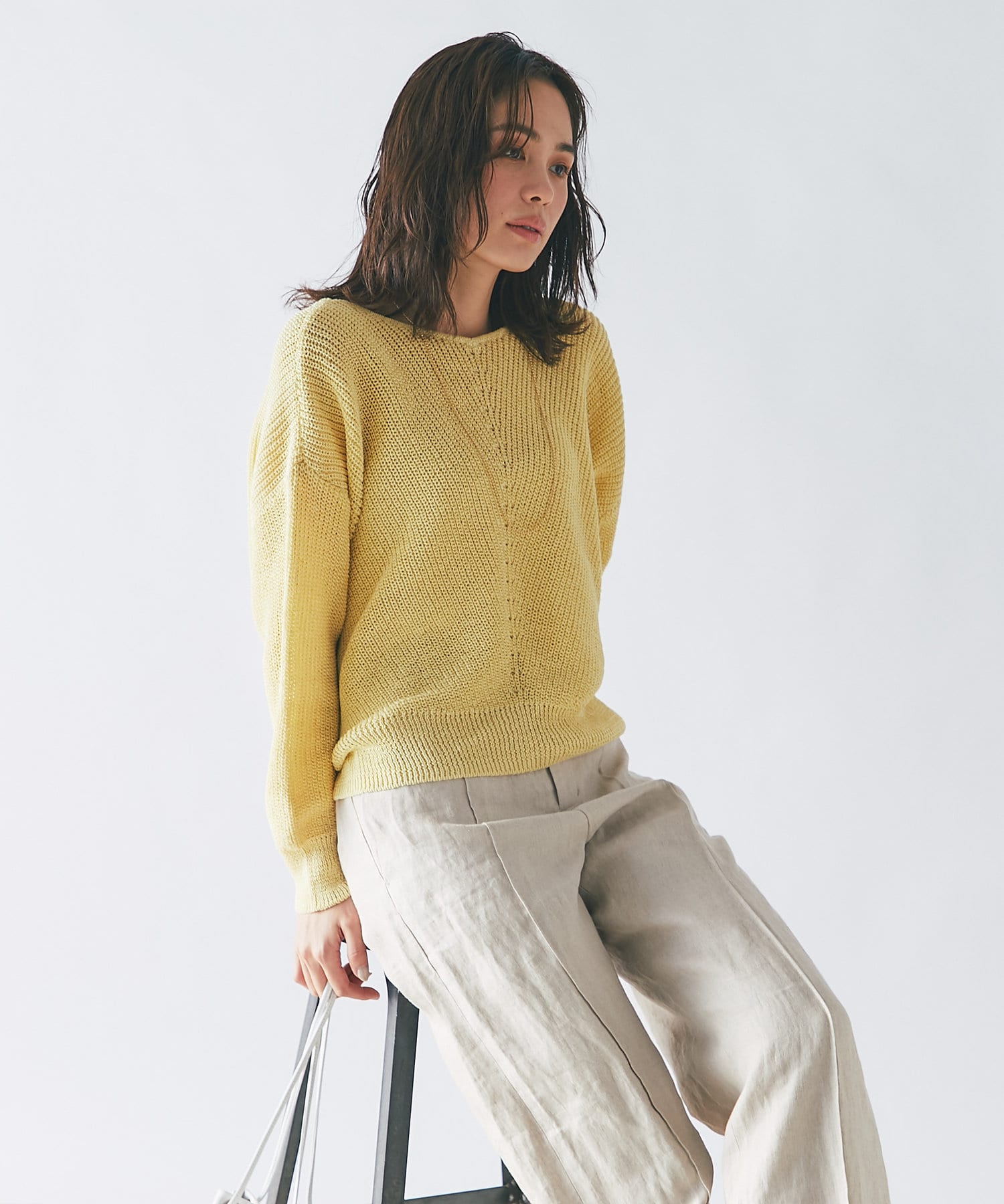 軽やかでとろんとした質感が着やすいストローヤーンのニット。