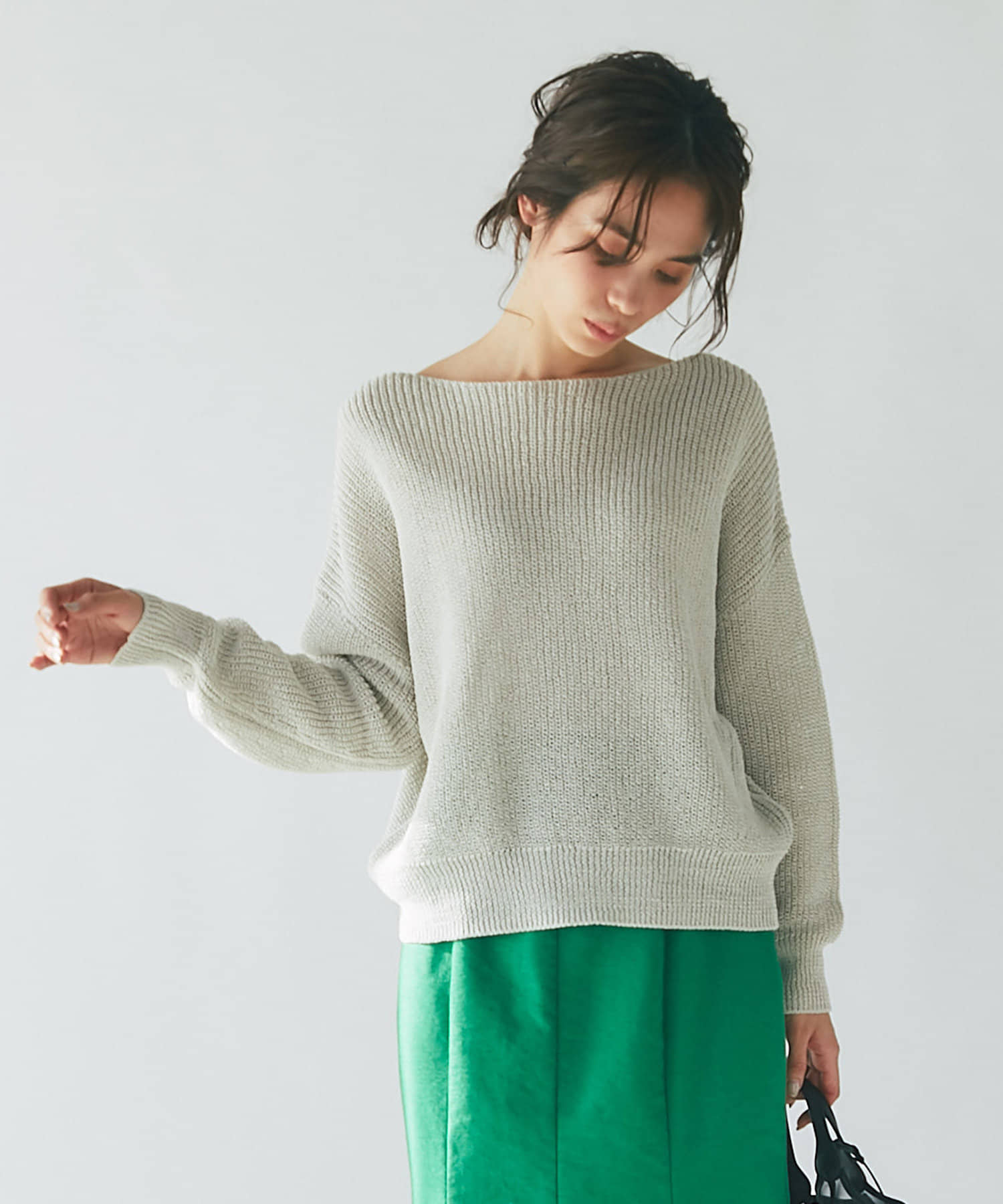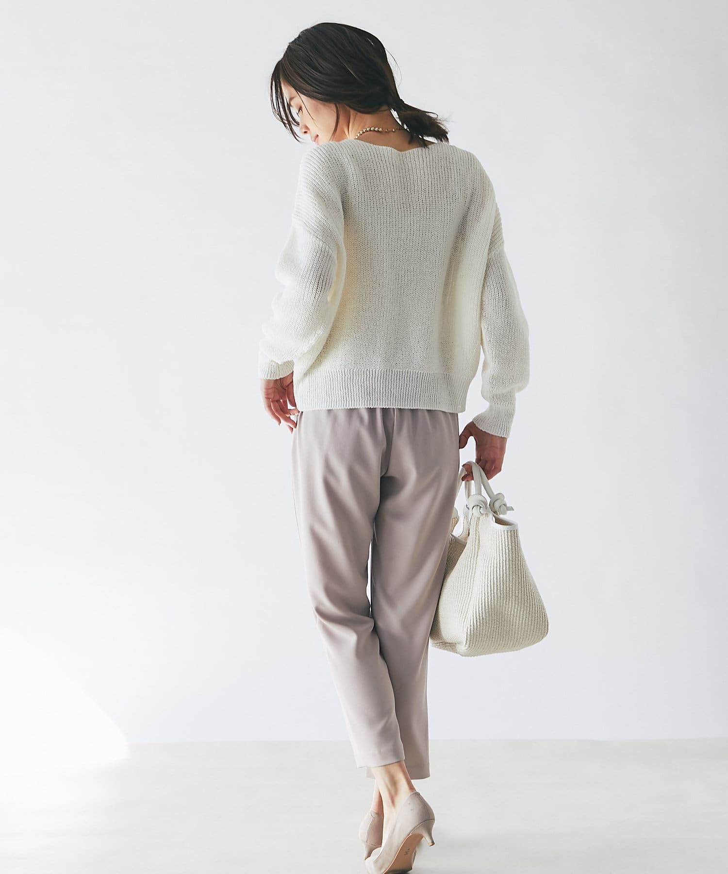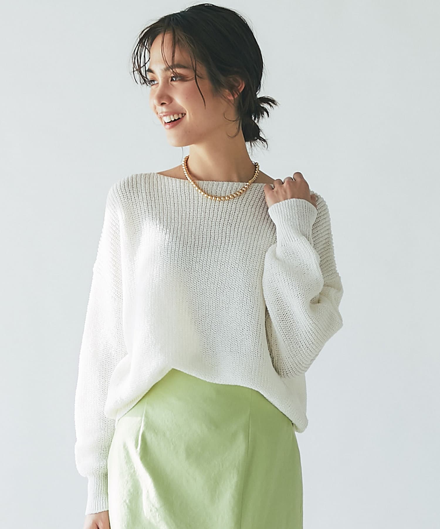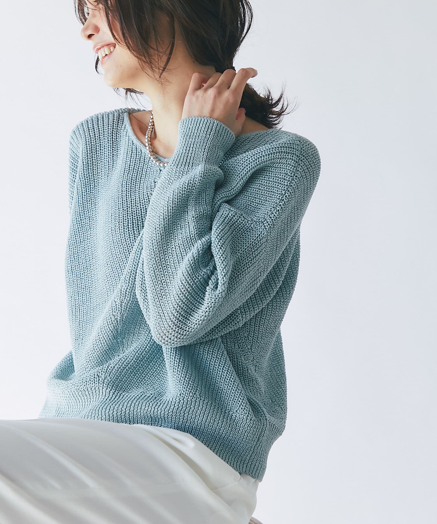 軽やかでとろんとした質感が着やすいストローヤーンのニット。
