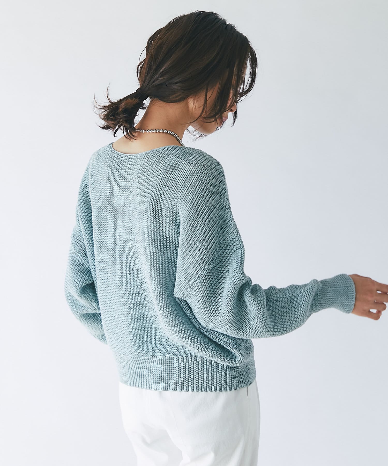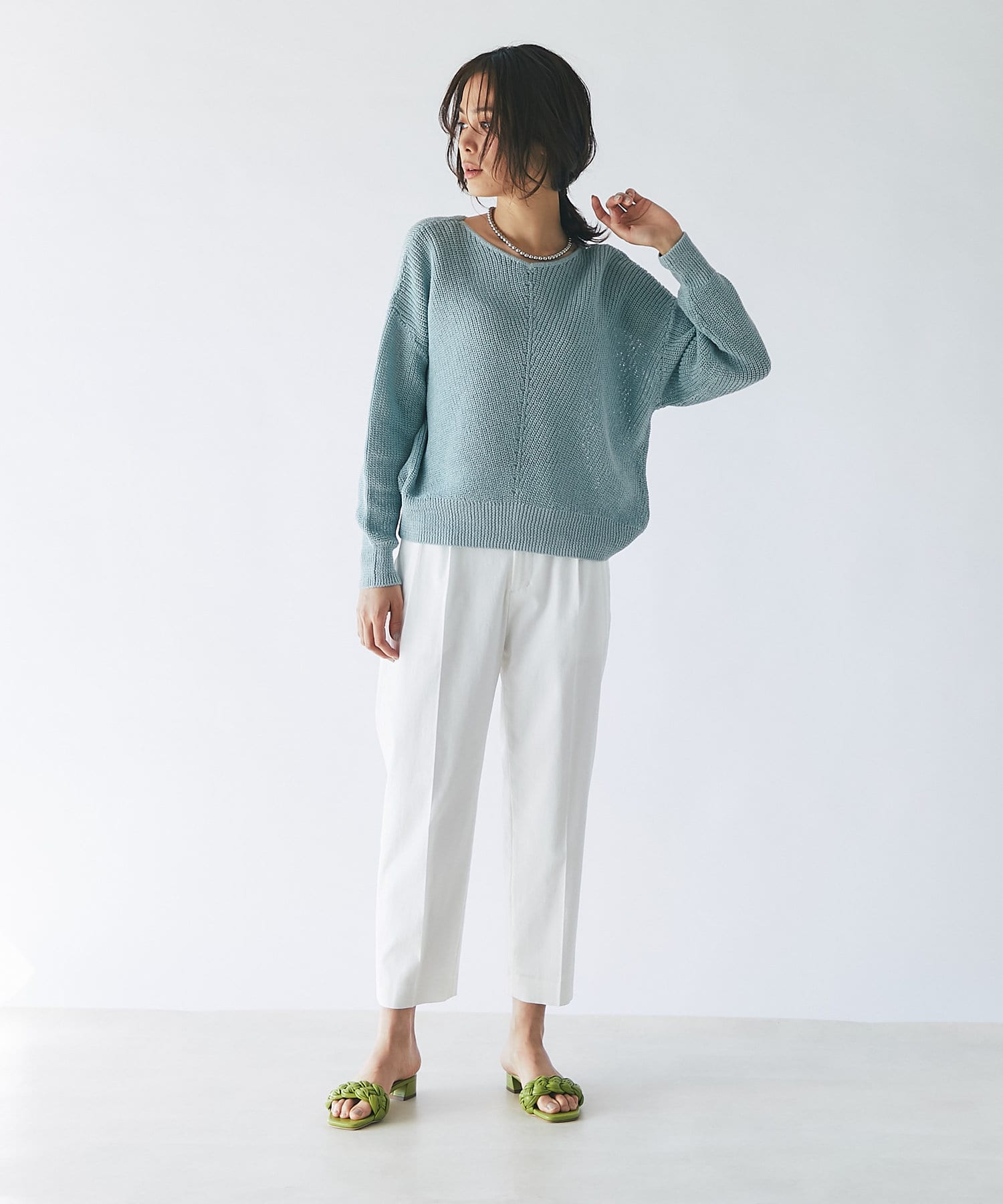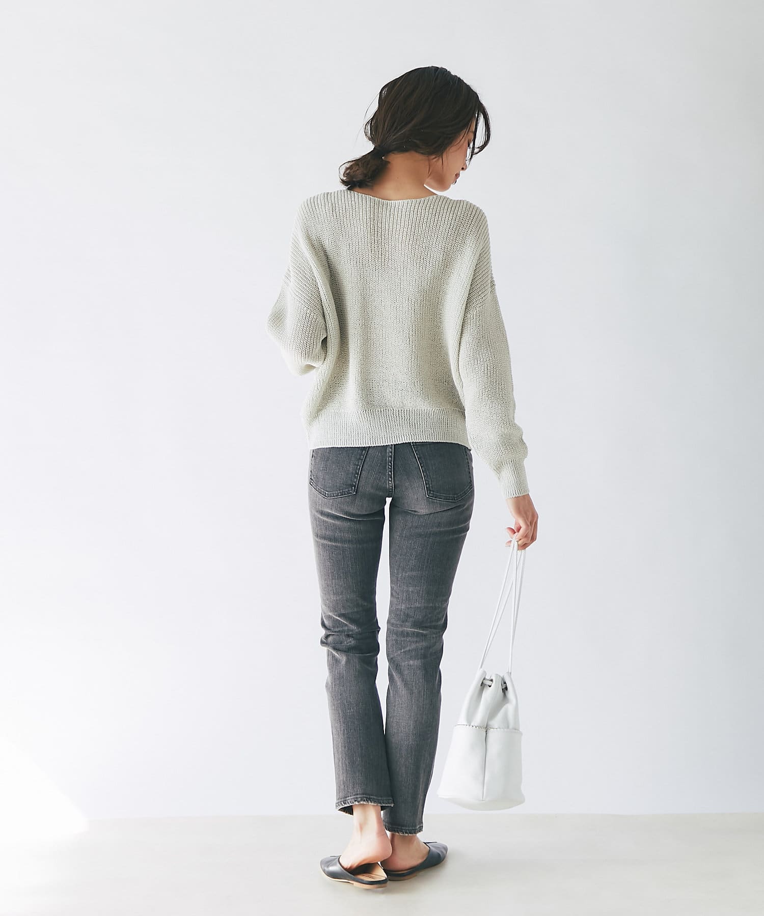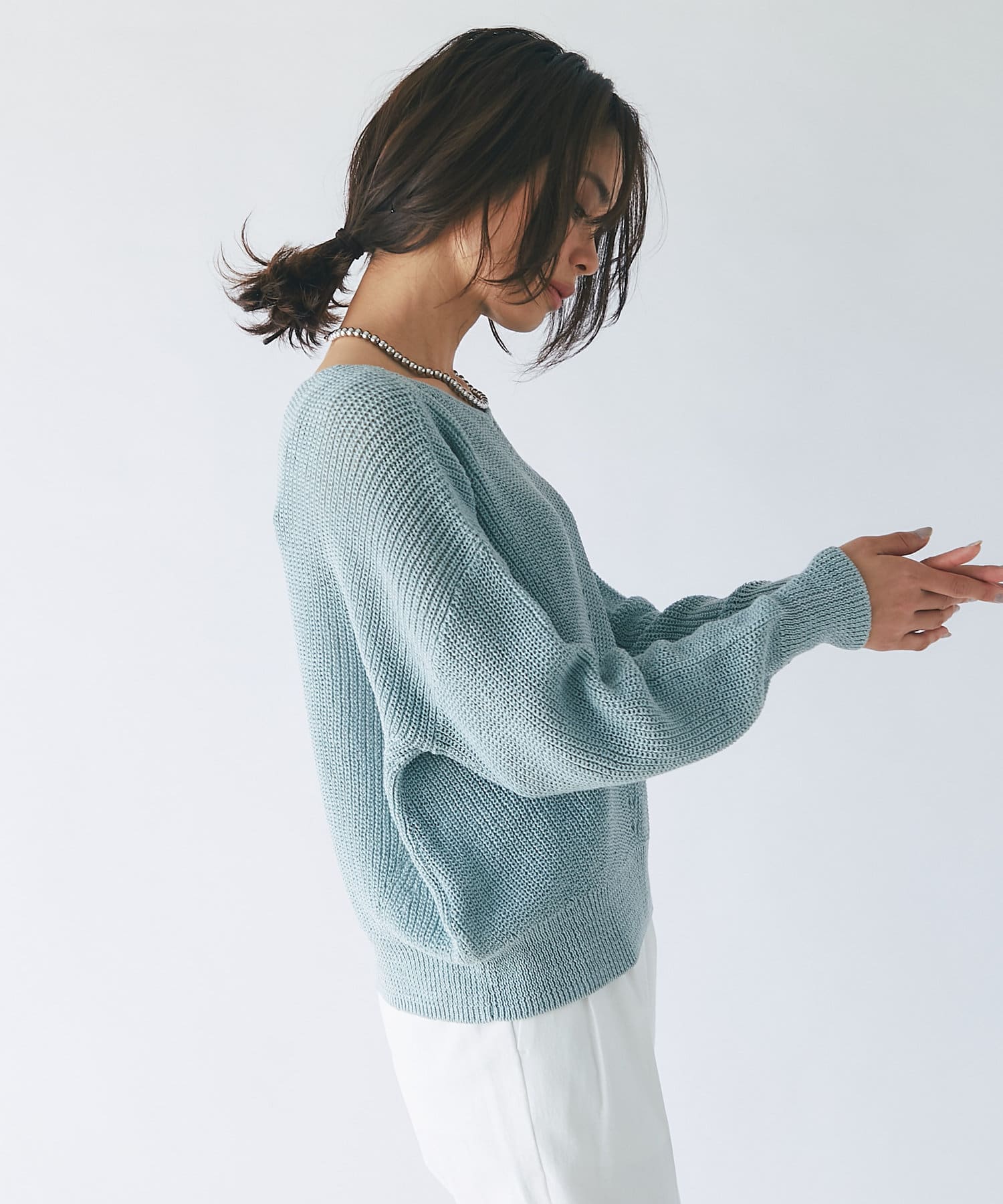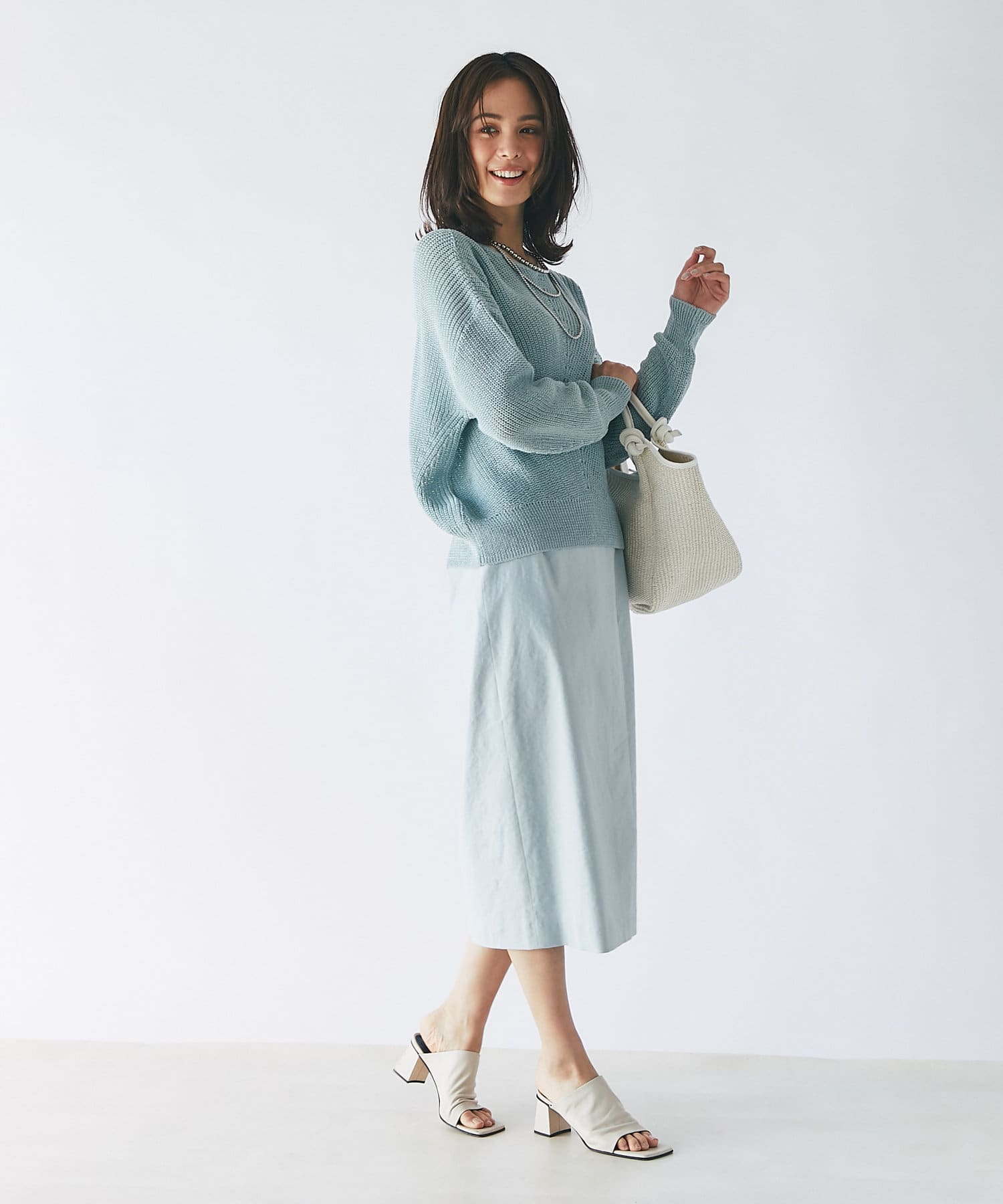 軽やかでとろんとした質感が着やすいストローヤーンのニット。