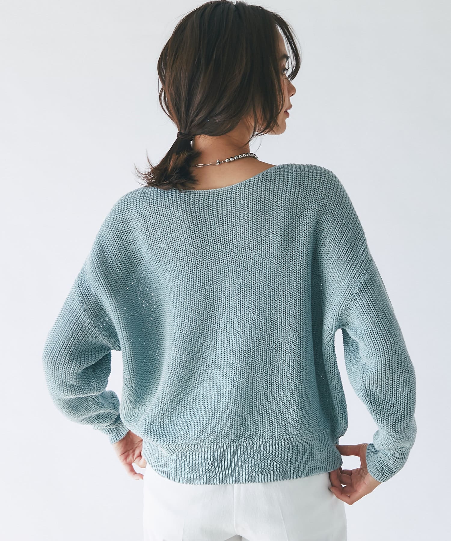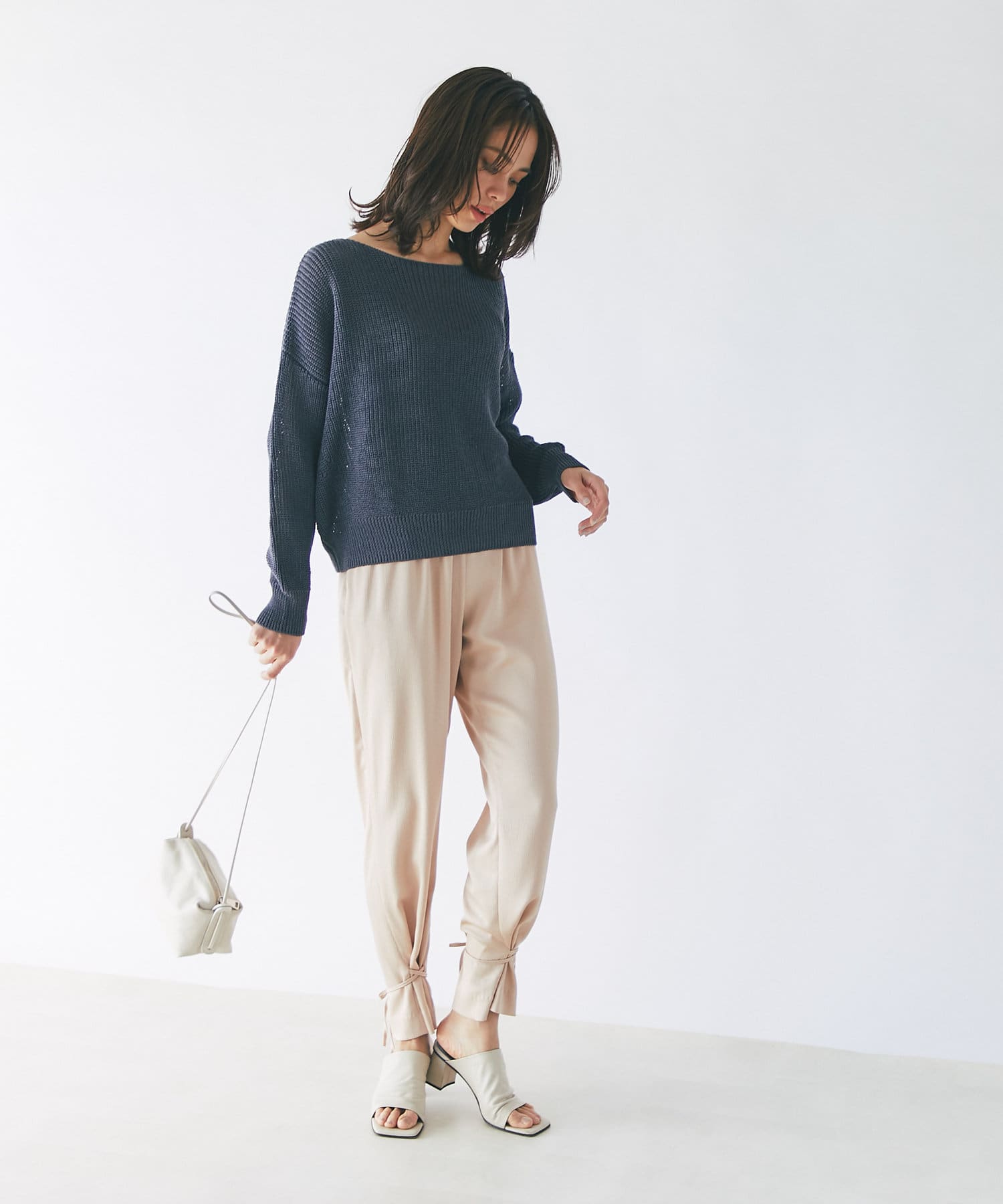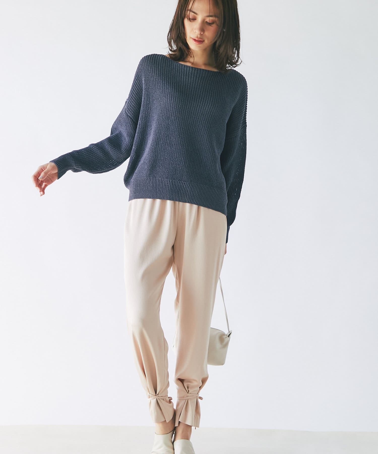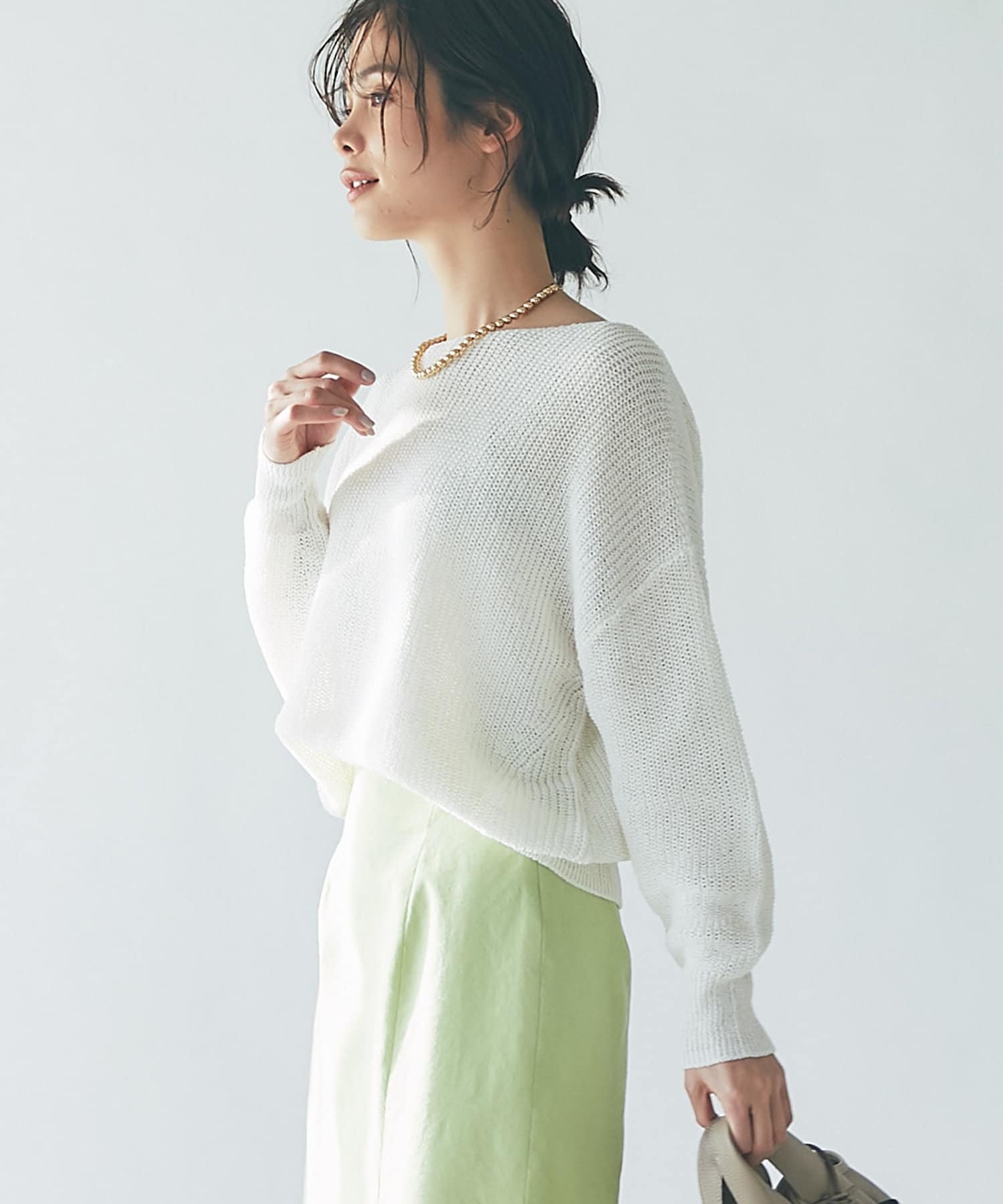 軽やかでとろんとした質感が着やすいストローヤーンのニット。