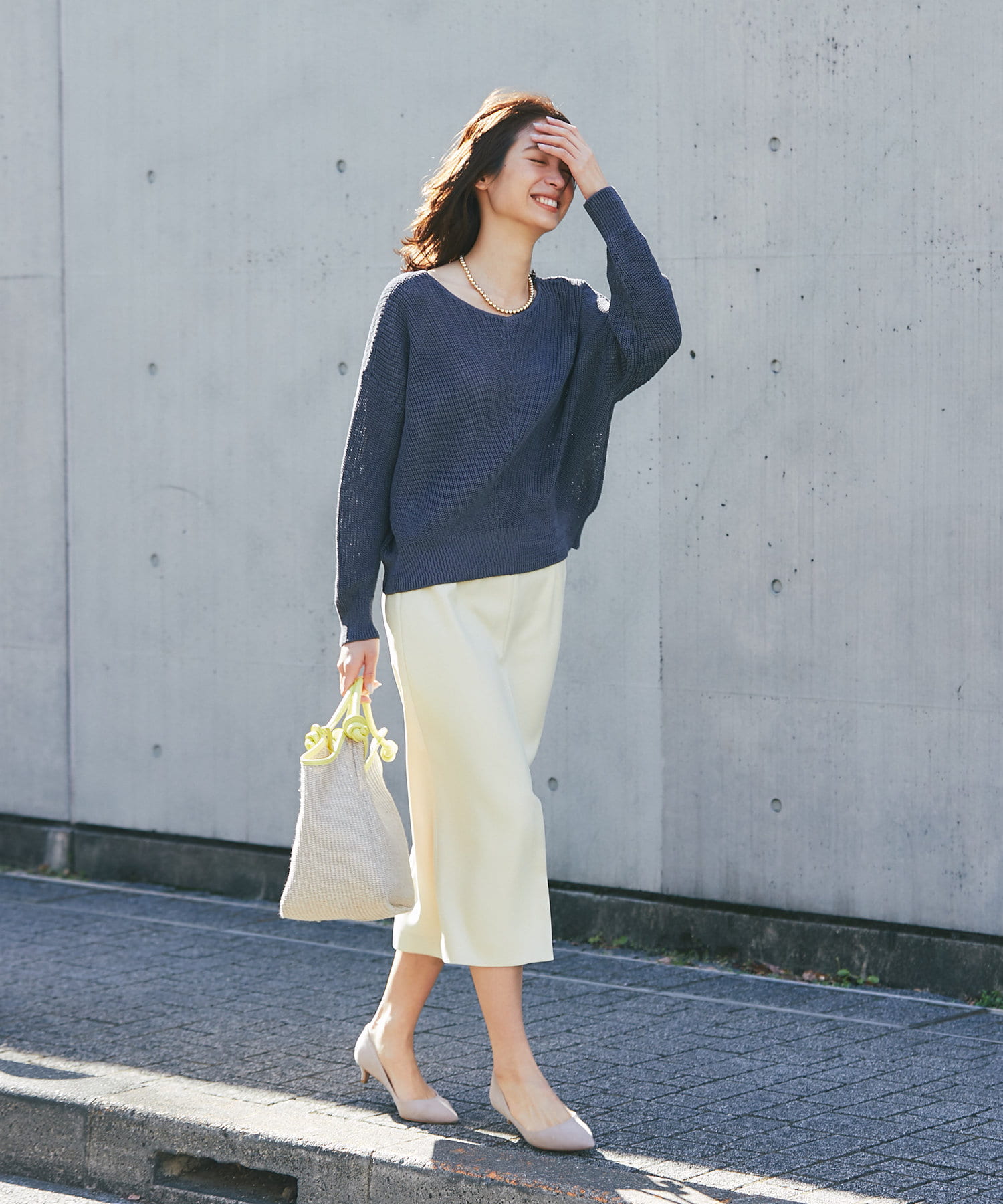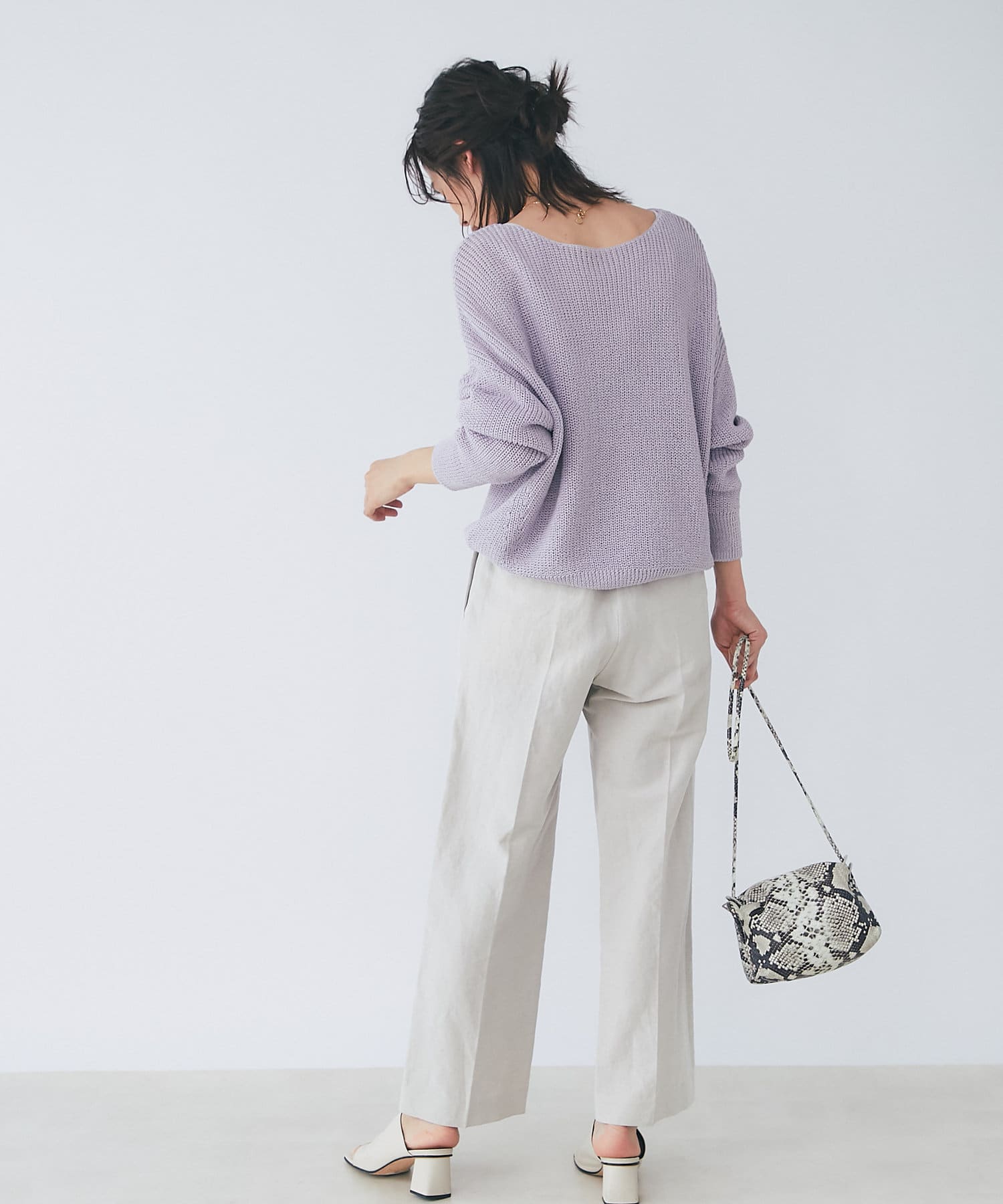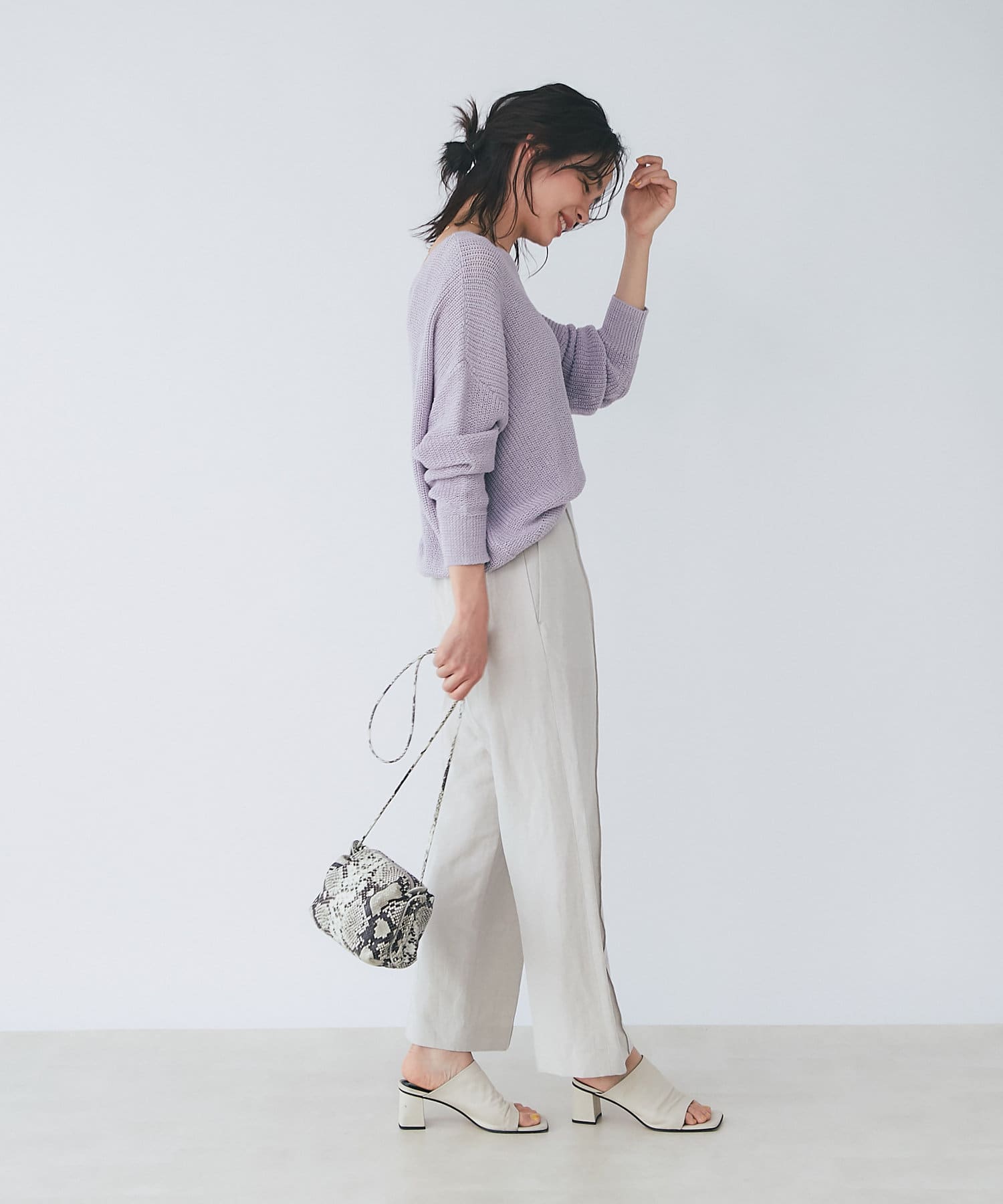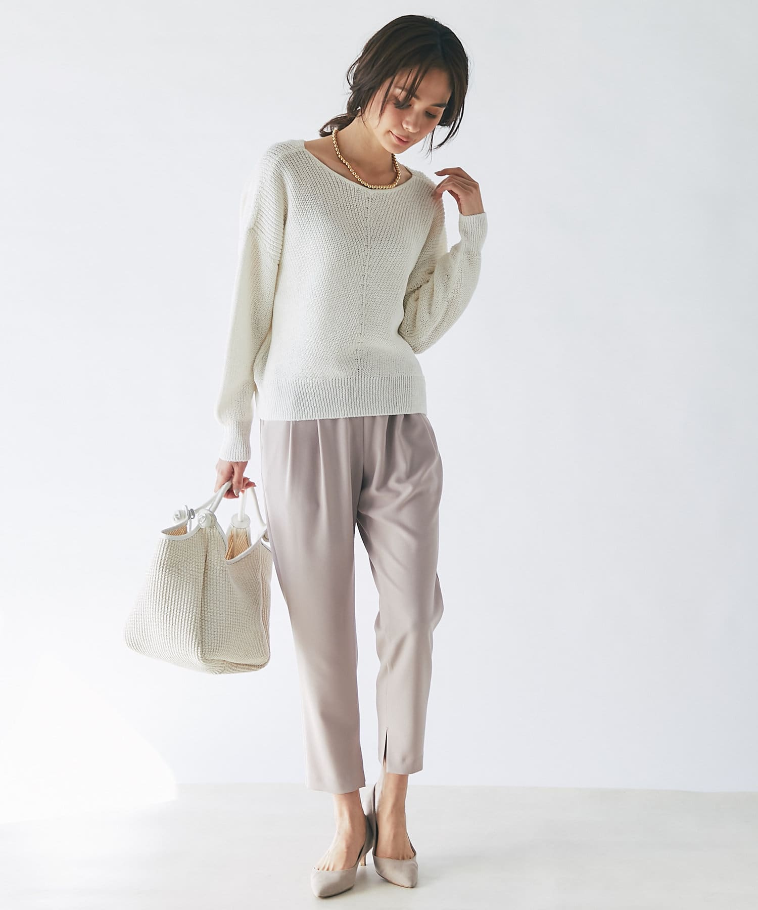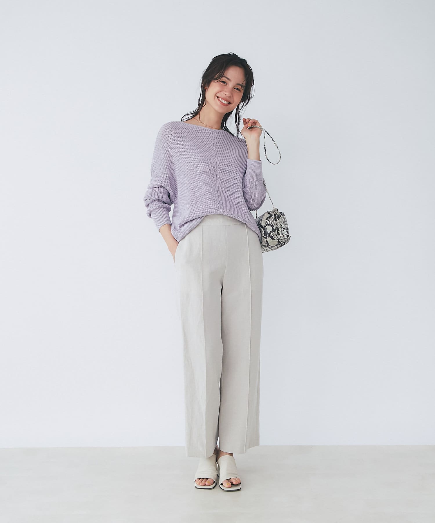 軽やかでとろんとした質感が着やすいストローヤーンのニット。