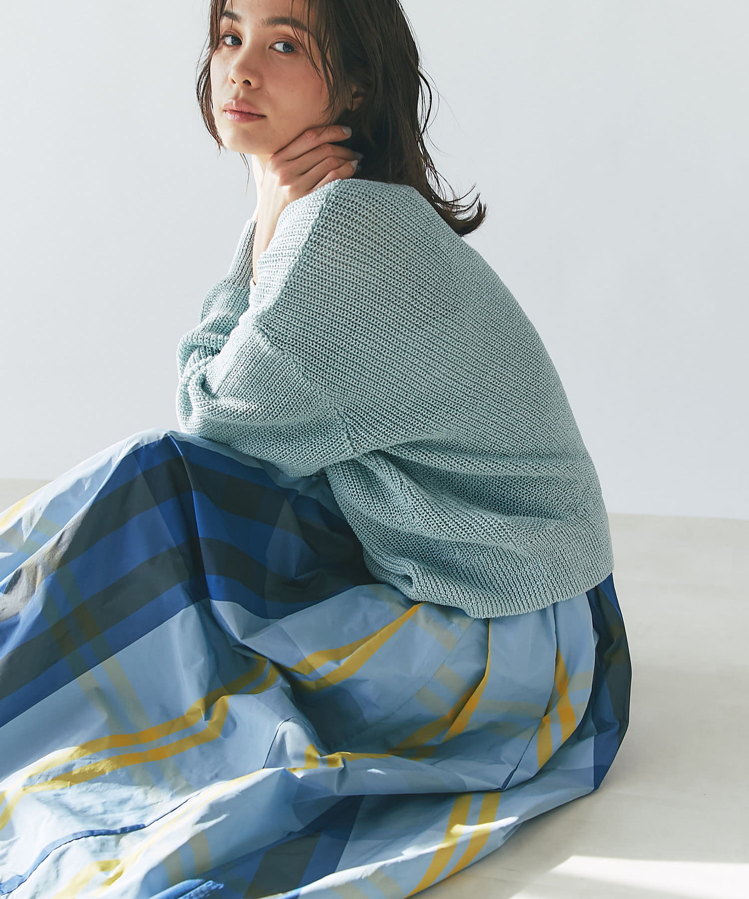 やや短めの丈なので、ボリュームのあるパンツやスカートとも相性抜群でおすすめです。