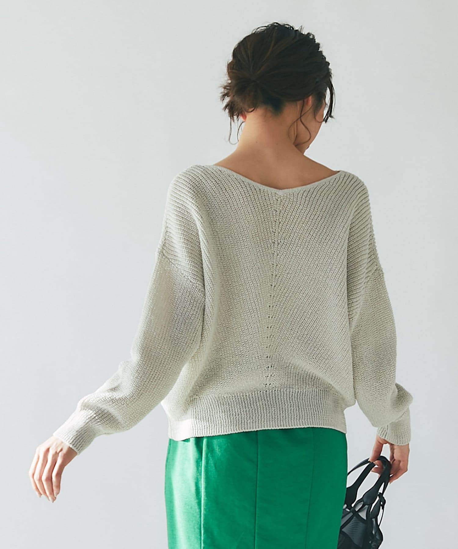 浅めのボートネックとVネックでをその日の気分でお楽しみ頂け、デコルテラインがきれいに見えるのも嬉しいポイントです。
