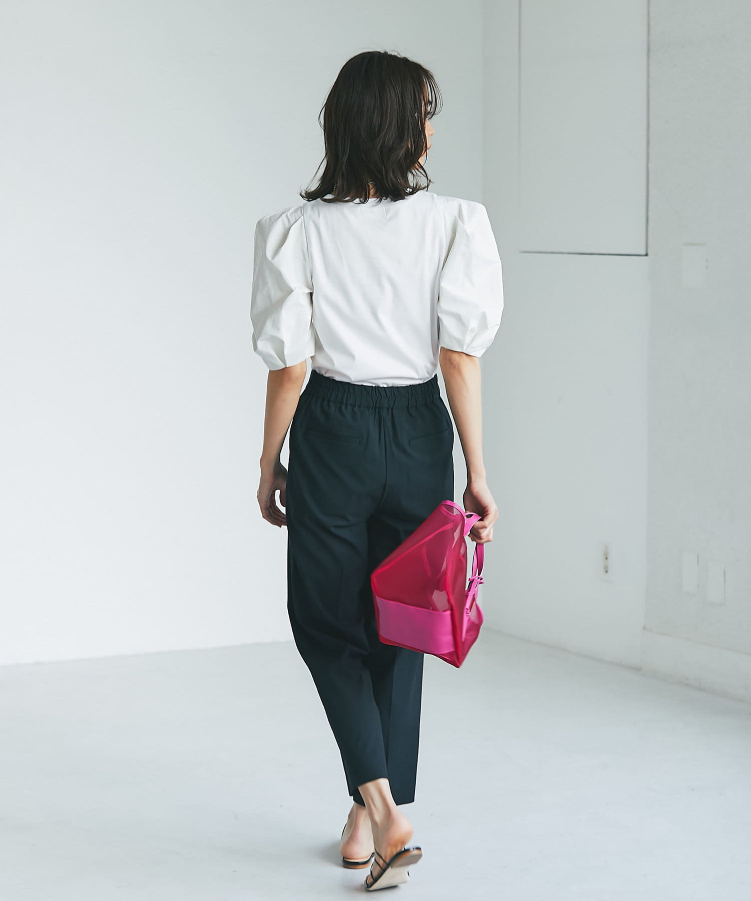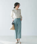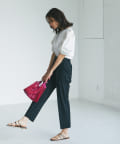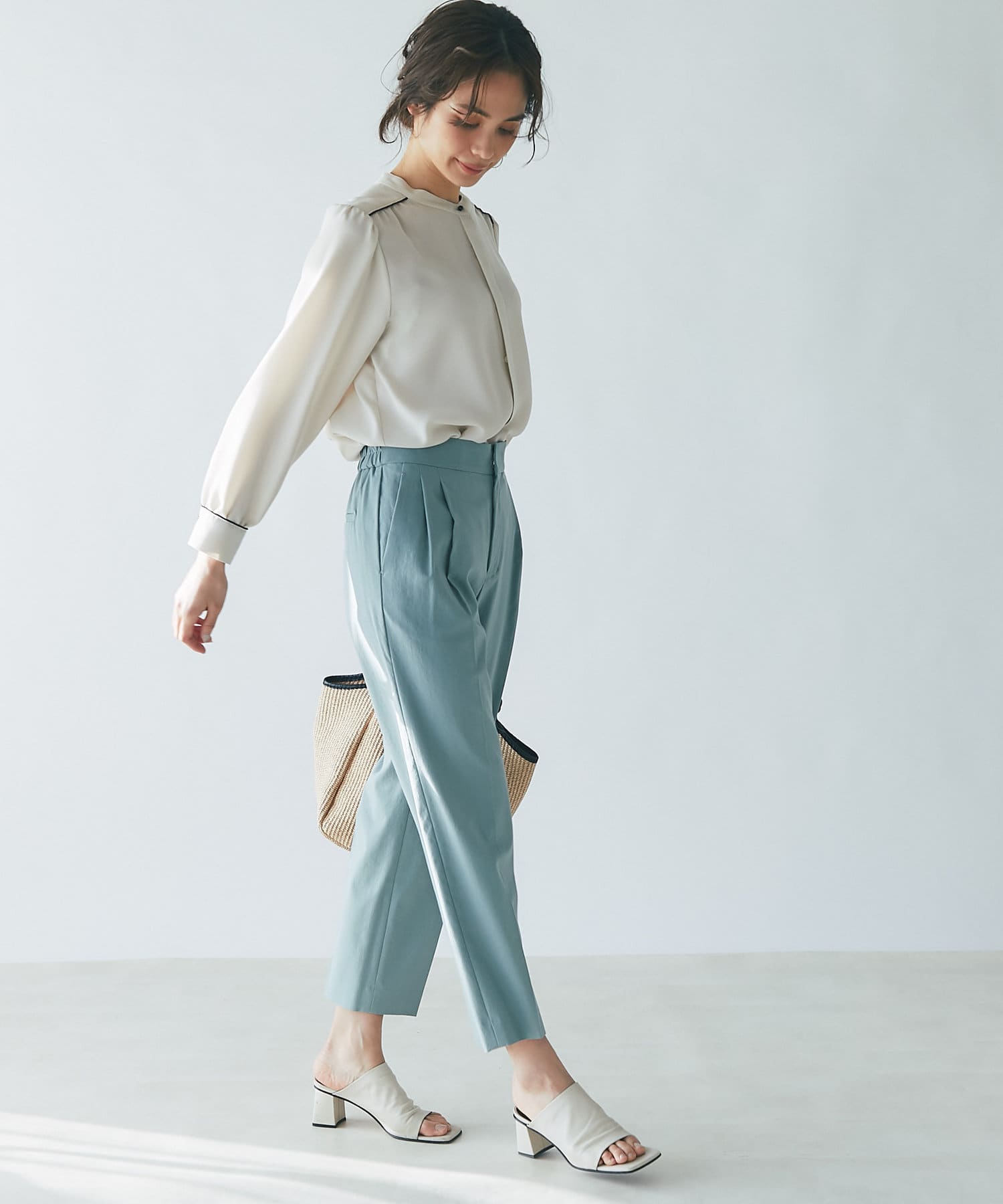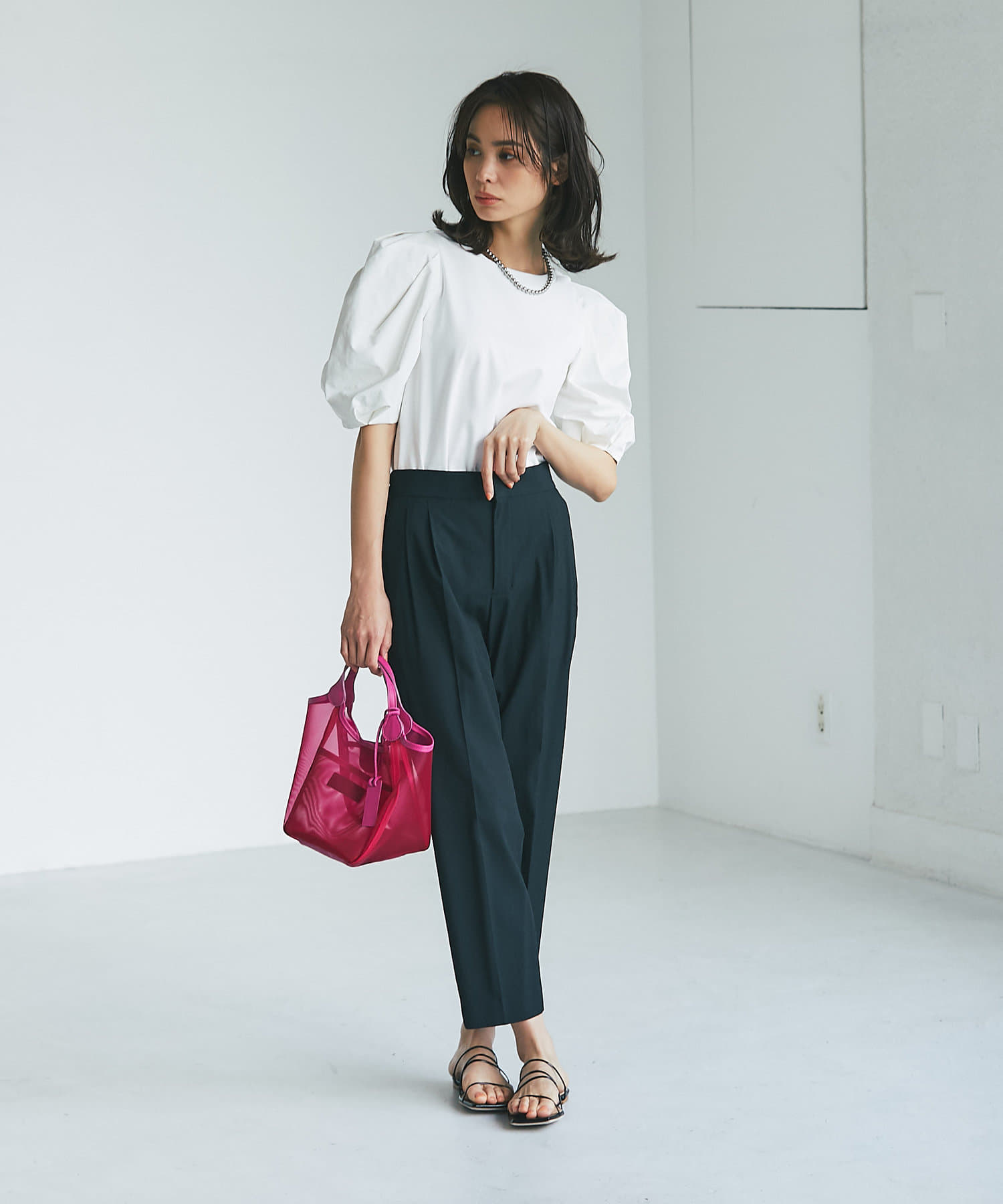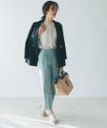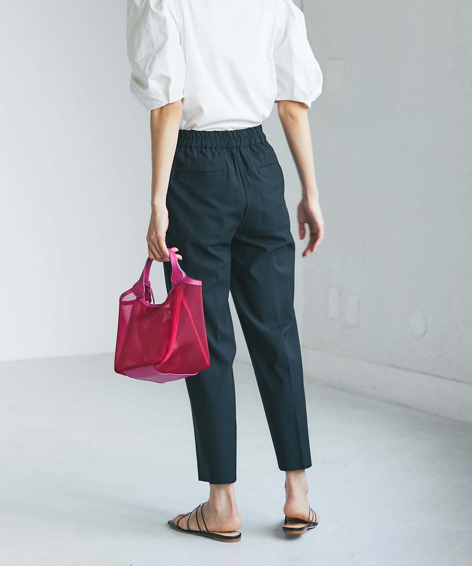 またウエストにはタックが入っており、ヒップまわりはゆったりとした穿き心地ながら、脚首が見える丈と裾に向かって細くなるシルエットなので華奢見え効果にも期待できます。