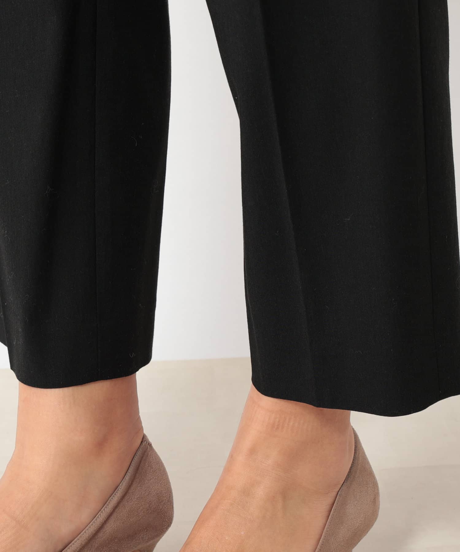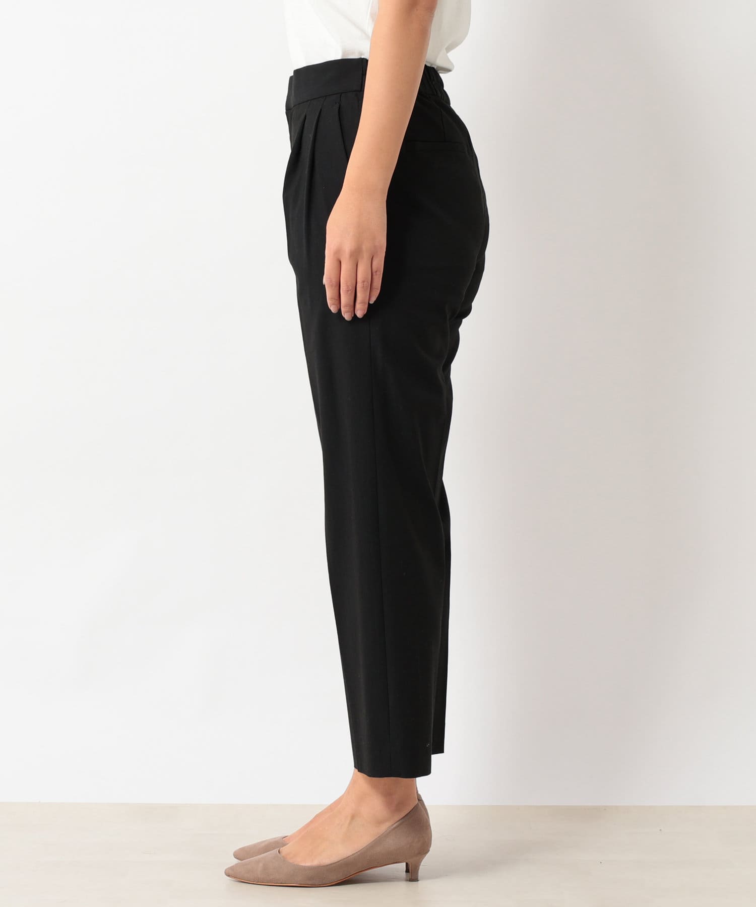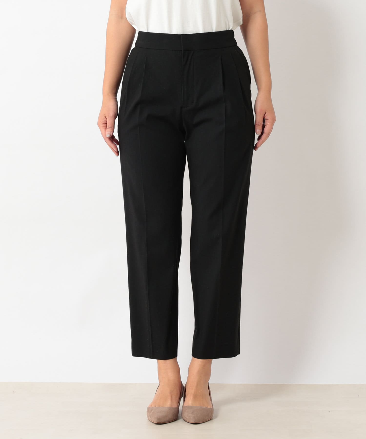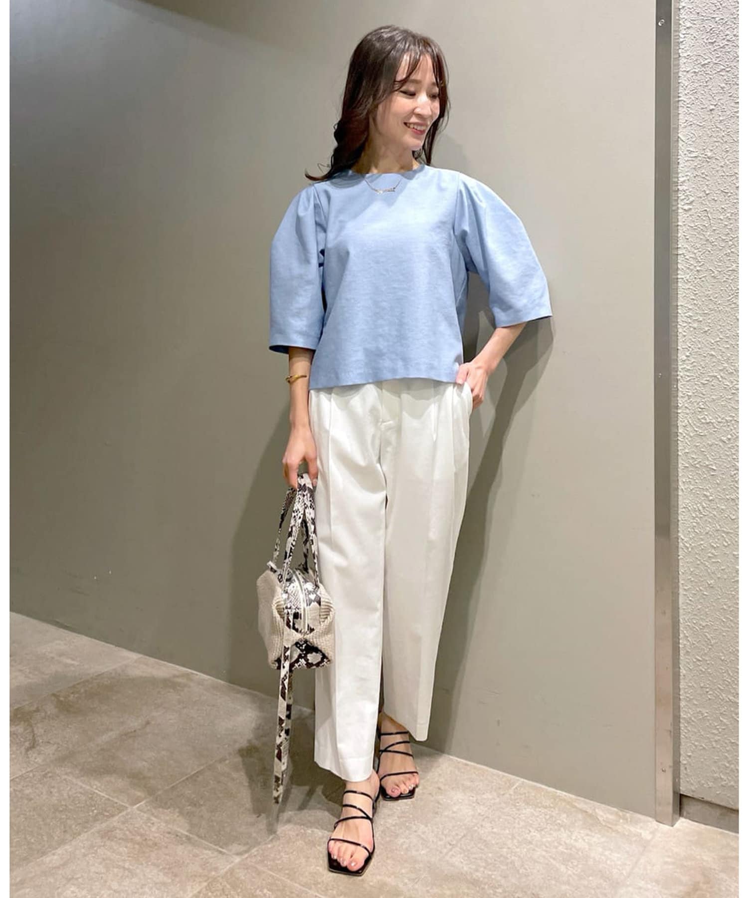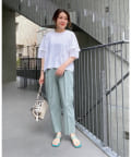 またウエストにはタックが入っており、ヒップまわりはゆったりとした穿き心地ながら、脚首が見える丈と裾に向かって細くなるシルエットなので華奢見え効果にも期待できます。