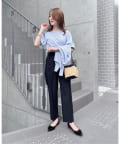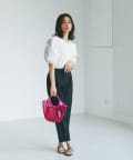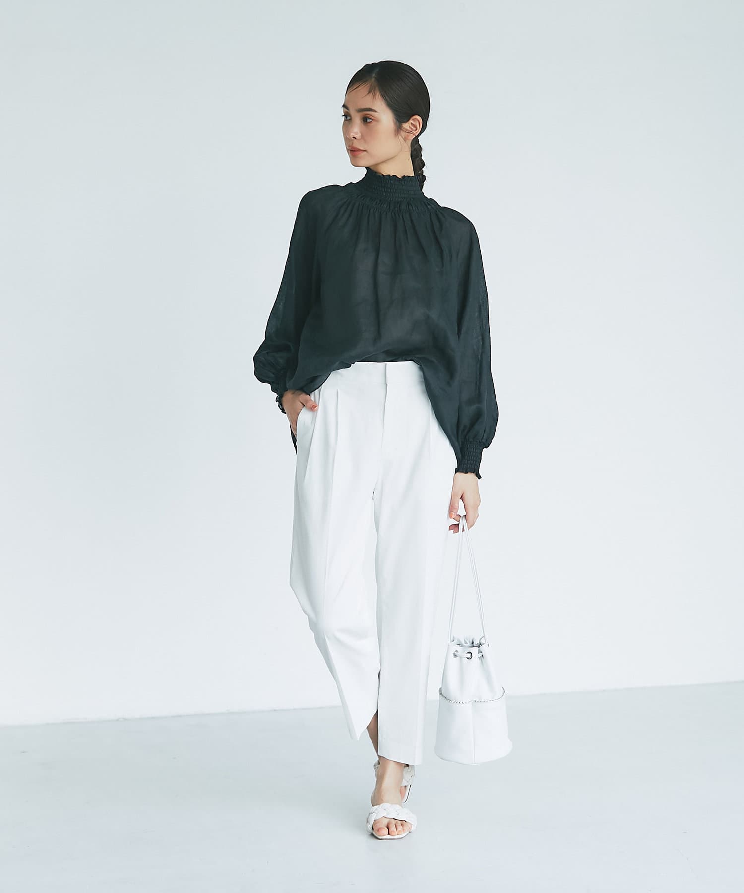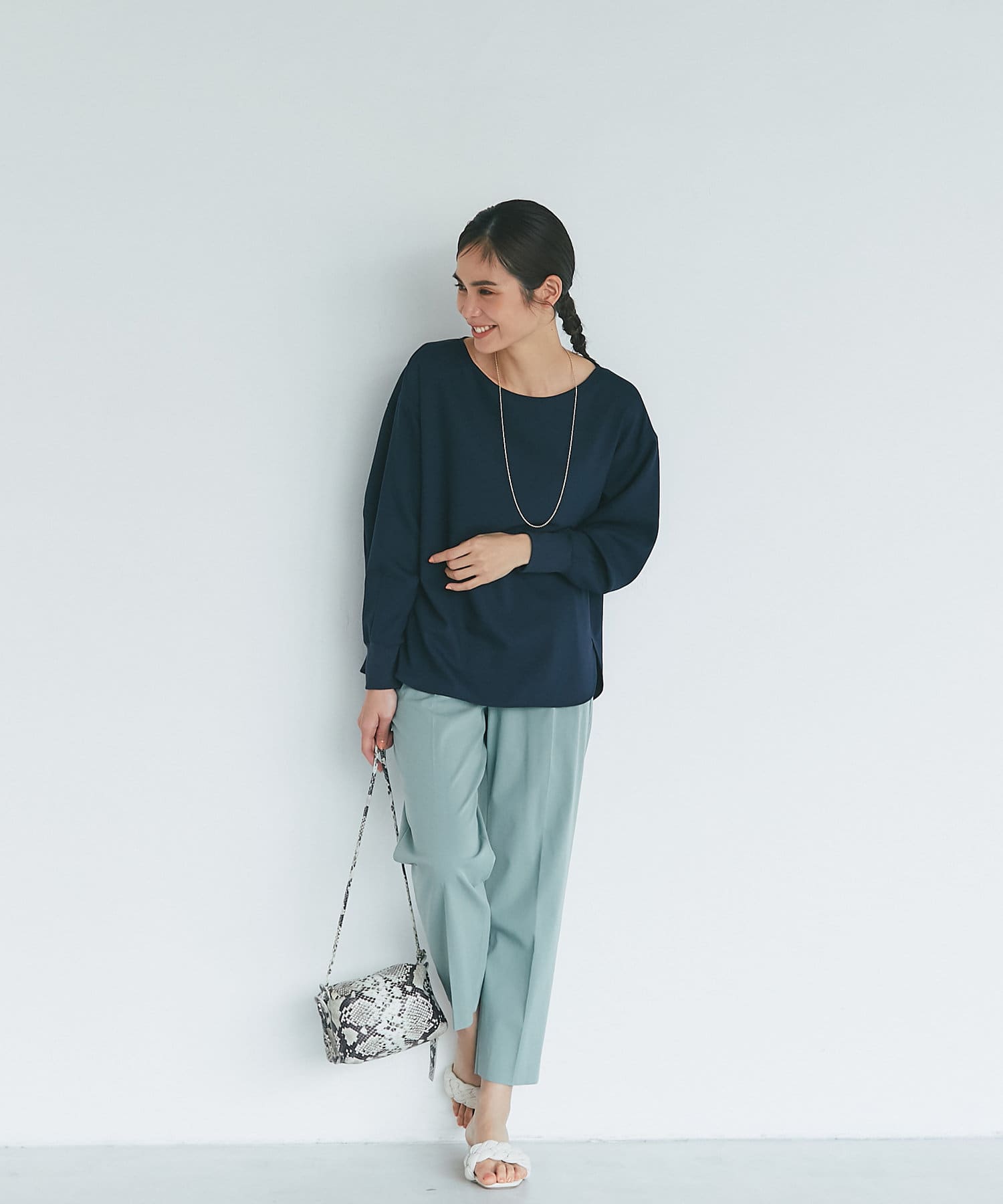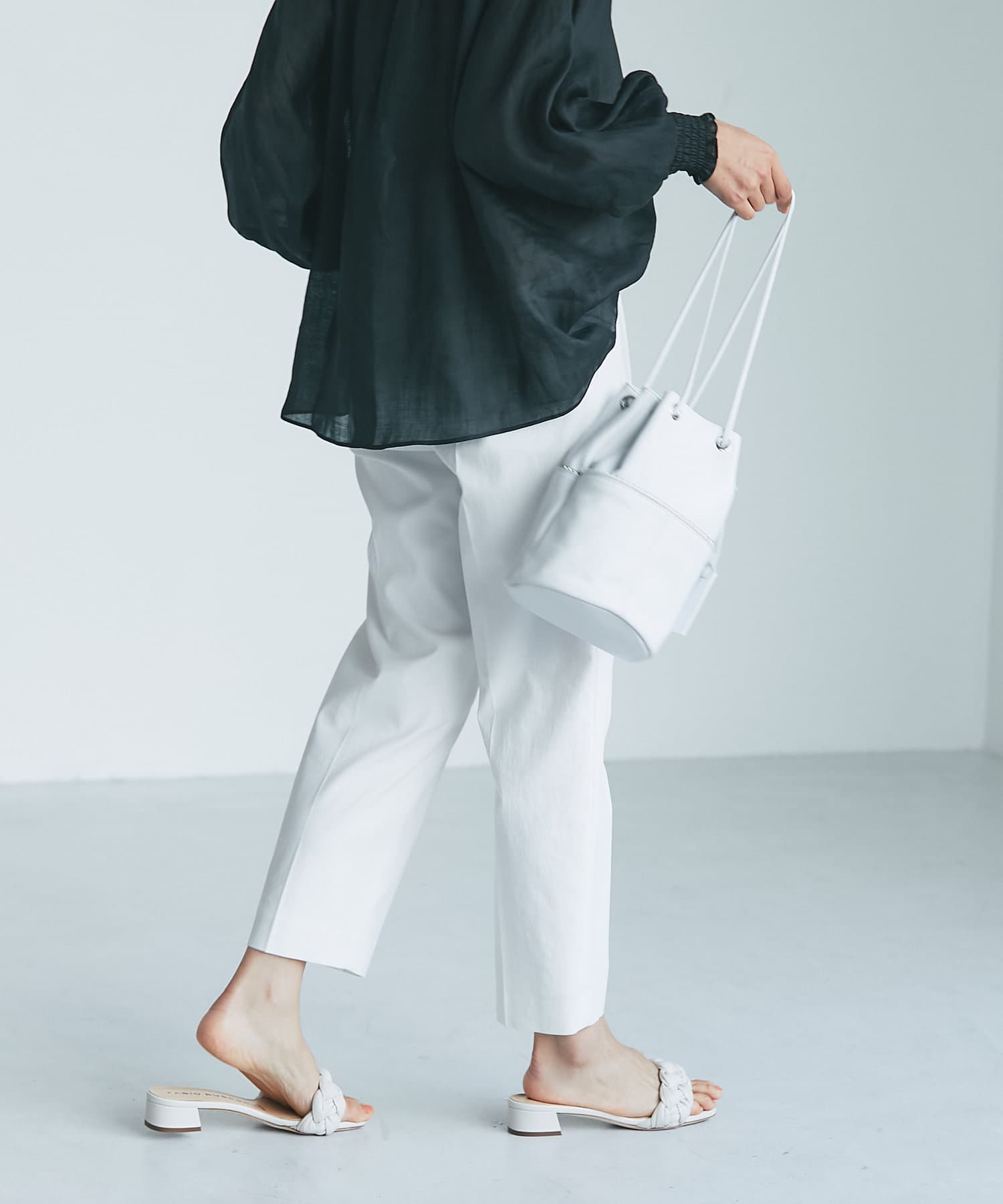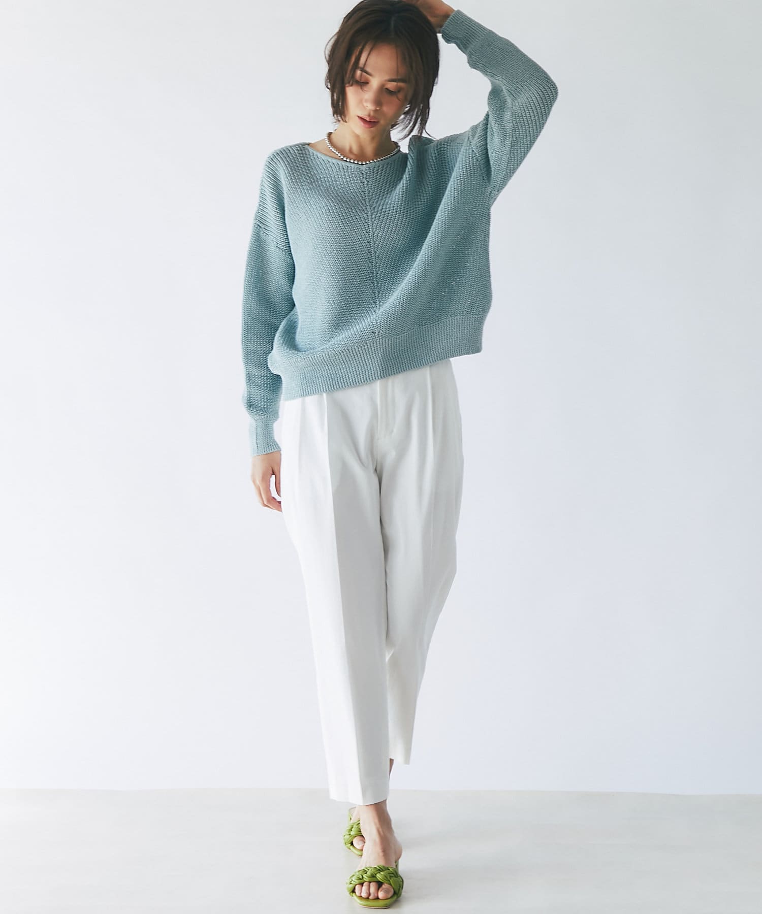 またウエストにはタックが入っており、ヒップまわりはゆったりとした穿き心地ながら、脚首が見える丈と裾に向かって細くなるシルエットなので華奢見え効果にも期待できます。