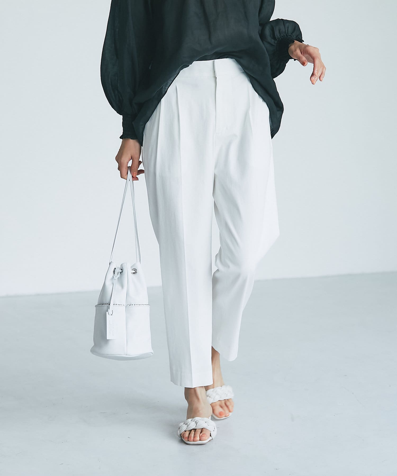 ラミー混で軽やかな快適素材を使用したテーパードパンツ