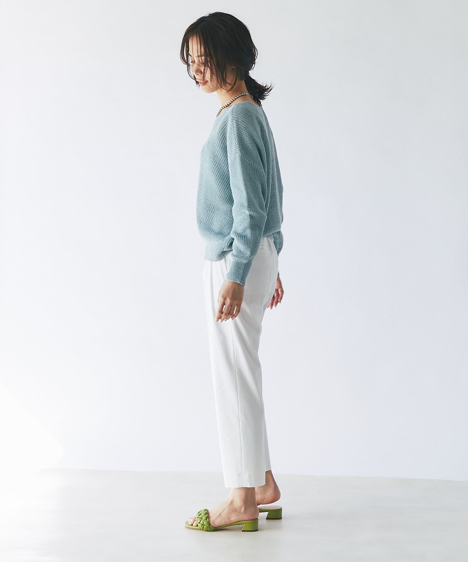 ラミー混の素材なので、暑い季節も快適に穿ける軽やかな素材の一枚。