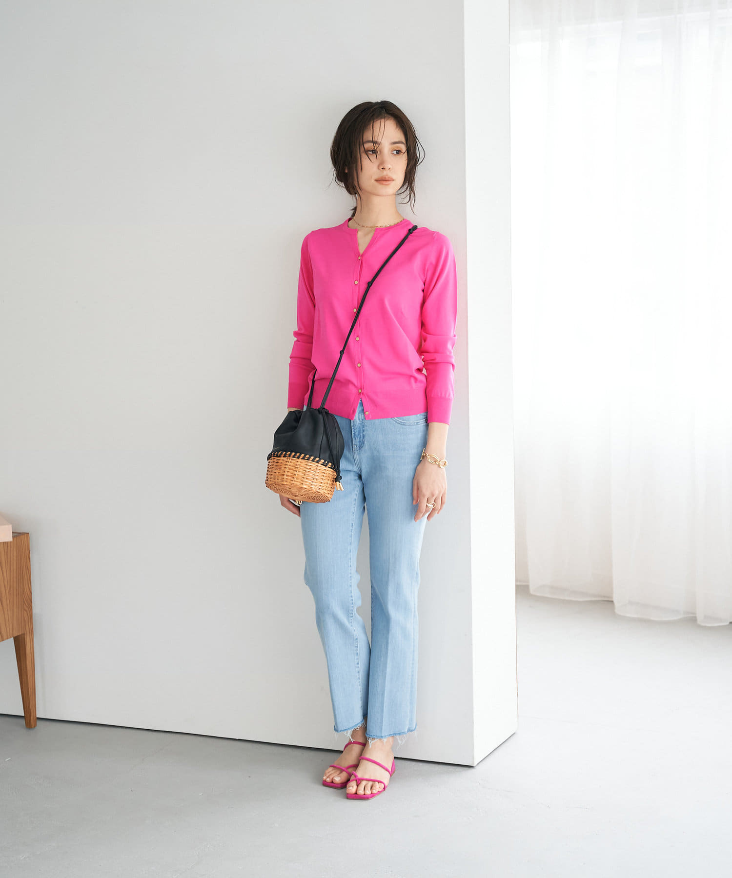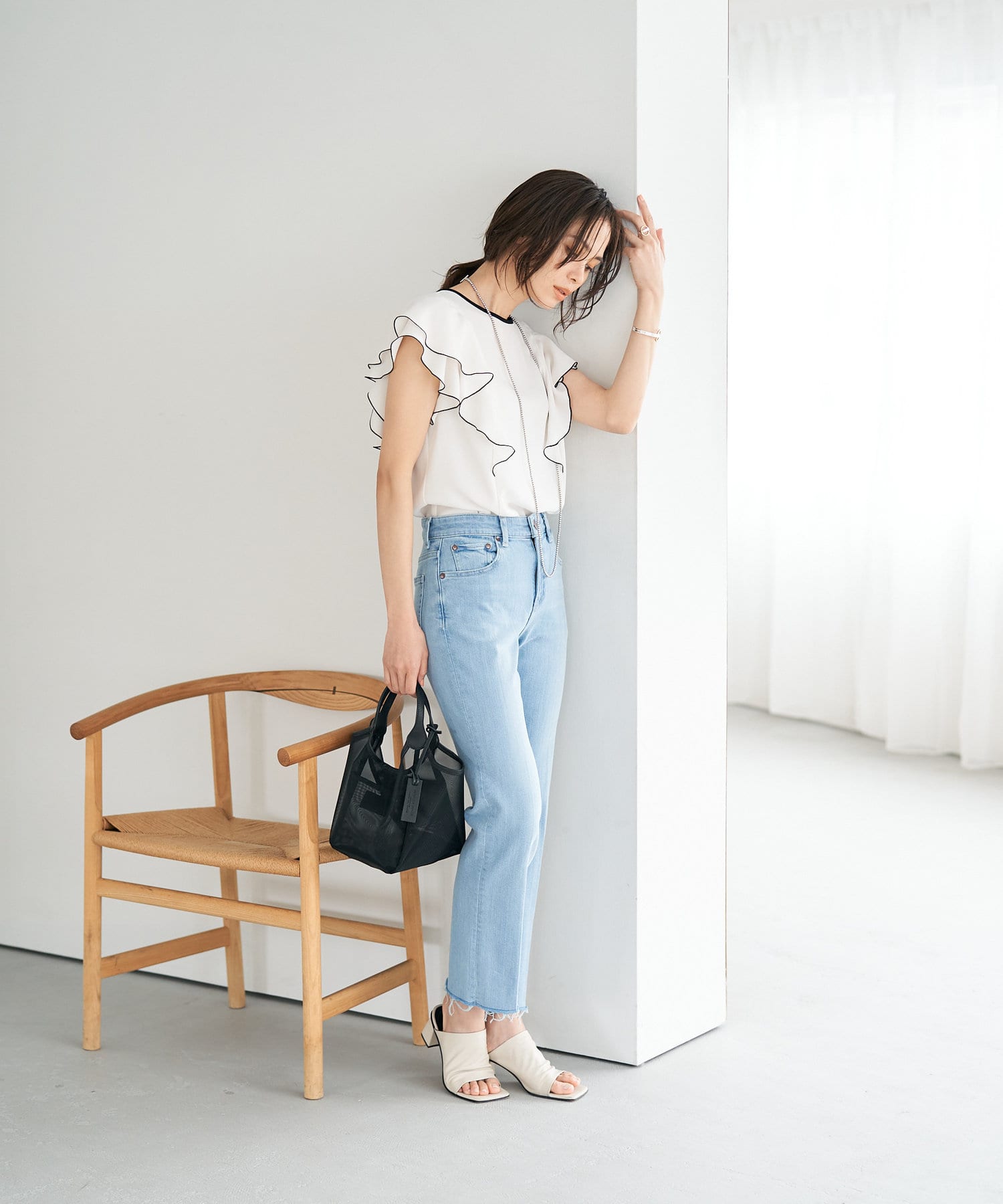 RED CARDの程よいワイドデニムでカジュアルさをプラス。
