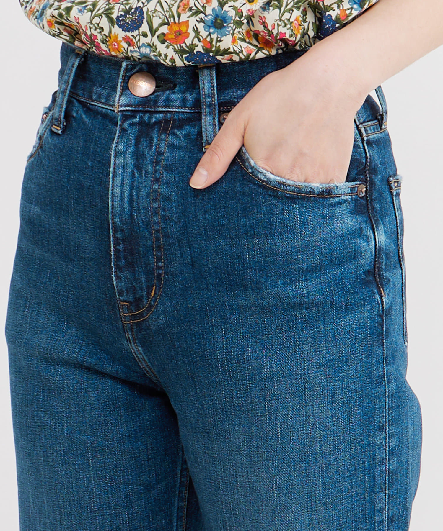 ややフレアなシルエットでトレンド感あふれるデニムに仕上がりました。