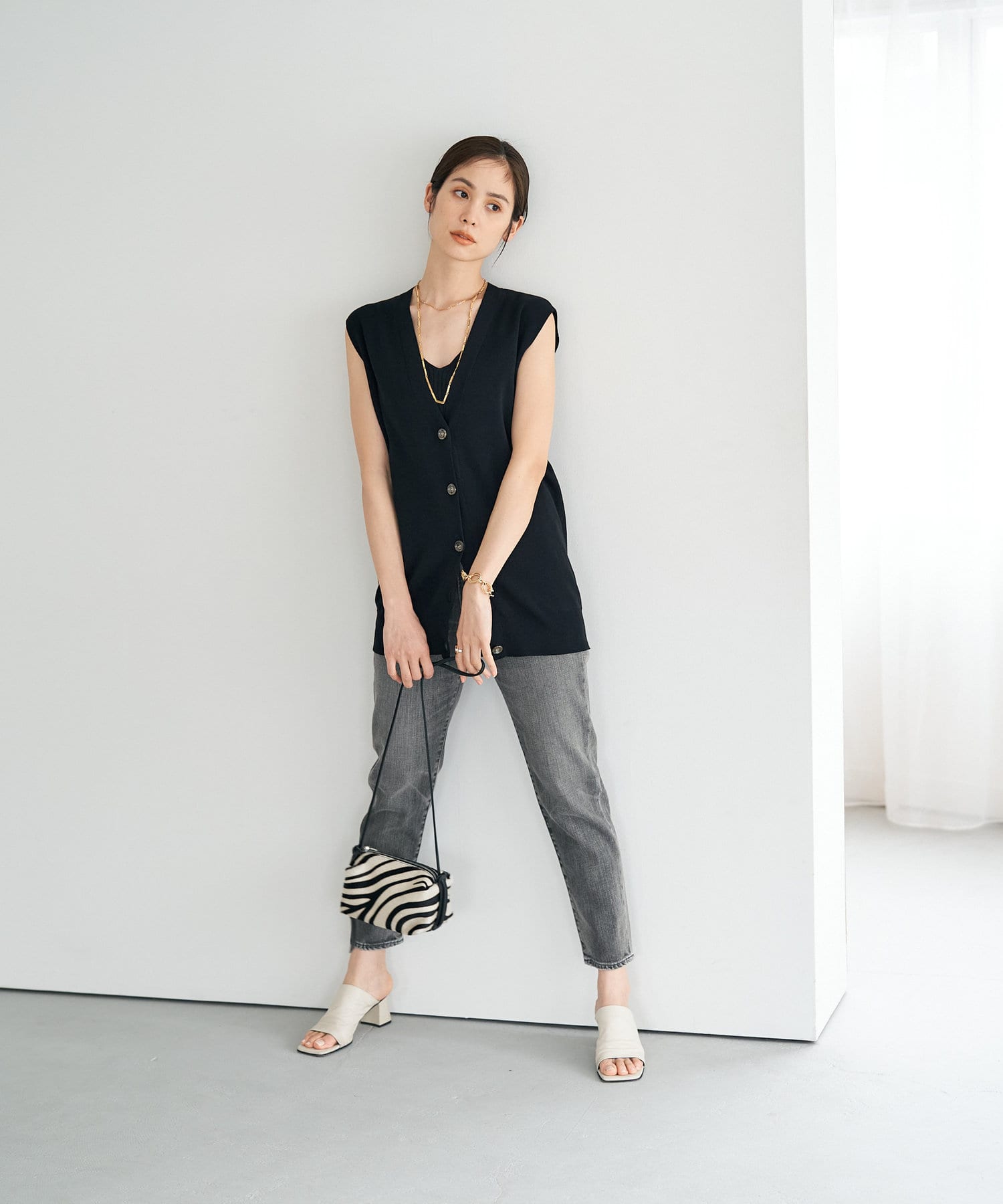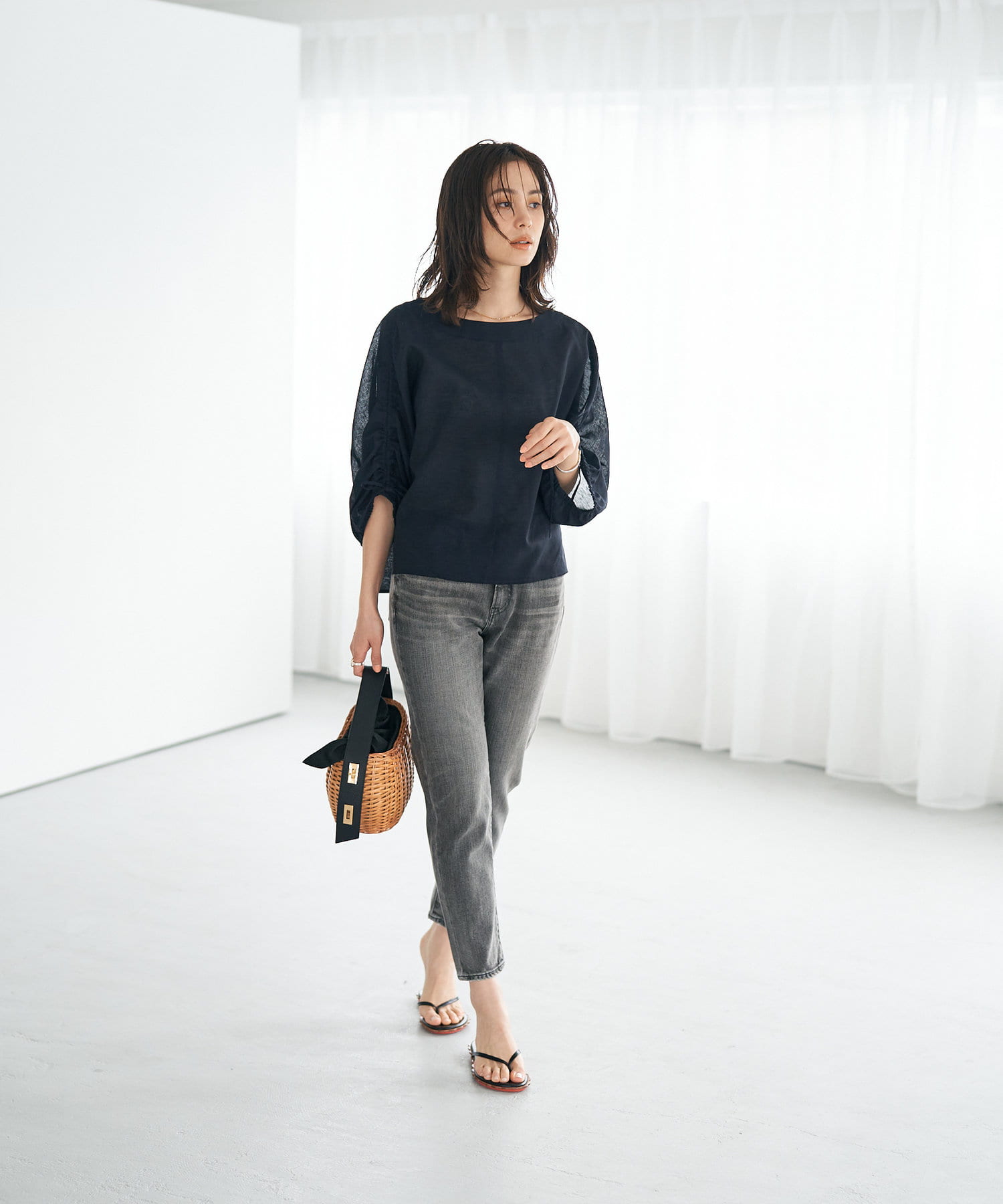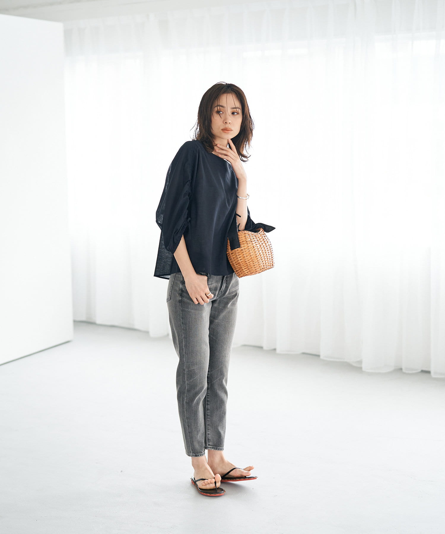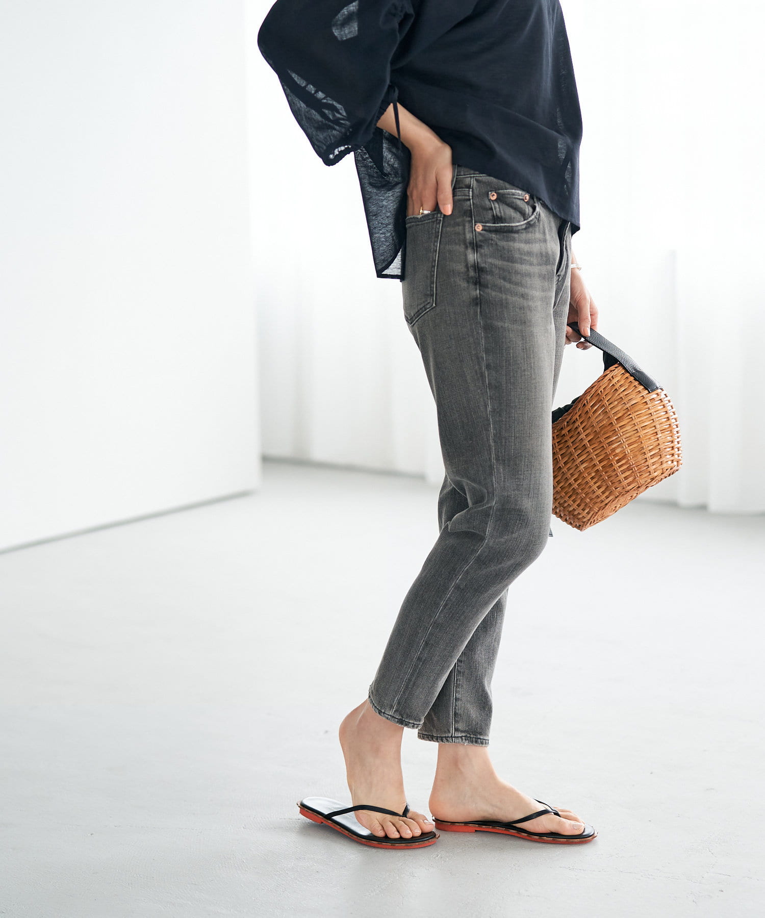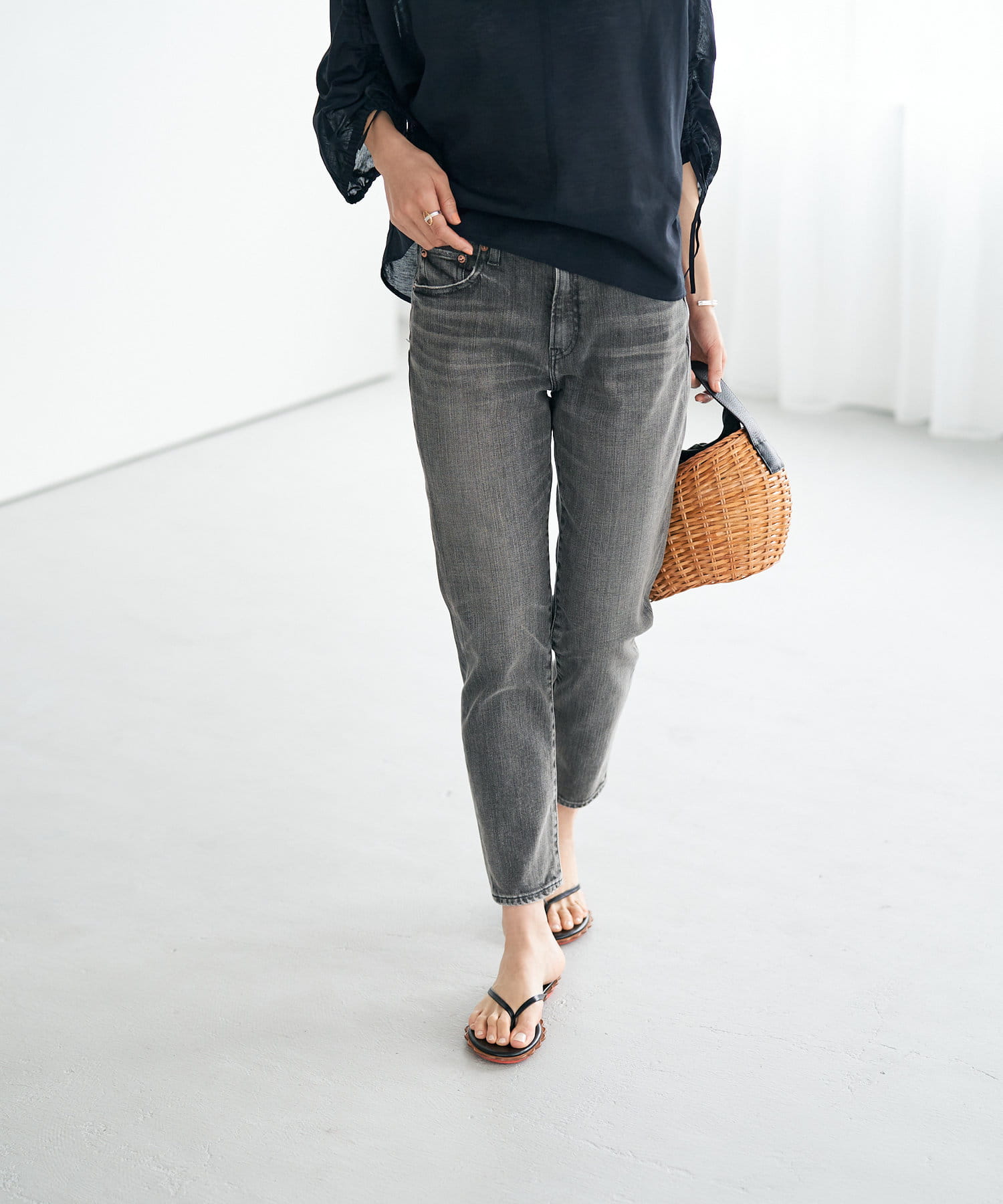程良いアンクル丈に設定された女性らしいシルエットのデニム。