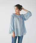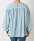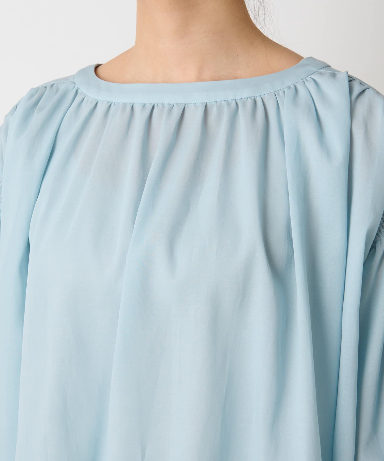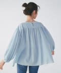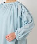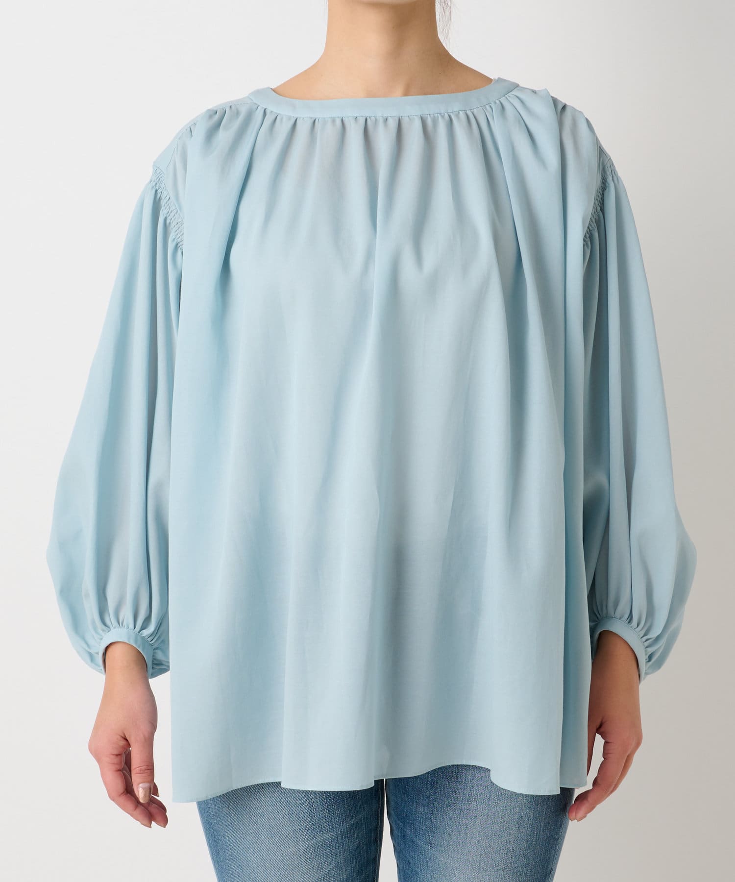 コットンとキュプラを使用した程よい光沢のある生地で仕上げたギャザーブラウス。