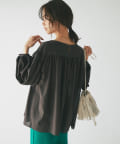 ギャザーがたっぷりと入っているふんわりとしたシルエットが女性らしいチュニックブラウス。