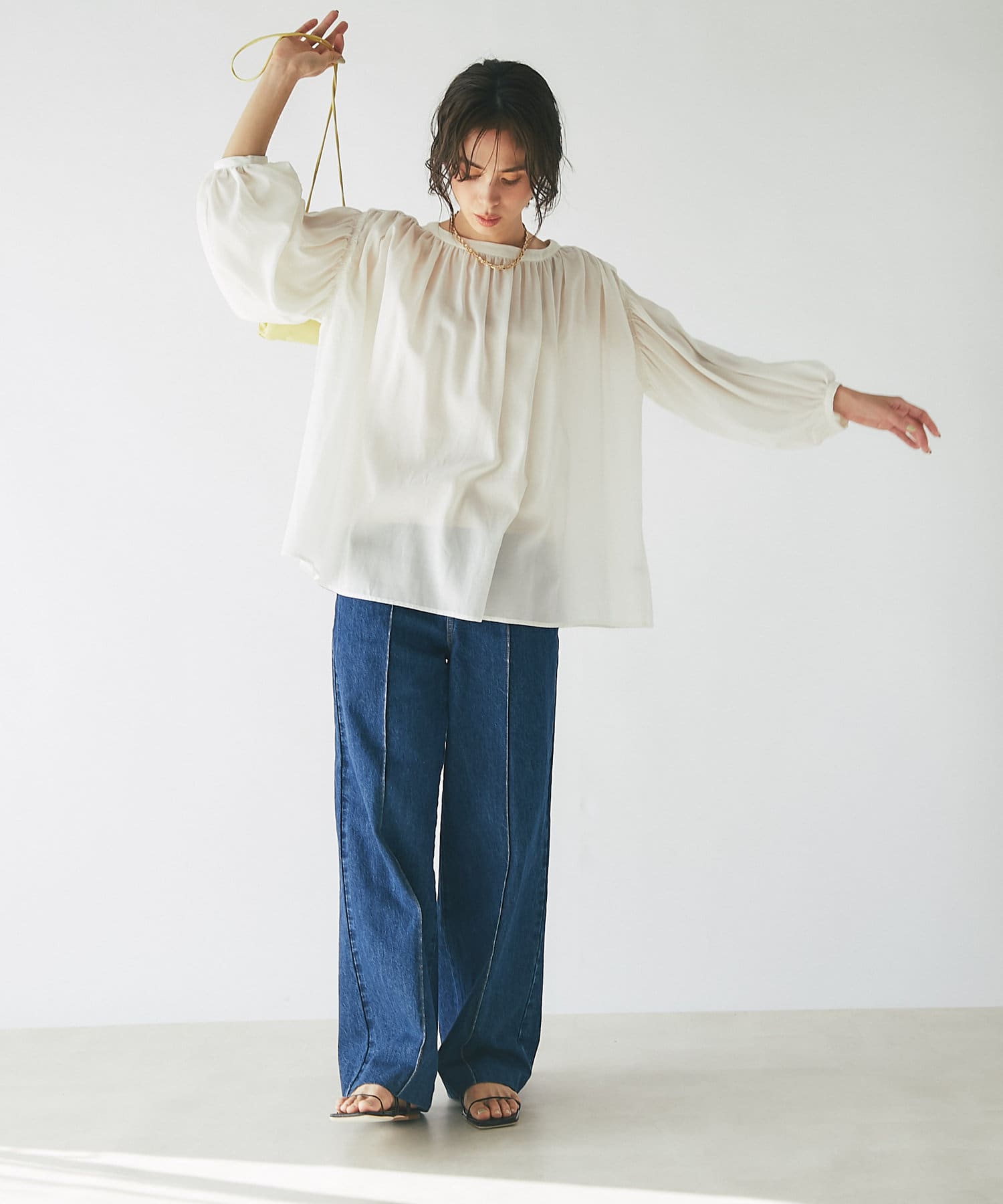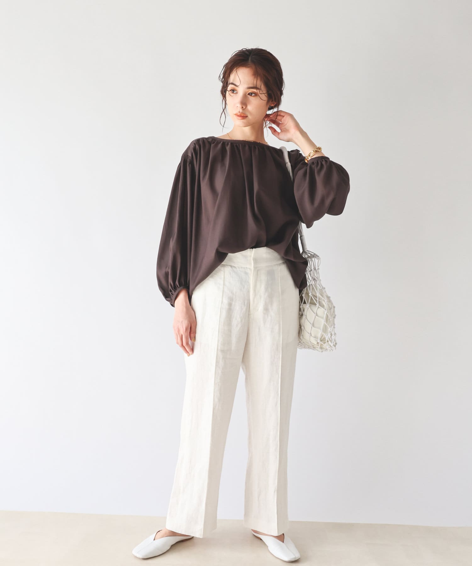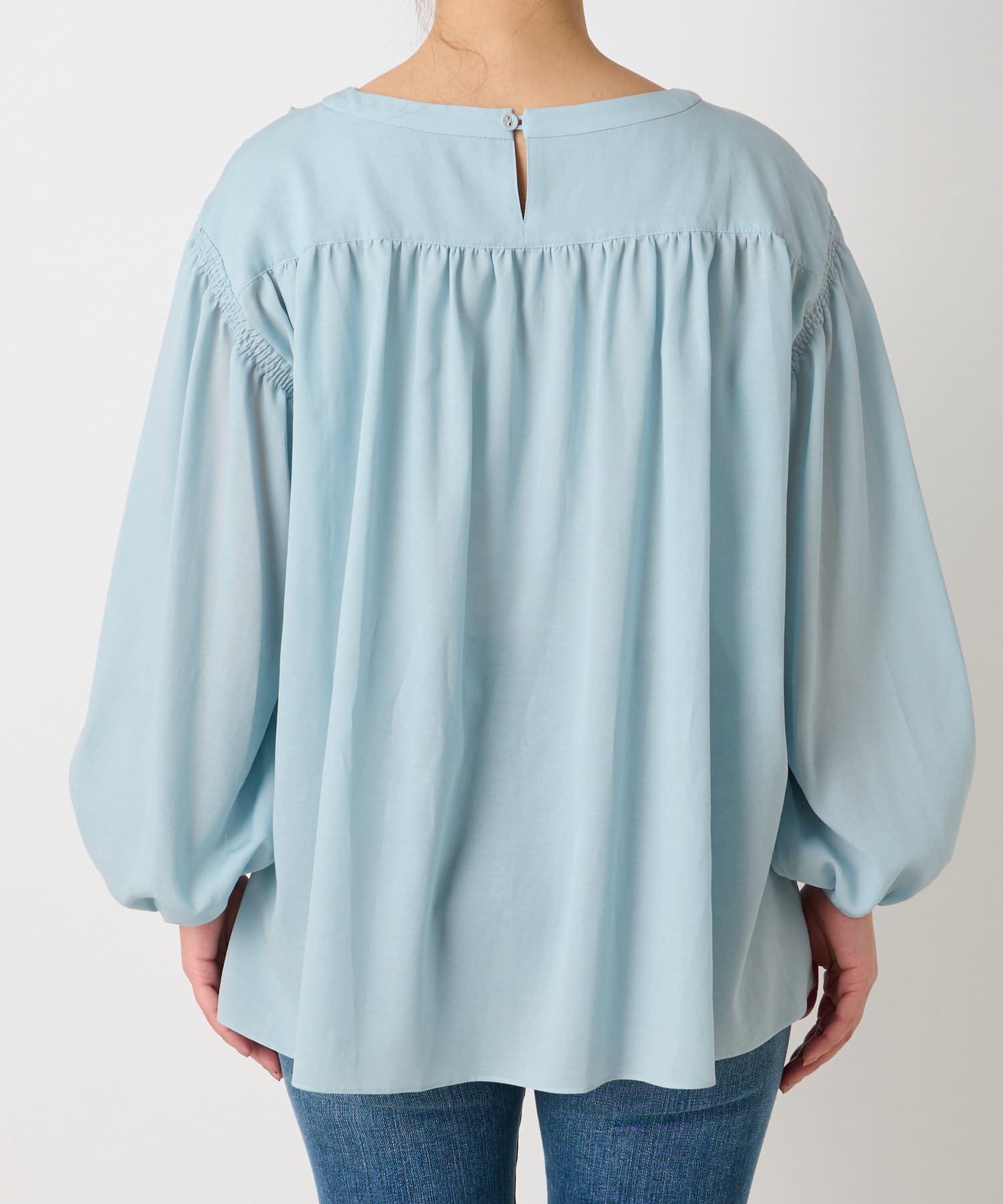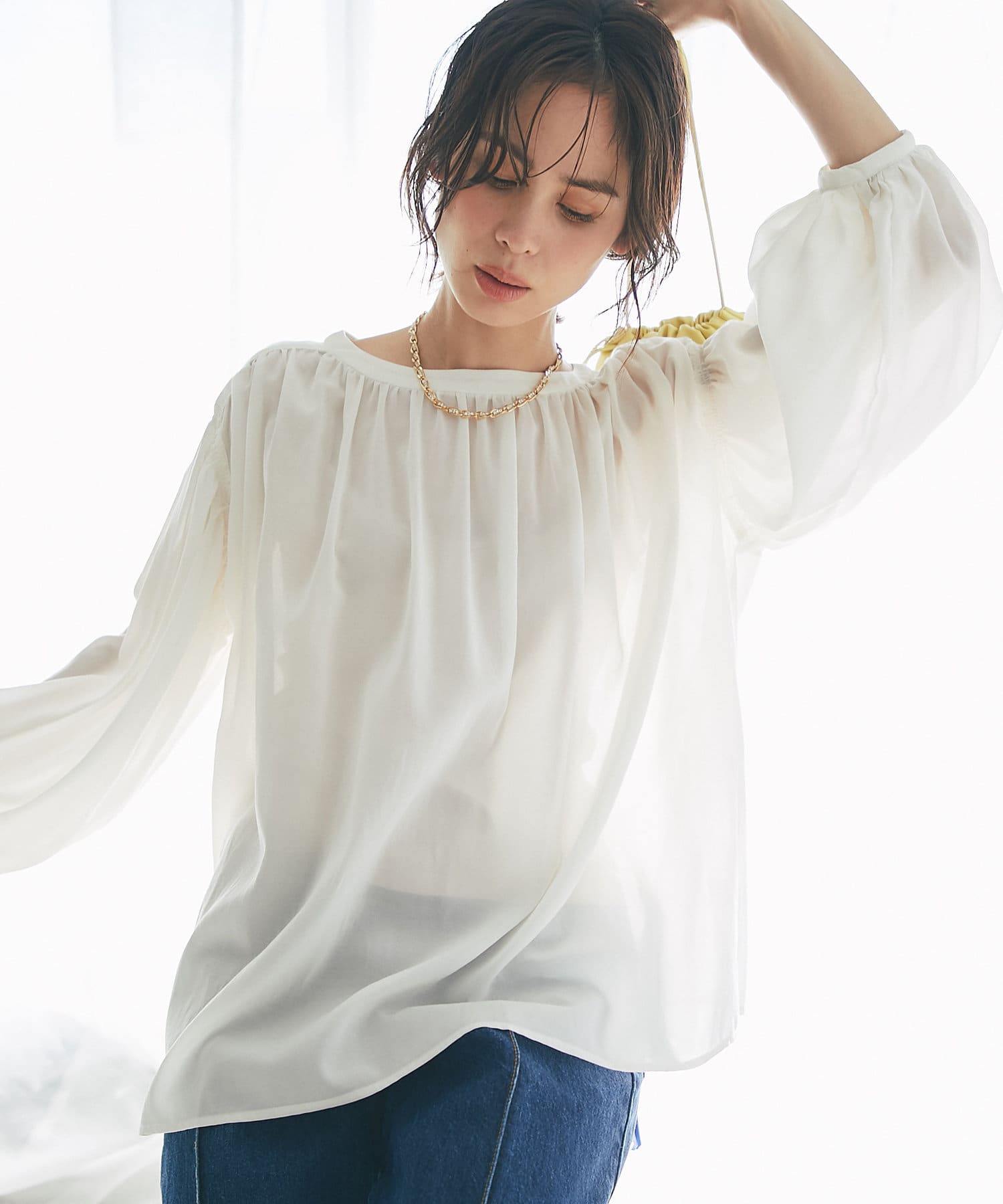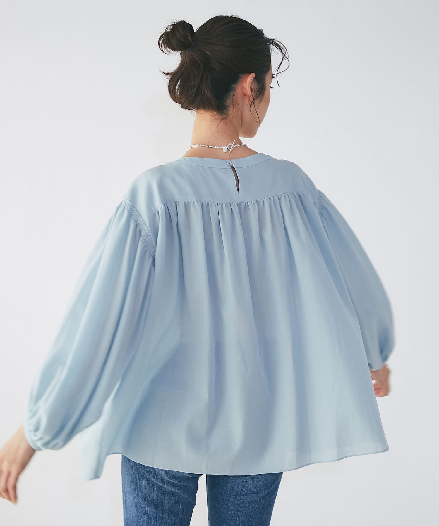 バルーンスリーブとたっぷりと細かく入ったギャザーが華やかなブラウス。