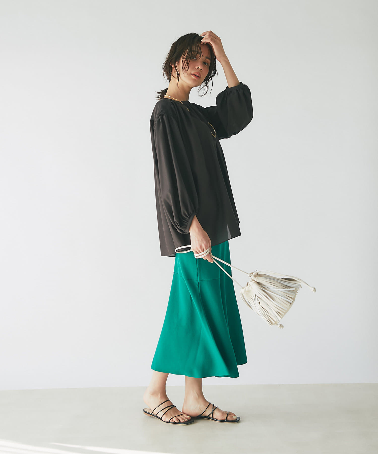 #スタンドカラー #ボリュームスリーブ #バルーンスリーブ #ミドル丈 #キュプラ #サステナブル #シアー