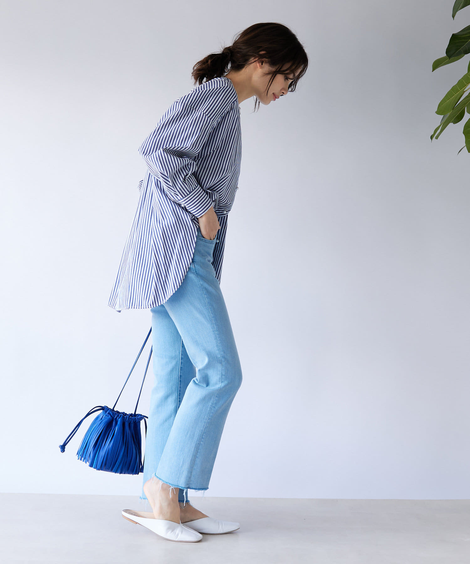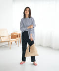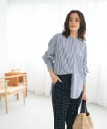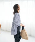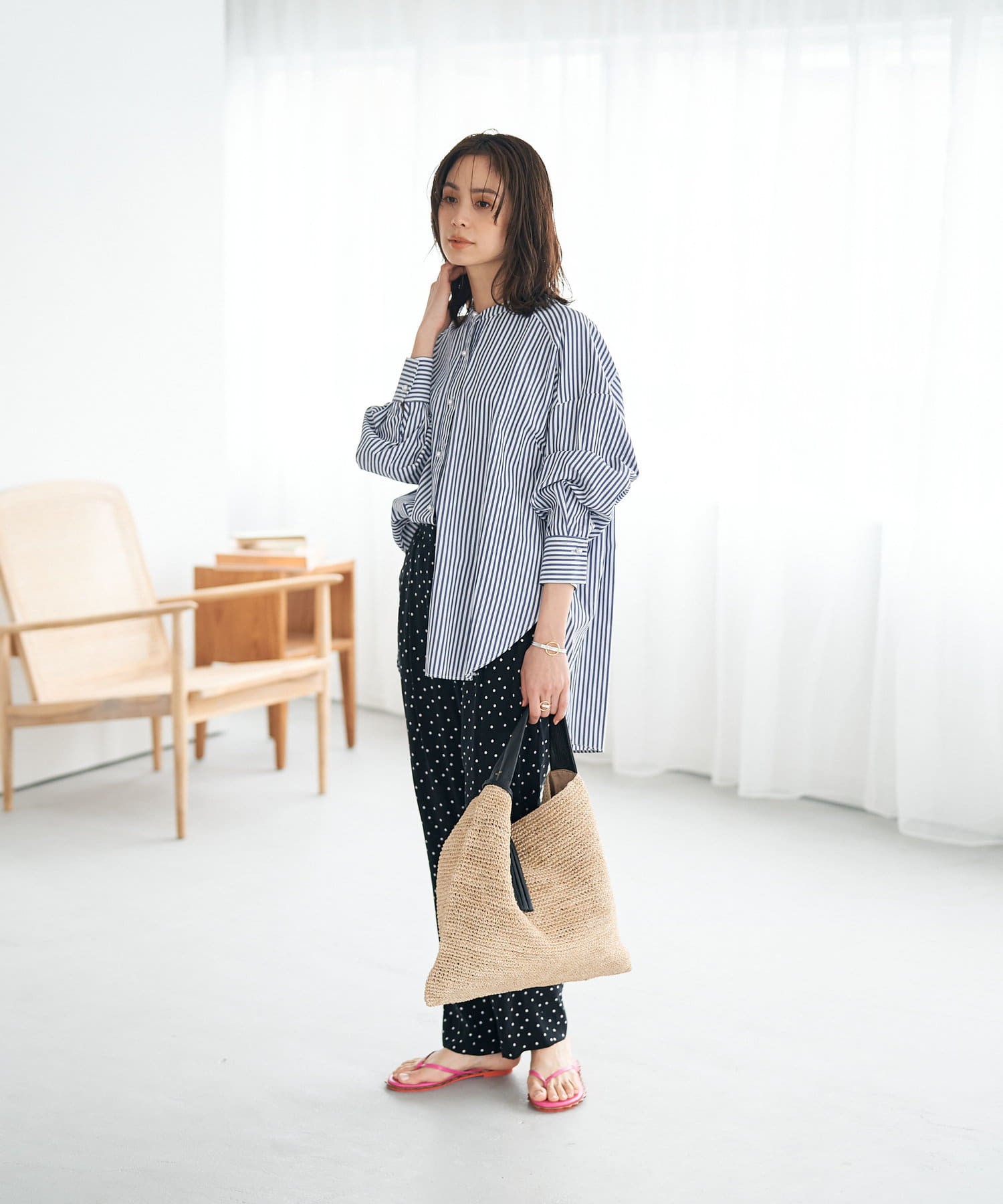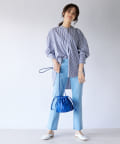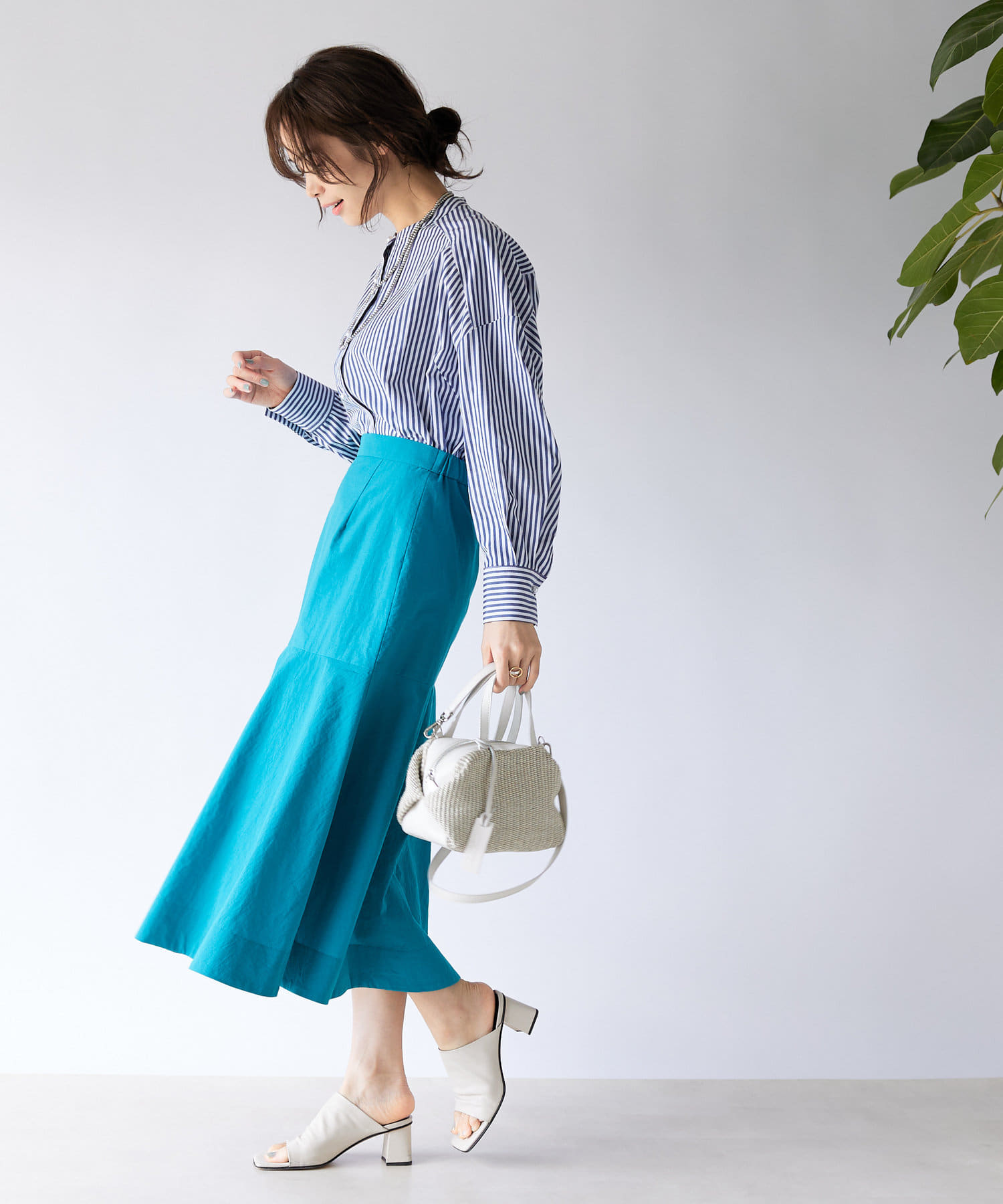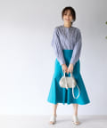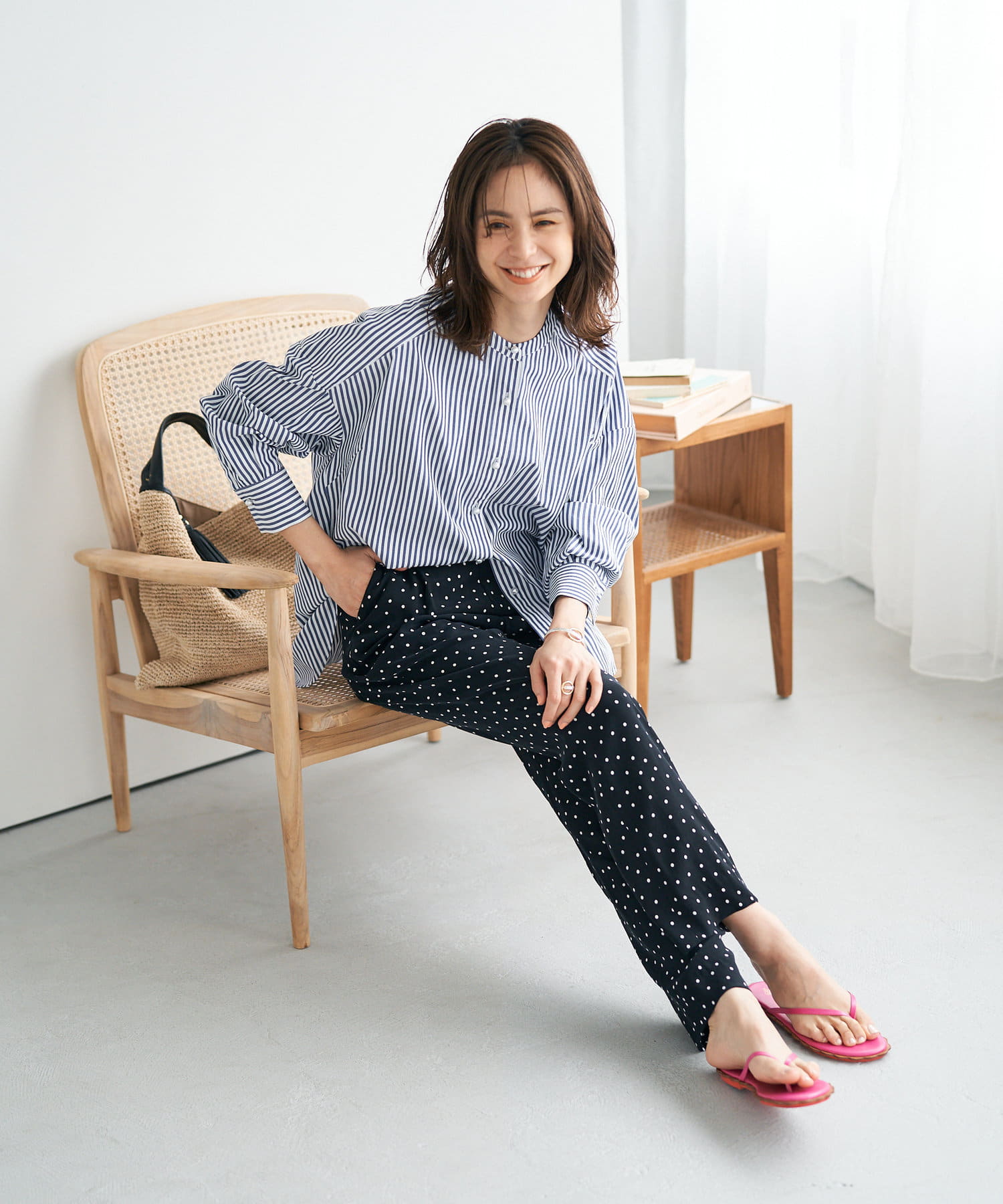 ボリューム袖でも甘くなり過ぎず、更にストライプ柄が爽やかさときちんと感もプラスしています。