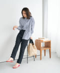 かっこよくなりがちなストライプ柄でも、パールボタンが女性らしさを演出してくれます!