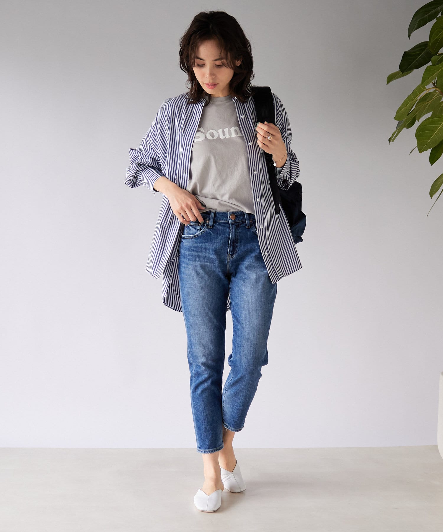 デニムと合わせるだけでこなれ感が出るコーディネートに。