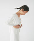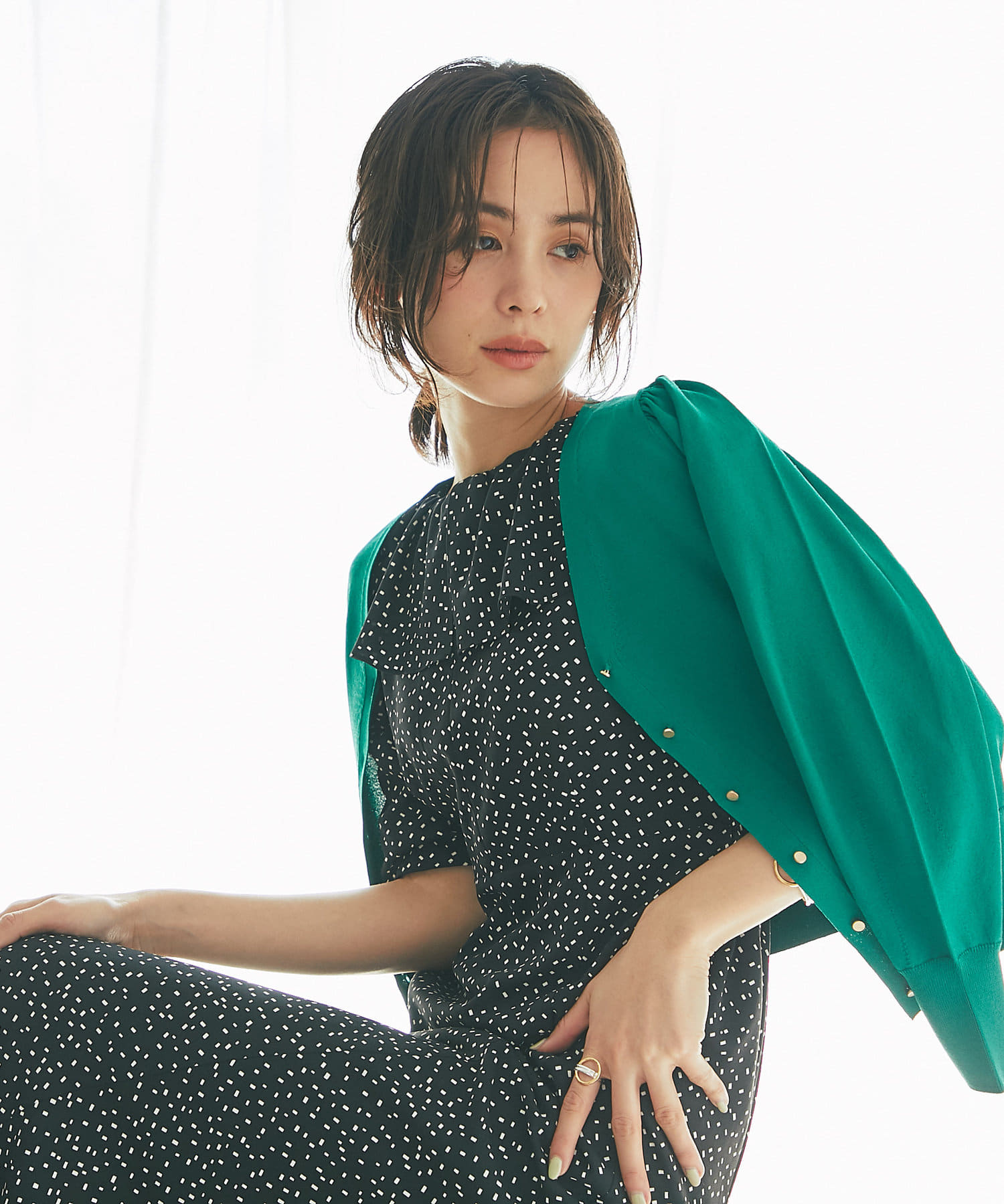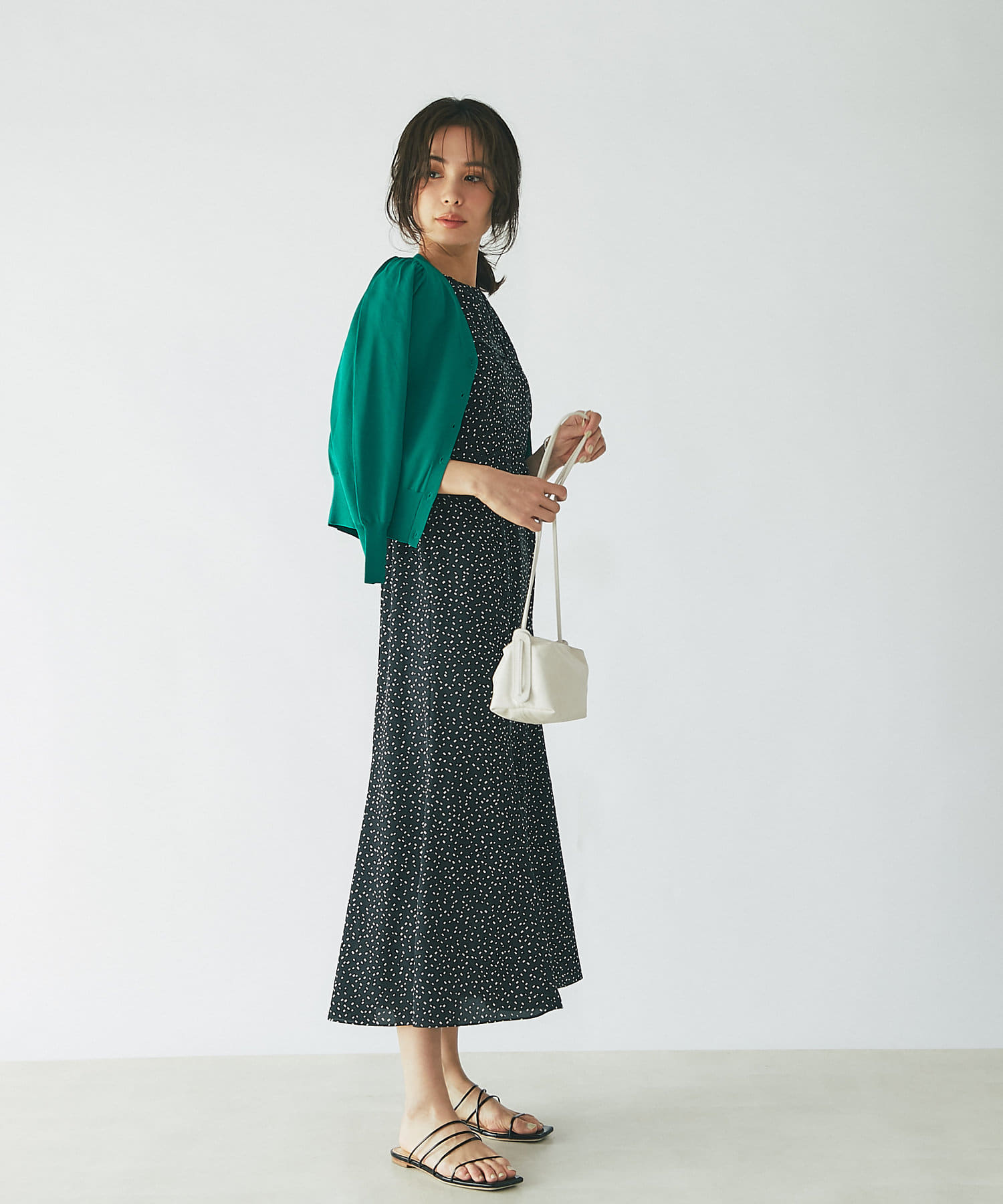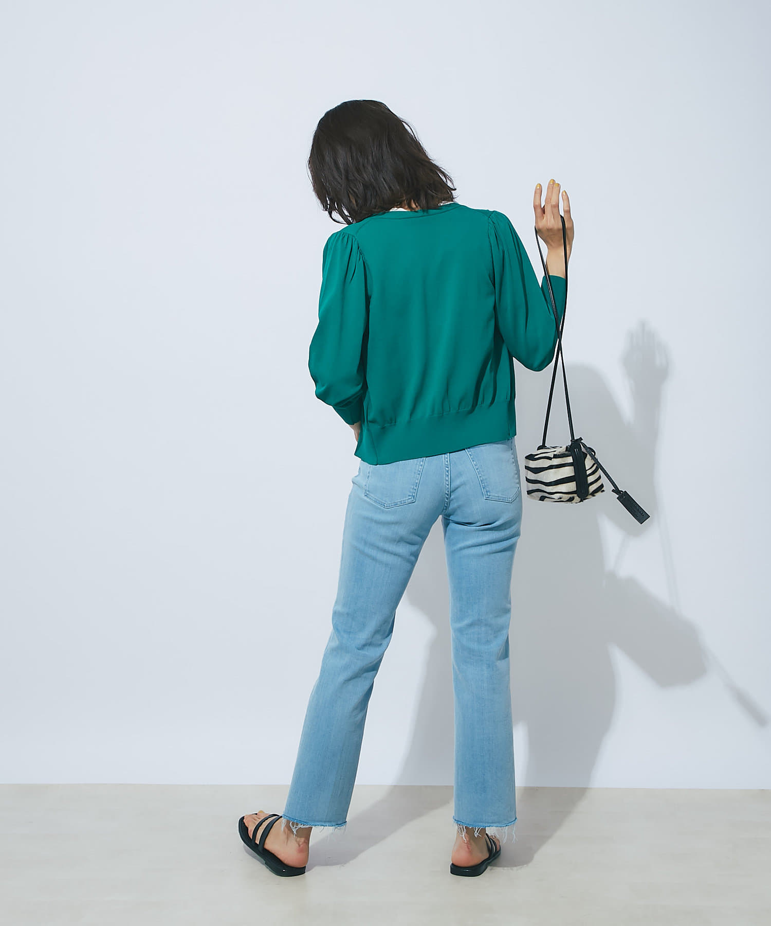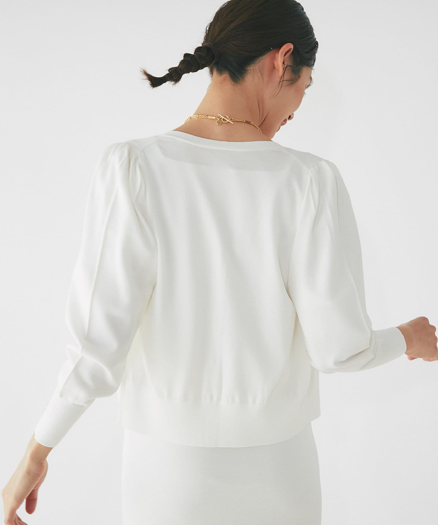 また、袖は程よいボリュームのパワショルになっているので、ふんわりとしたシルエットで気になる二の腕をカバーしつつ、より女性らしさを引き立てる仕上がりになっております。
