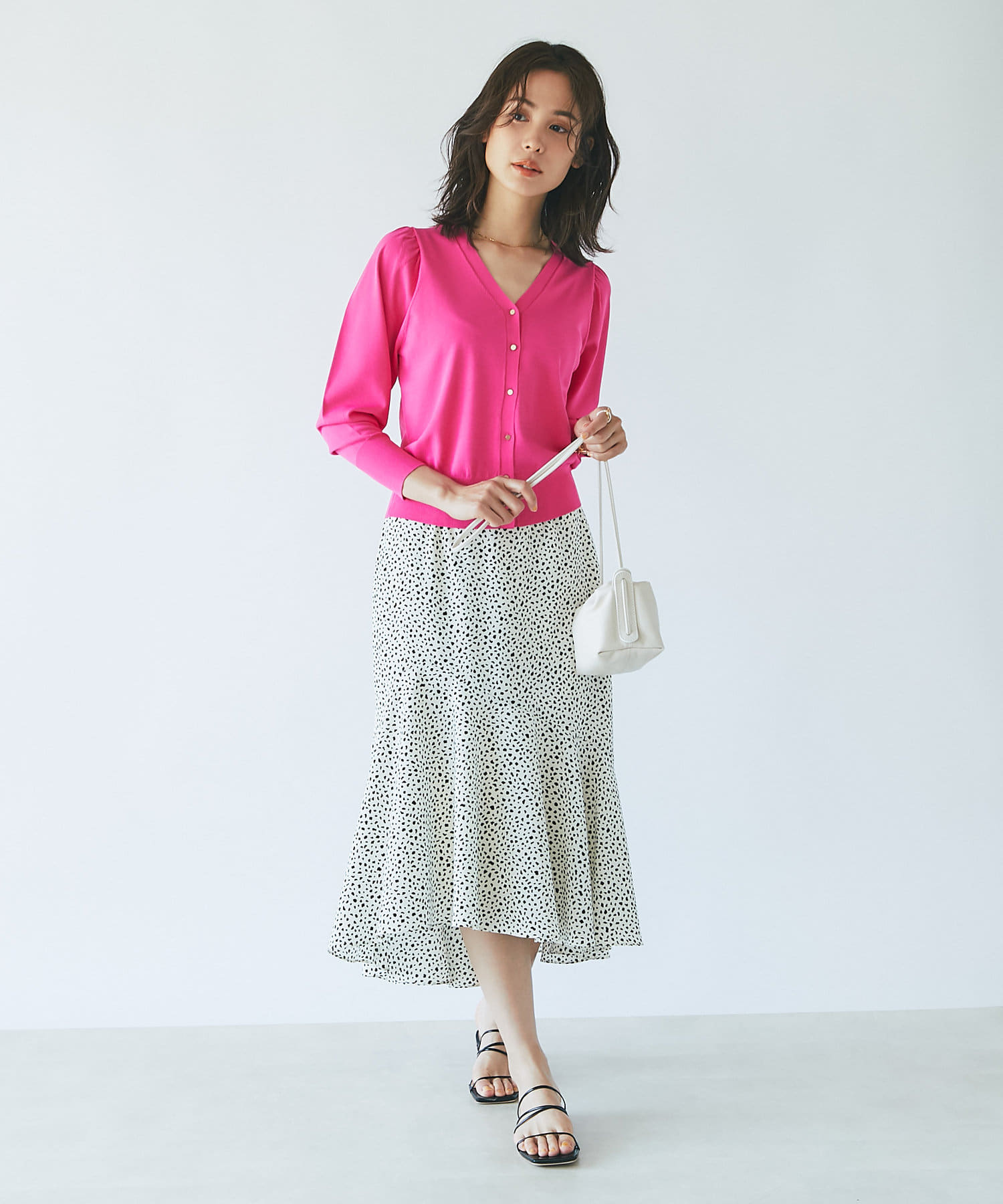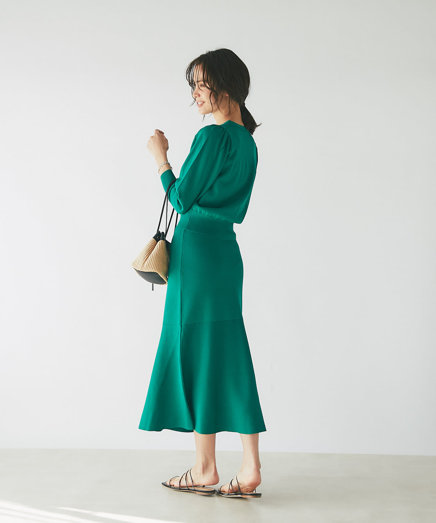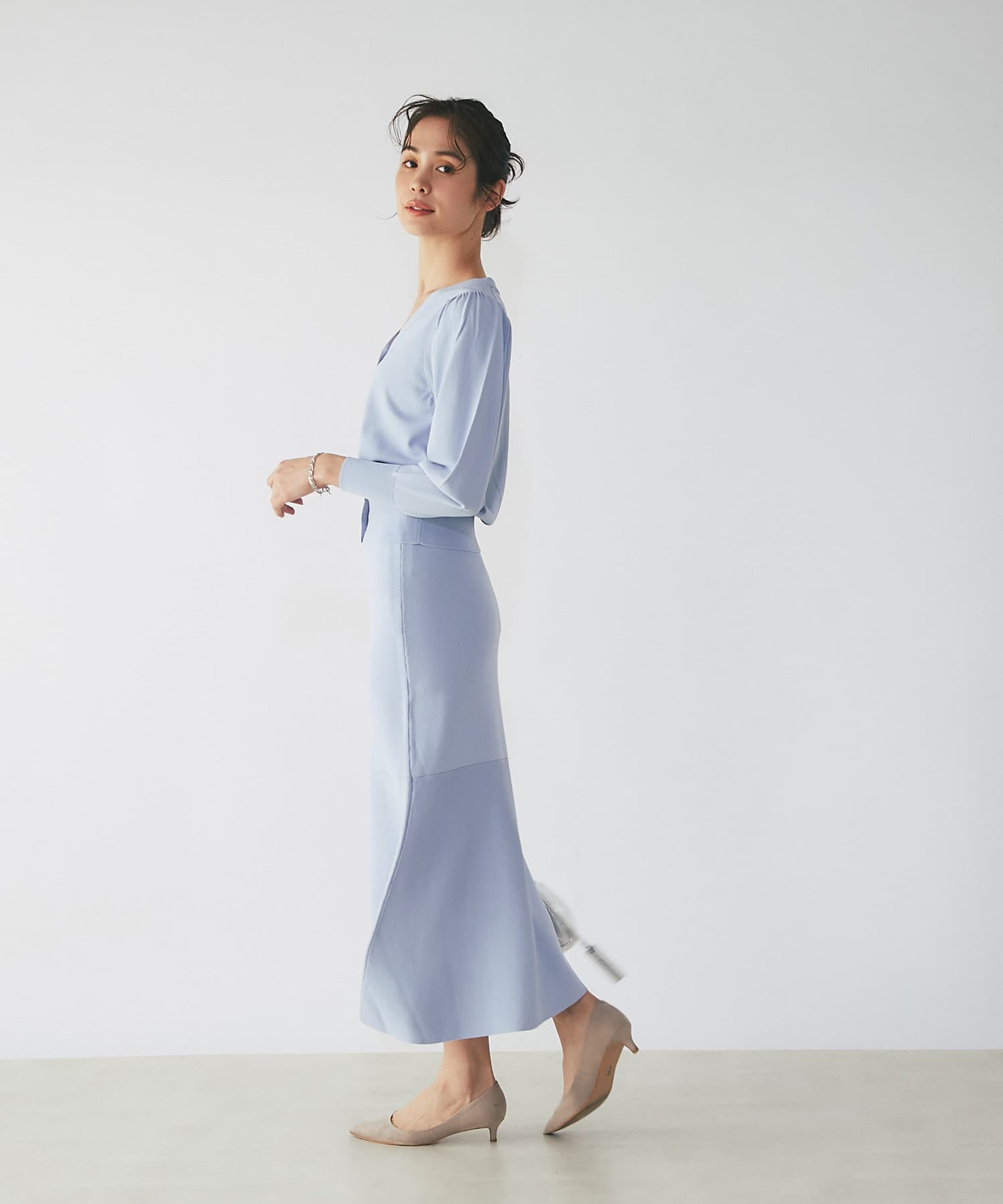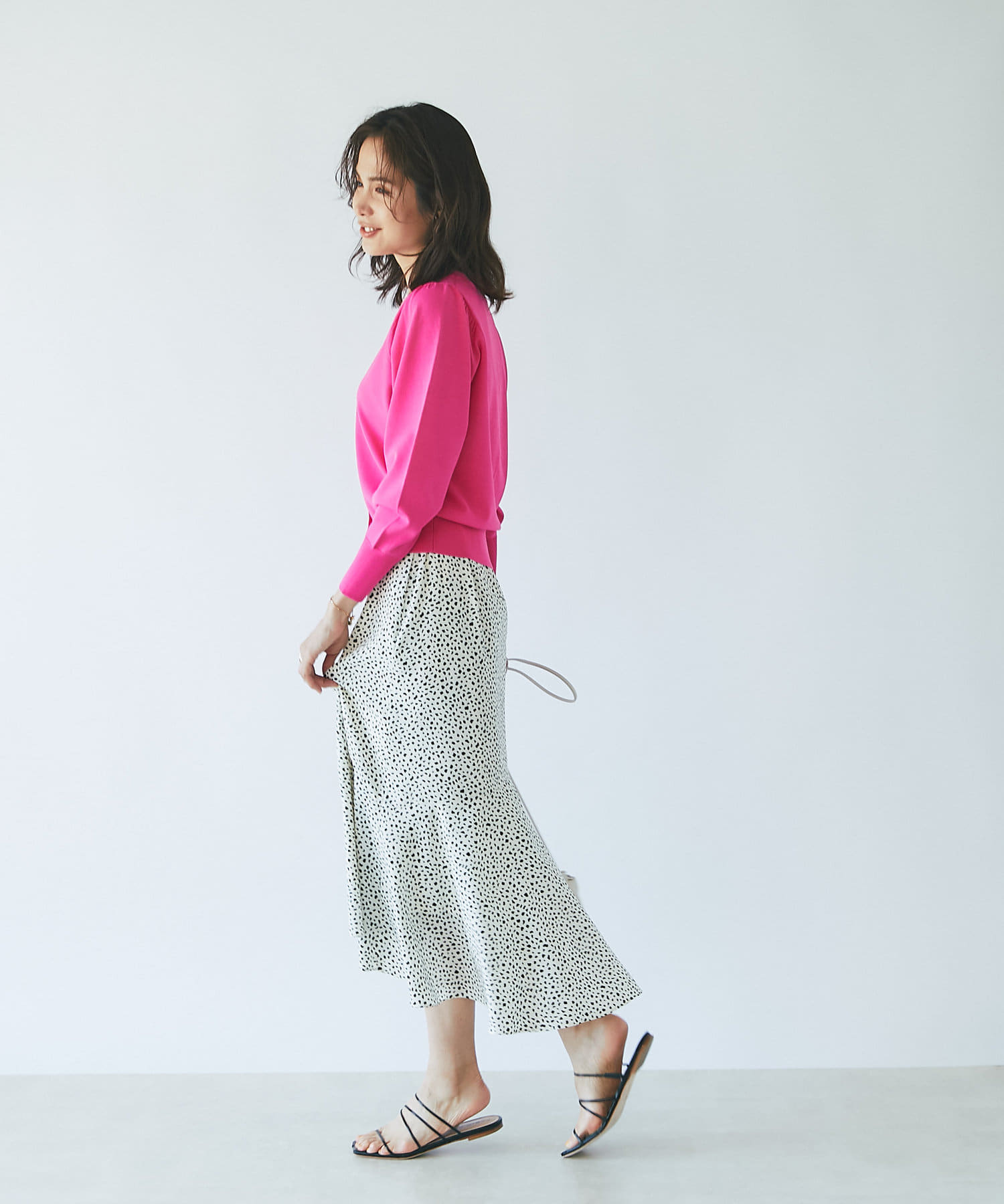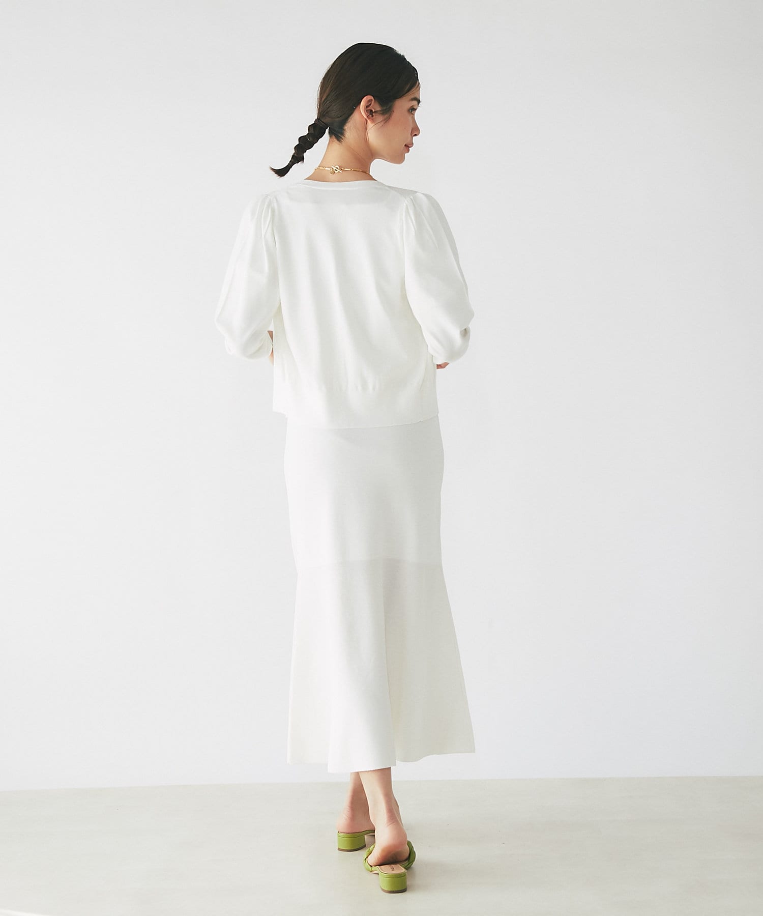 また、袖は程よいボリュームのパワショルになっているので、ふんわりとしたシルエットで気になる二の腕をカバーしつつ、より女性らしさを引き立てる仕上がりになっております。